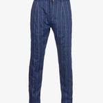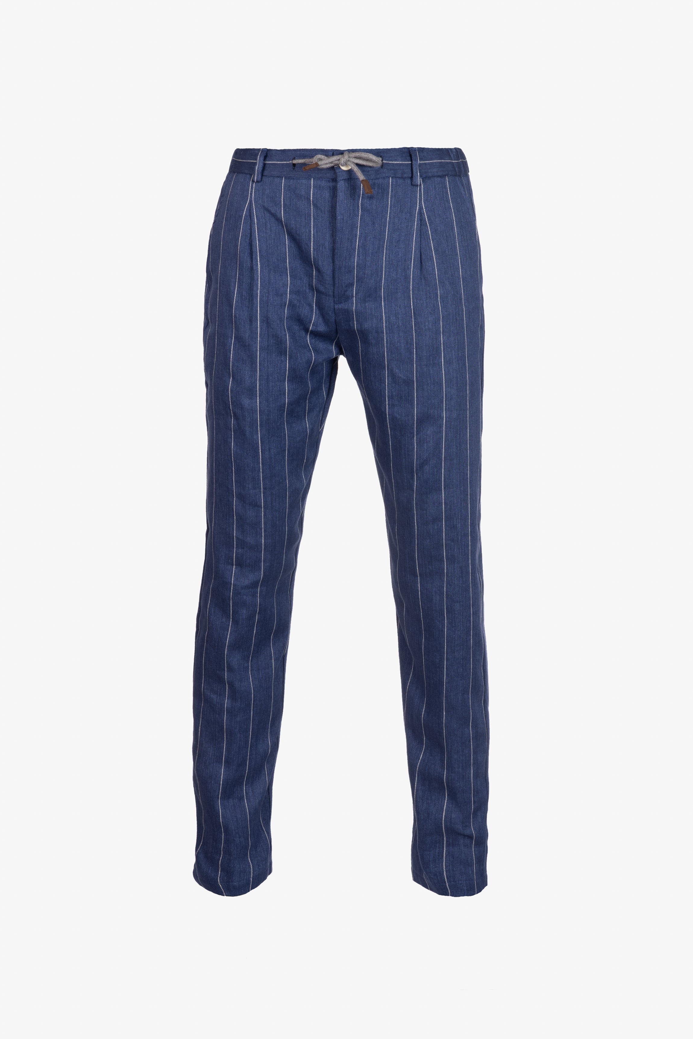 Pantalone Amalfi in lino e cotone con coulisse gessato bluette
