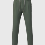 Questo pantalone in pregiato tessuto tecnico è pensato per chi cerca un capo versatile, leggero e senza compromessi sullo stile. Il design contemporaneo, arricchito dalla coulisse in vita, garantisce una vestibilità regolabile e confortevole, mentre la pences frontale dona struttura e movimento alla silhouette. I dettagli come le tasche America, e le tasche posteriori con bottone e pattina conferiscono un tocco sartoriale senza rinunciare alla funzionalità.