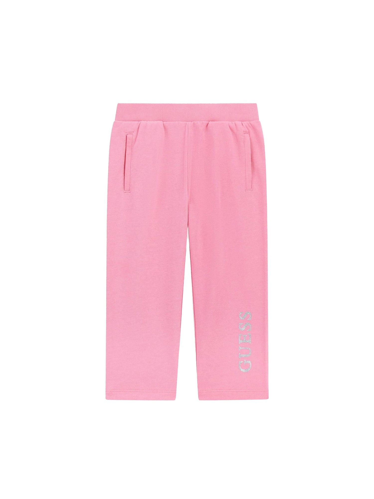 Pantalone Guess bambina in felpa con logo glitterato rosa