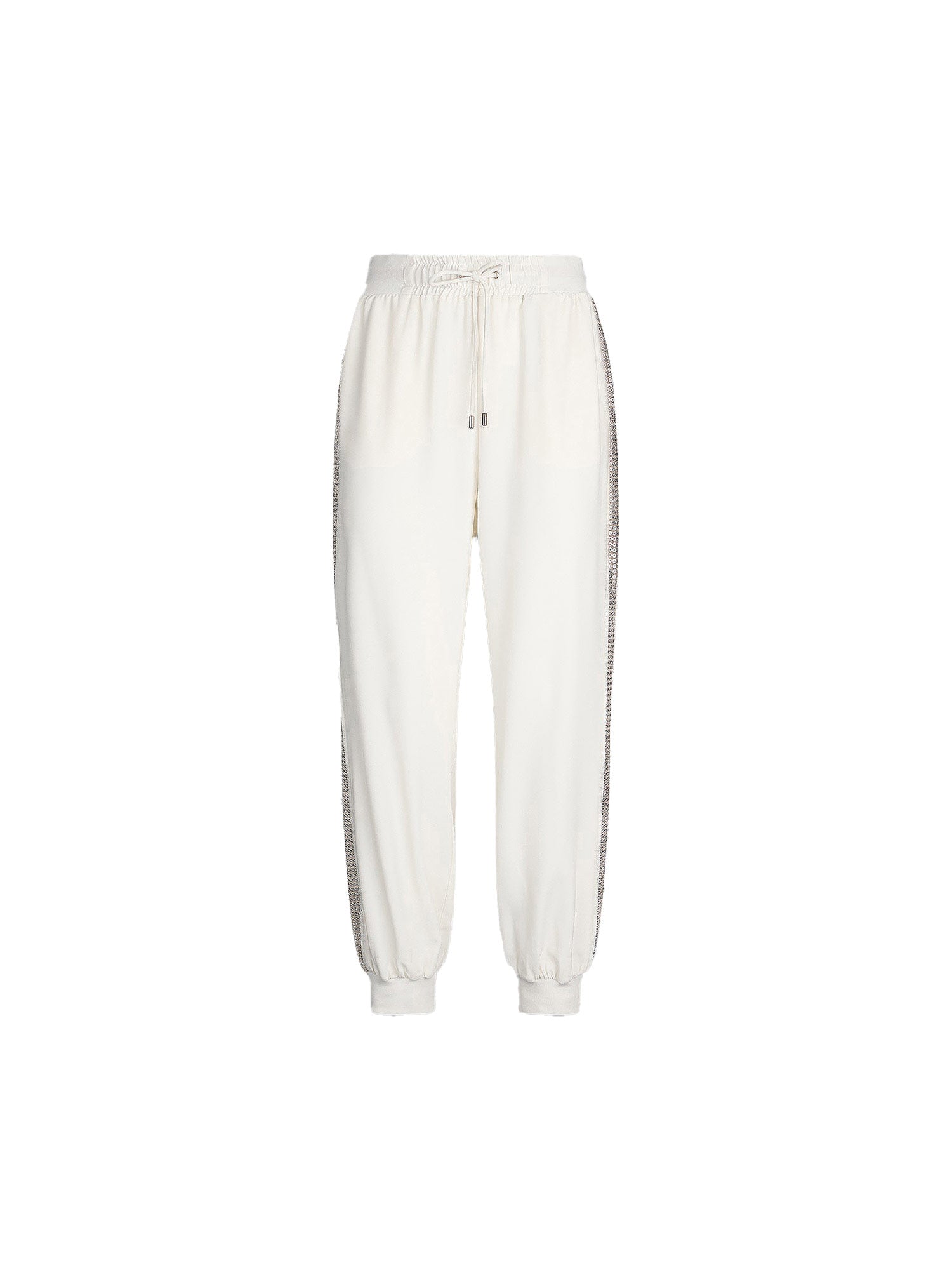 Pantalone jogging con paillettes laterali bianco