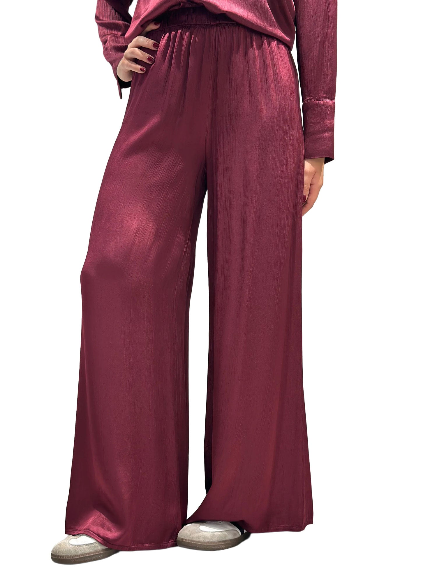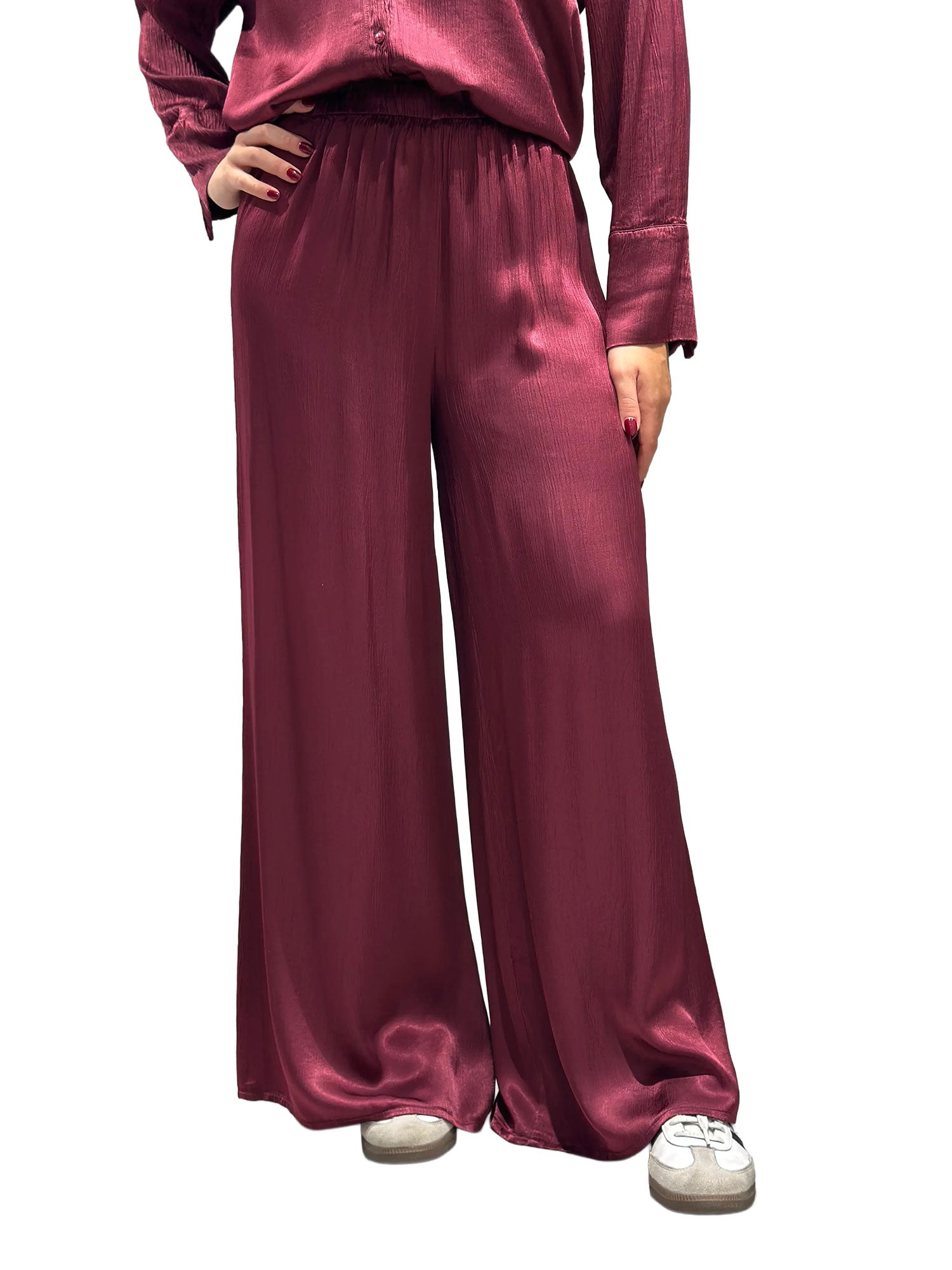Pantalone palazzo plisset Haveone donna ciliegia