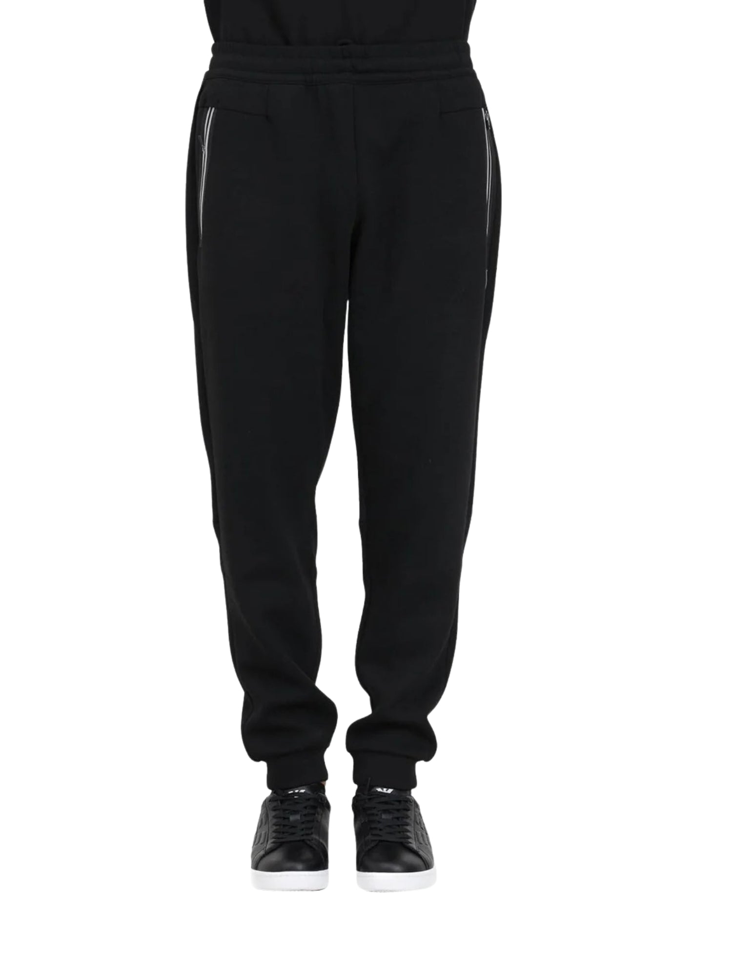 Pantalone uomo EA7 tasca con zip in felpa nero