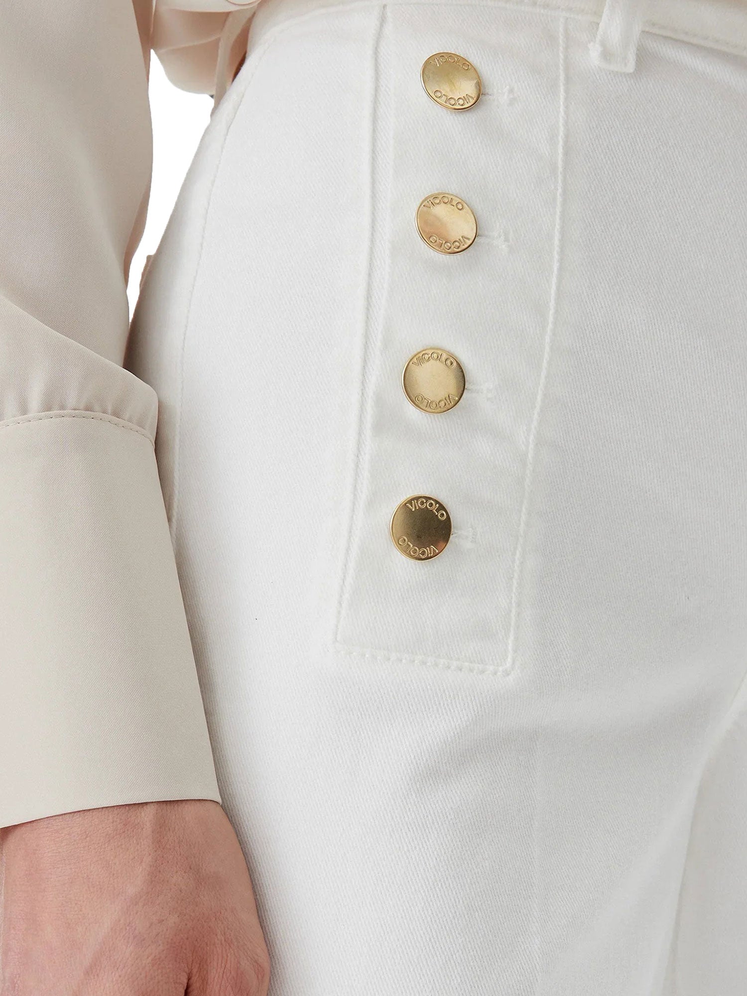 - Bottoni dorati logati Vicolo applicati lateralmente