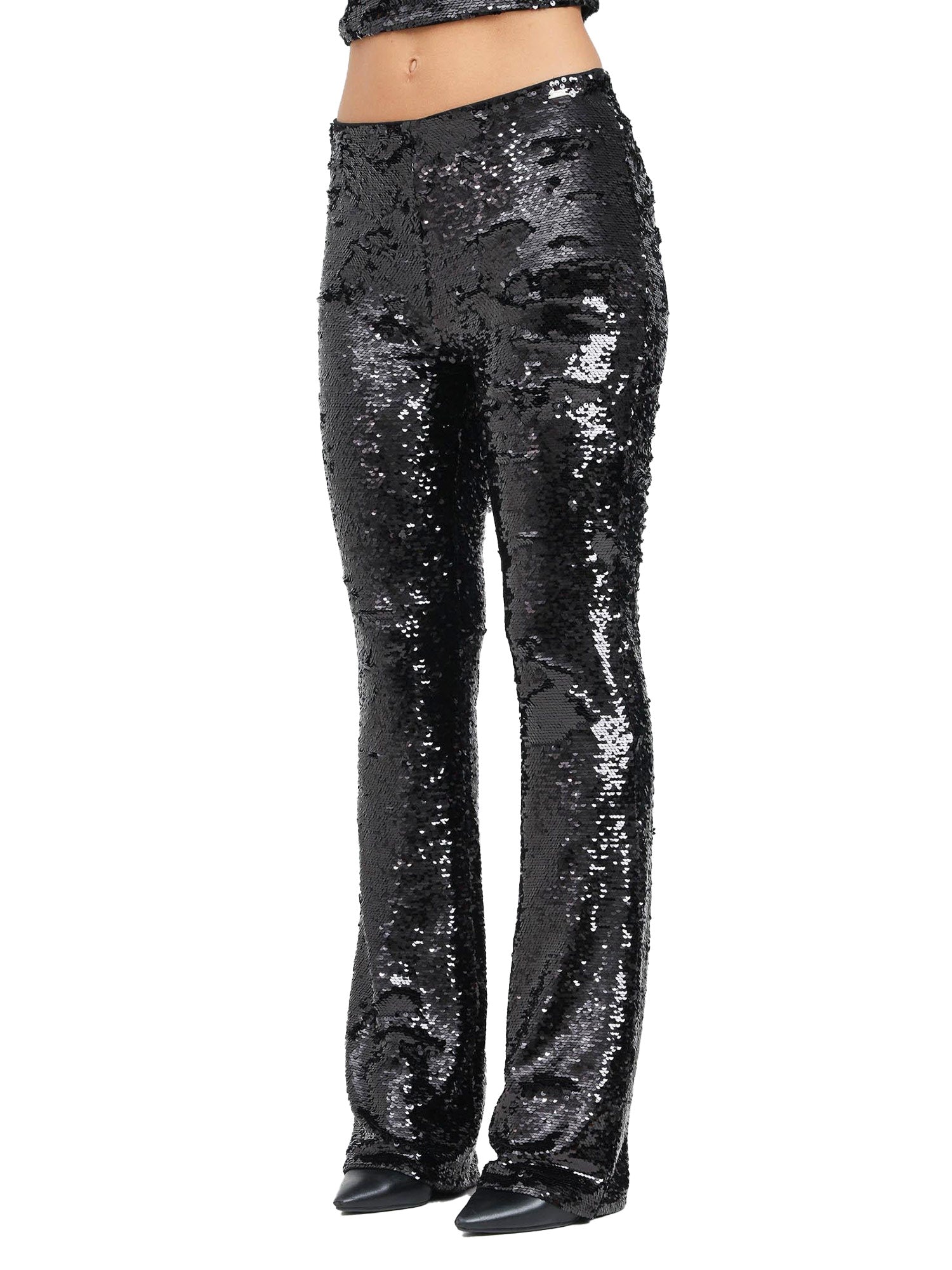 Pantaloni Armani Exchange , modello a palazzo, con tessuto interamente ricoperto di paillettes,ideale per eventi serali, feste o occasioni speciali in cui si desidera brillare. Perfetto da abbinare a tacchi alti e accessori minimal per enfatizzare l'eleganza del completo. Un look pensato per distinguersi con stile e audacia.