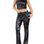 Pantalone zampa paillettes nero