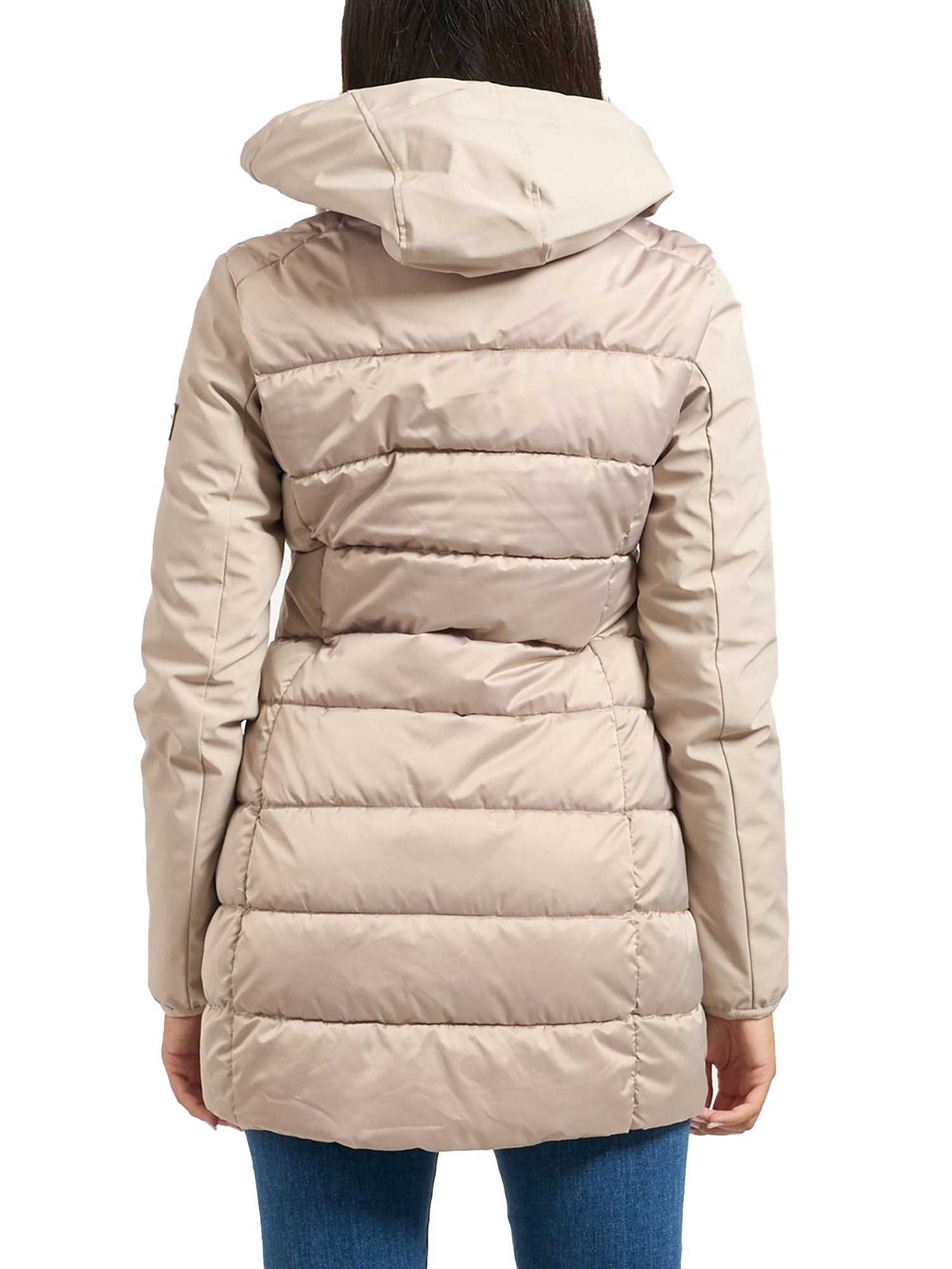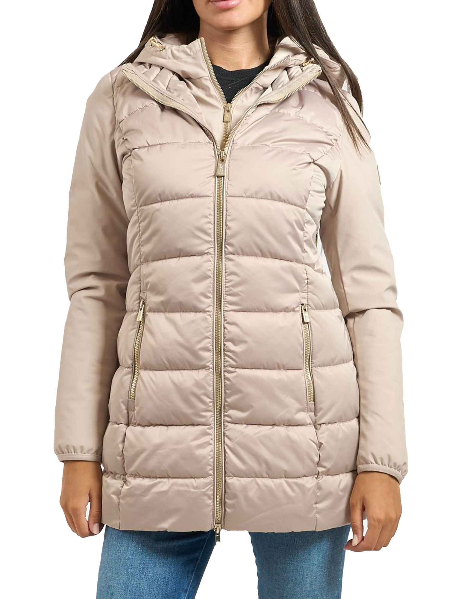 Piumino parka Yes Zee donna con cappuccio e finto gilet removibile avorio