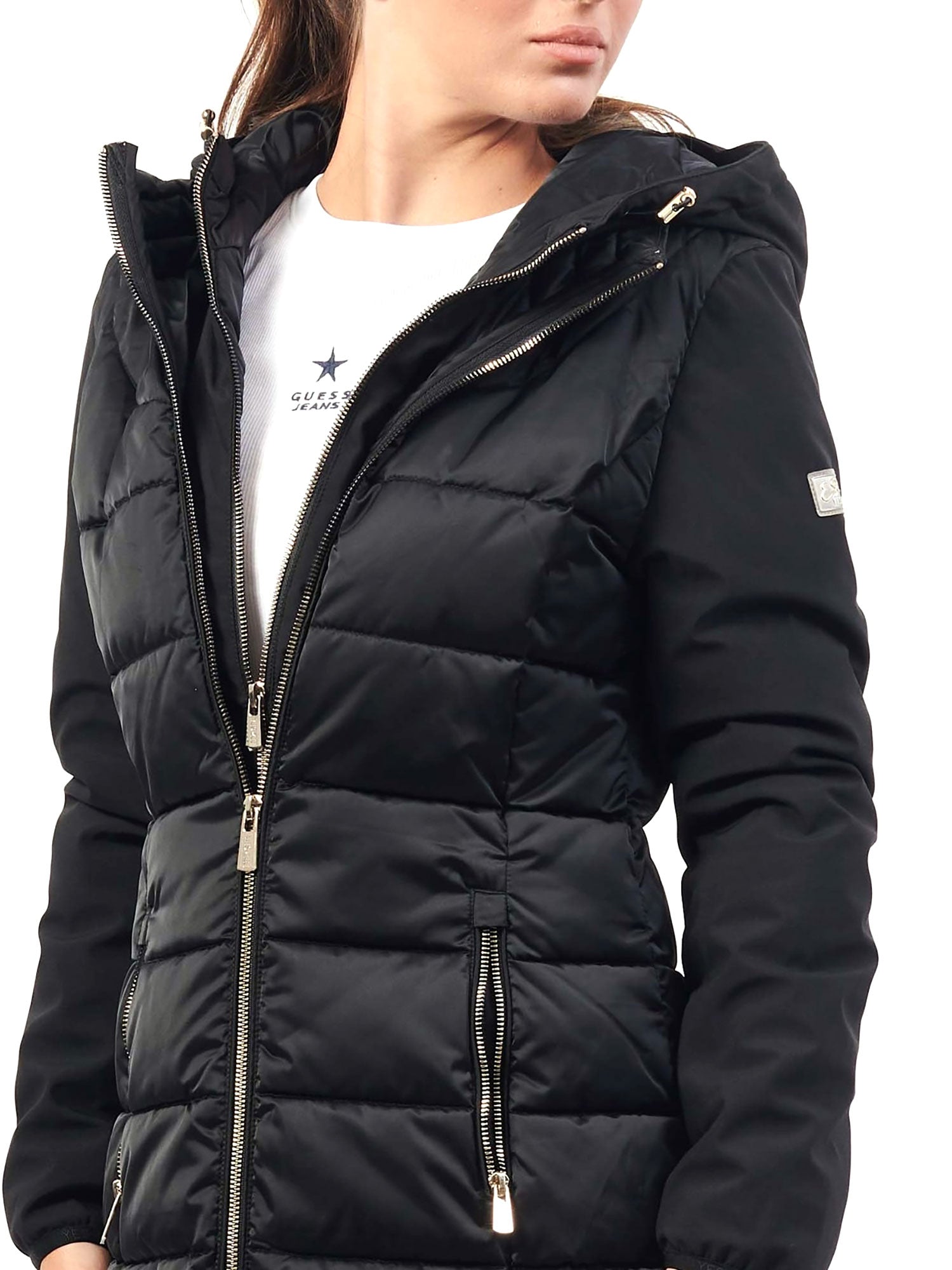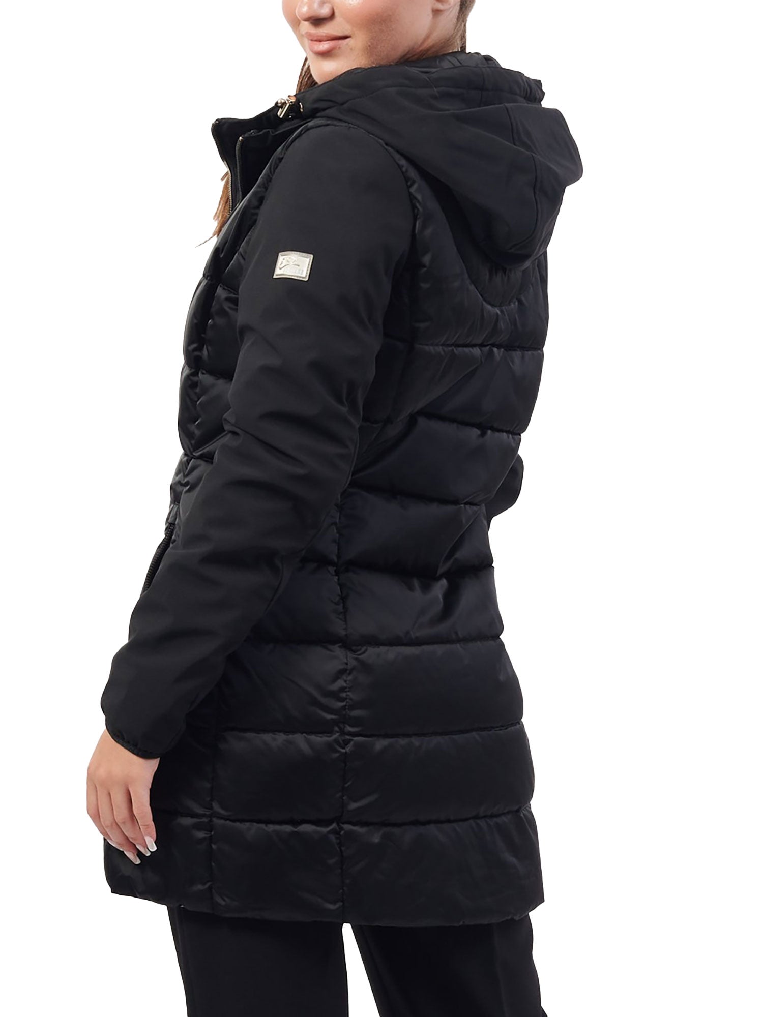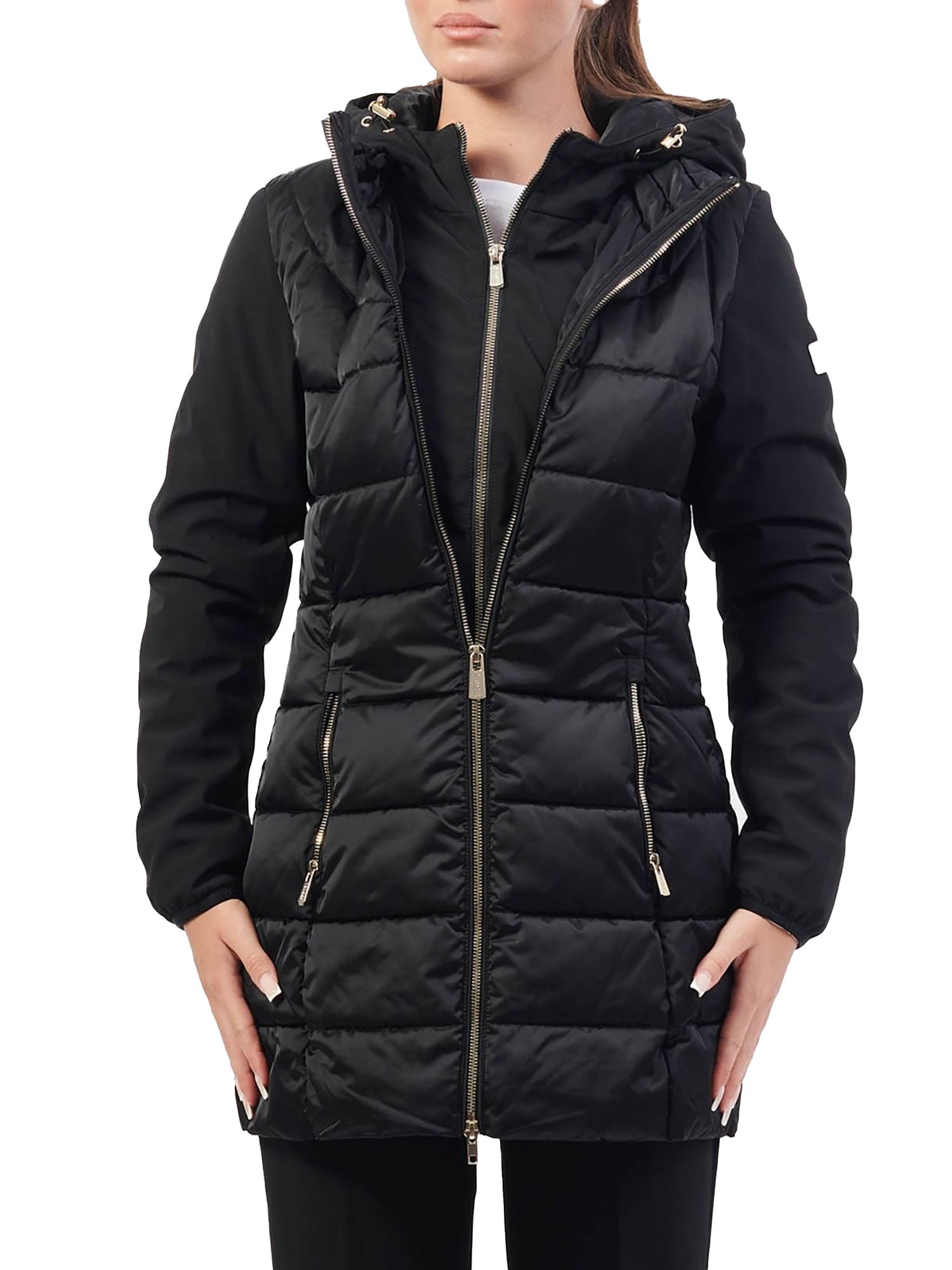 Piumino parka Yes Zee donna con cappuccio e finto gilet removibile nero