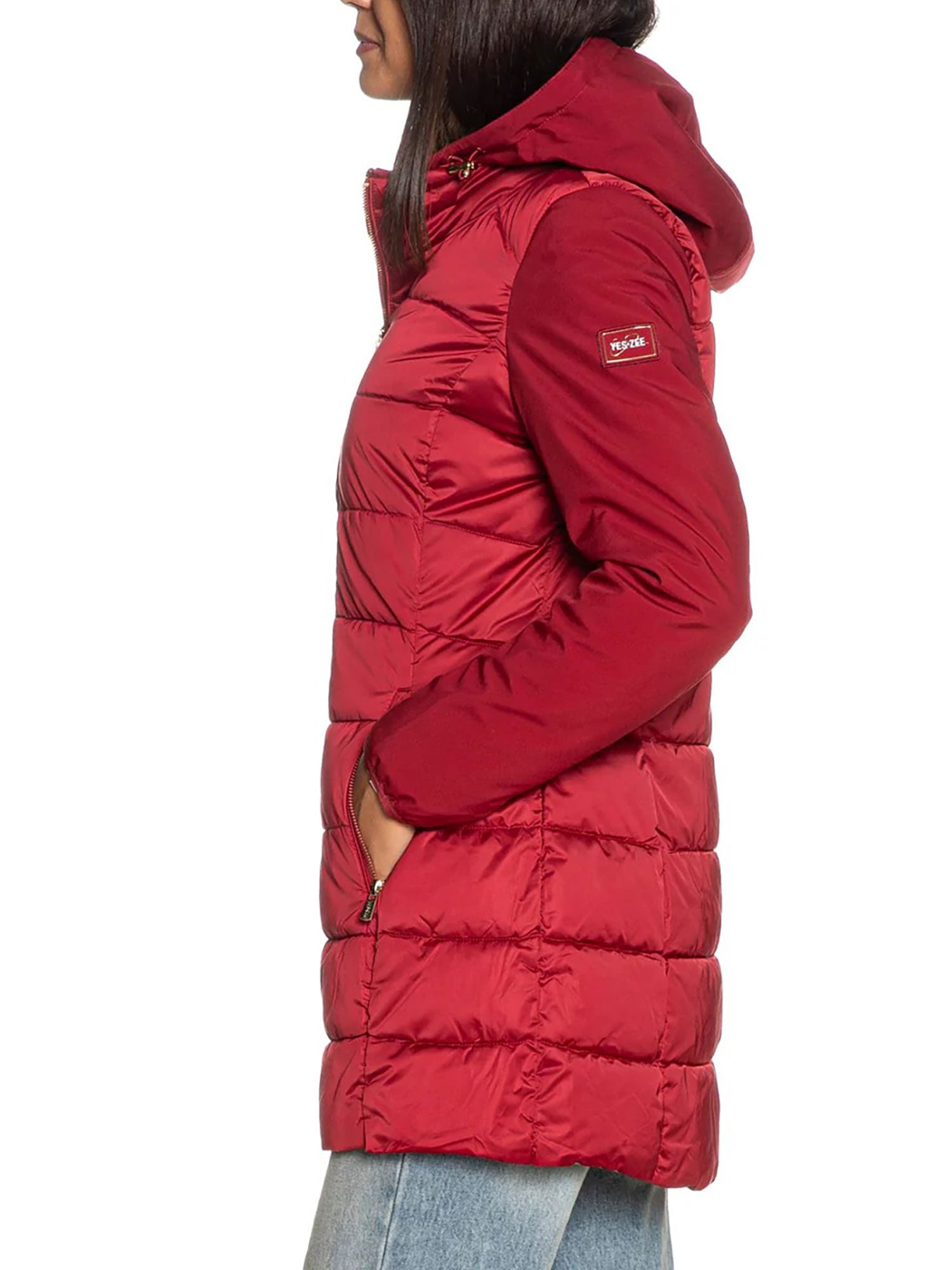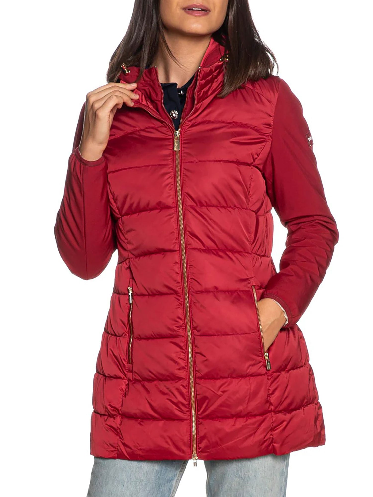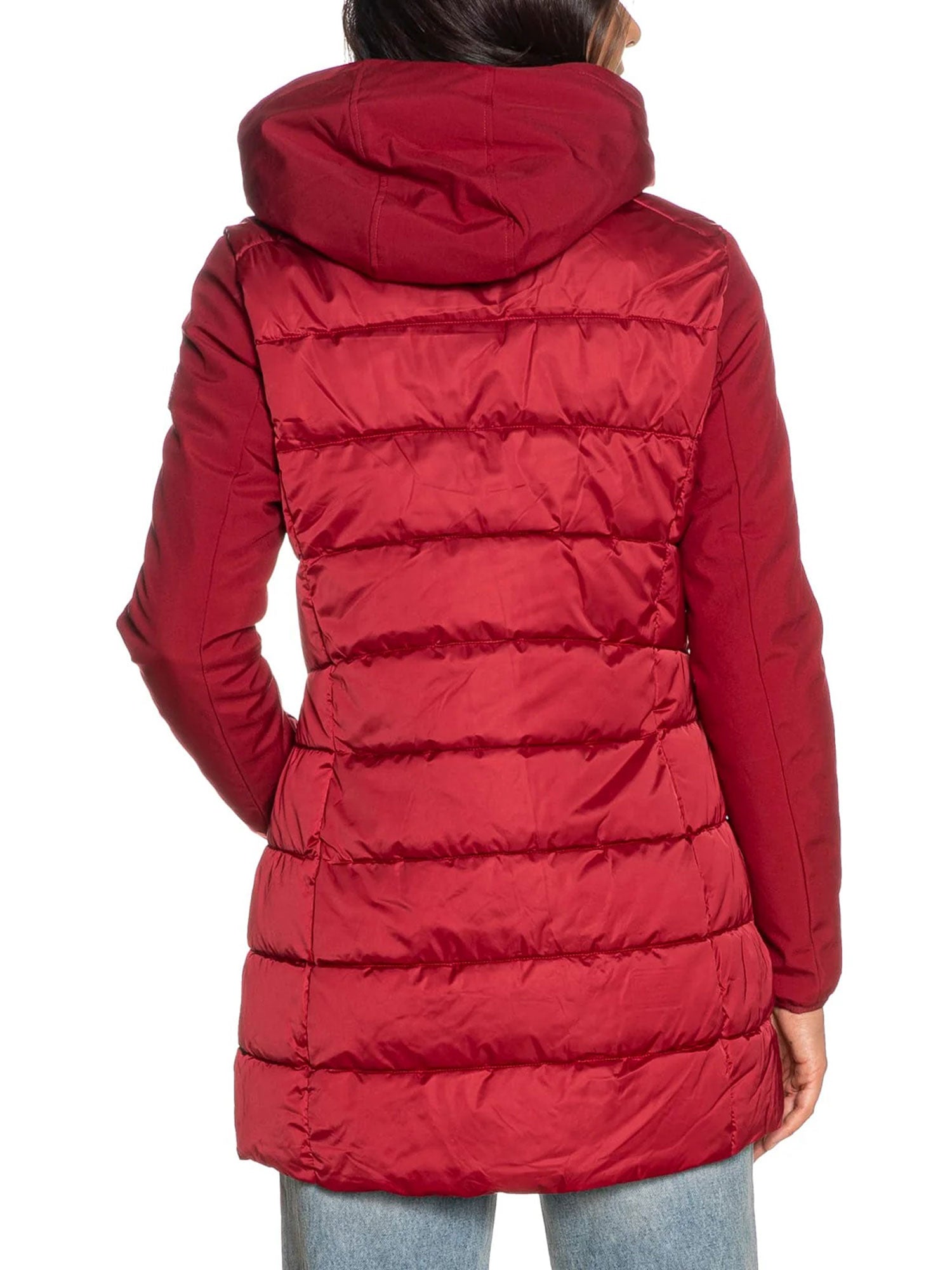 Piumino parka Yes Zee donna con cappuccio e finto gilet removibile rosso
