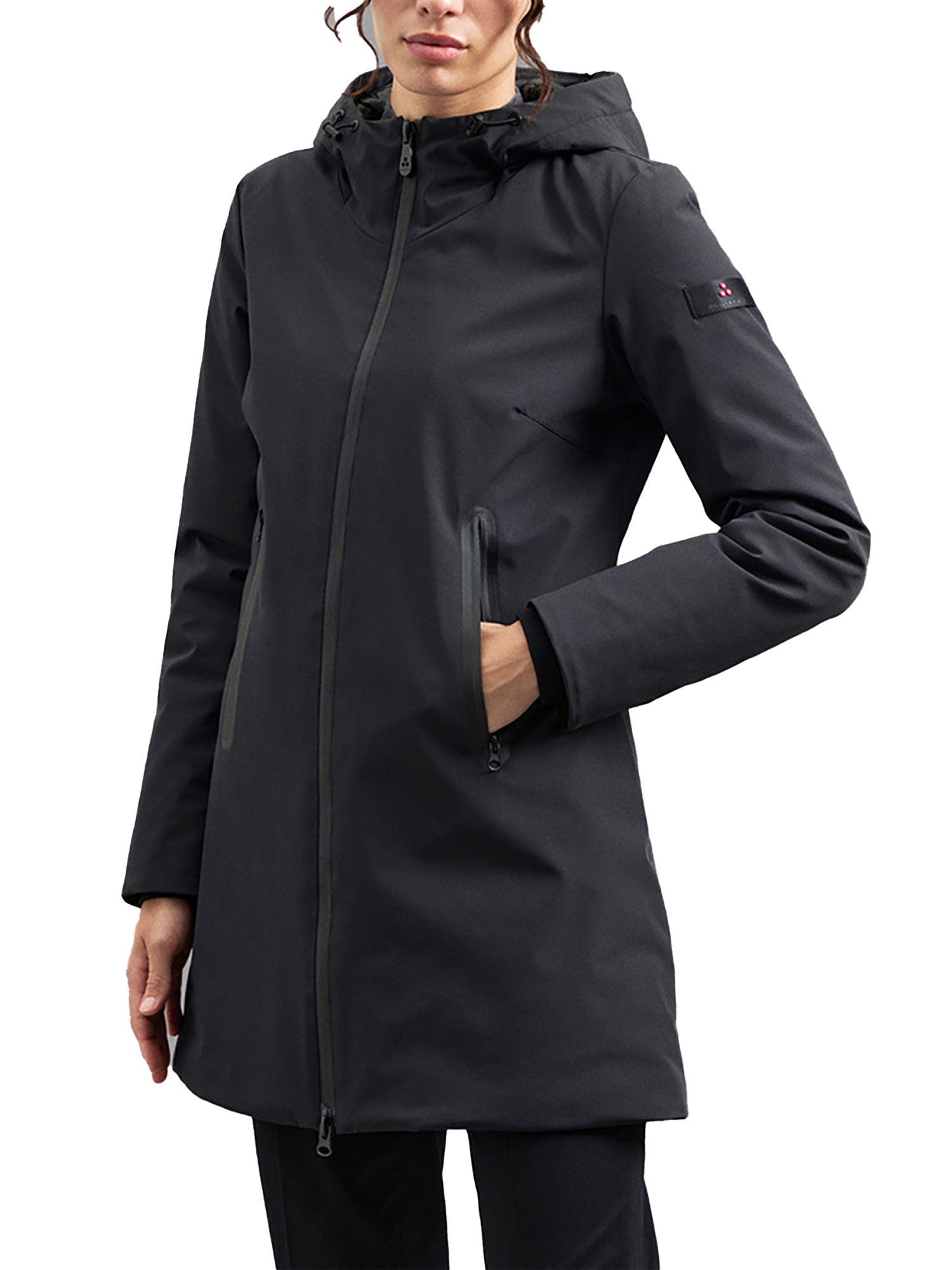 Parka Peuterey, modello Telia, liscio dal fit avvitato, femminile ed elegante, realizzato in tela bi-stretch di nylon e jersey di poliestere con imbottitura sintetica. La zip centrale e quelle presenti sulle tasche sono nere in contrasto colore come i polsini e la coulisse del cappuccio e donano al modello un gusto ricercato e moderno. Il capo ideale per impreziosire i tuoi outfit in città.