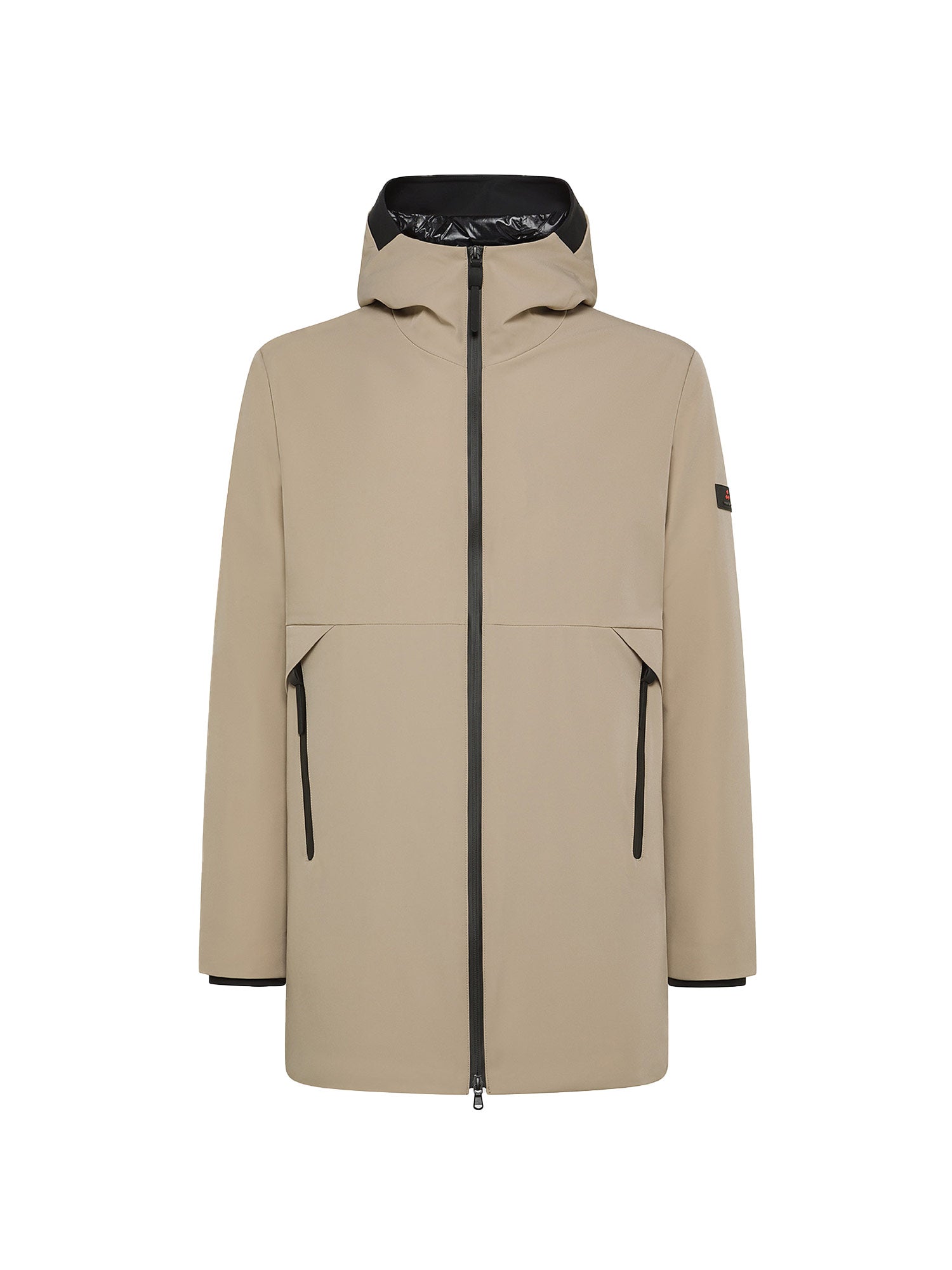 Parka Peuterey, modello Metide in liscio con imbottitura in Primaloft. Il carattere essenziale e l’assenza di impunture rendono questo capo funzionale e rigoroso, adatto alle occasioni più formali.
