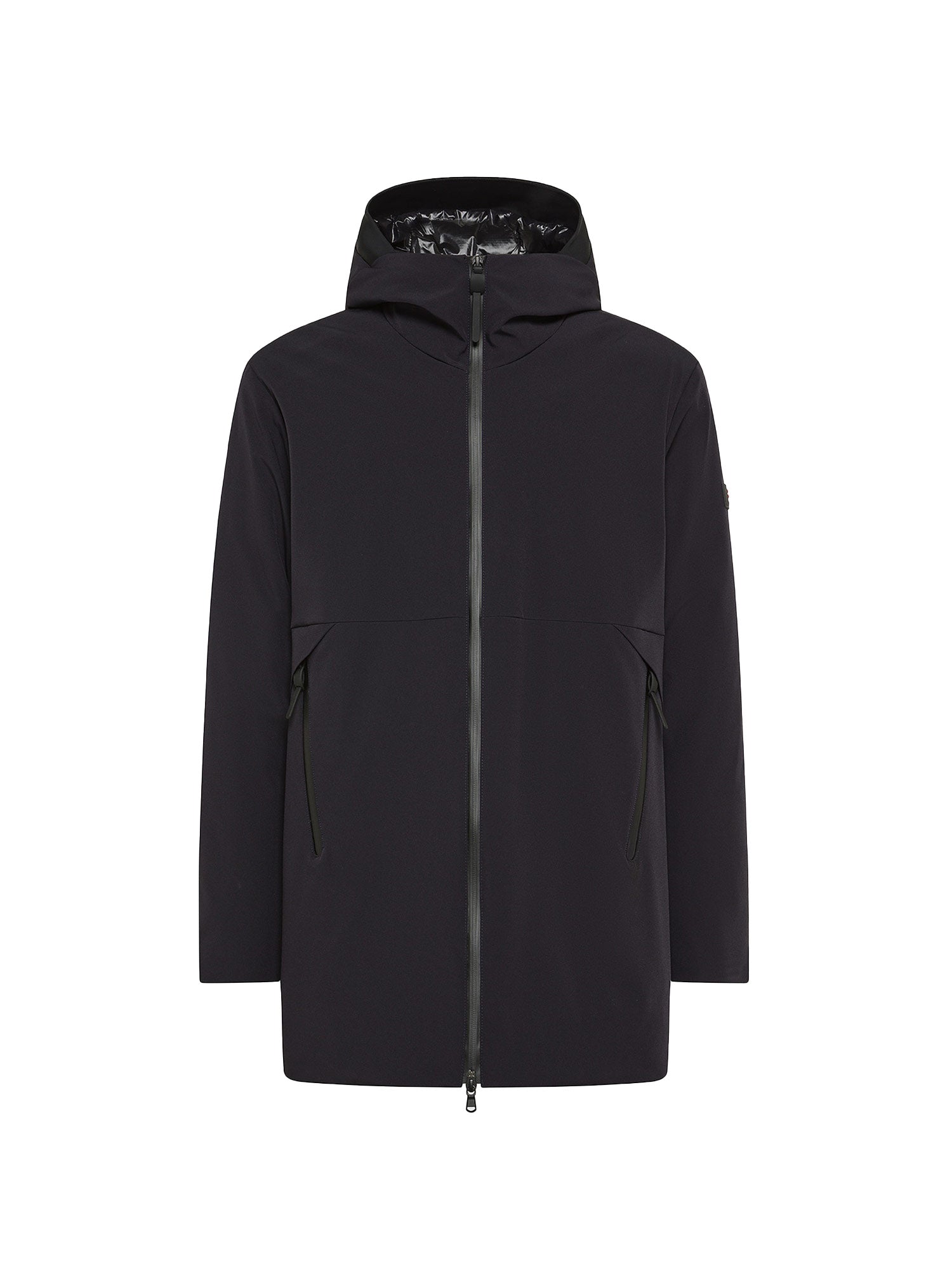 Parka Peuterey, modello Metide in liscio con imbottitura in Primaloft. Il carattere essenziale e l’assenza di impunture rendono questo capo funzionale e rigoroso, adatto alle occasioni più formali.