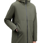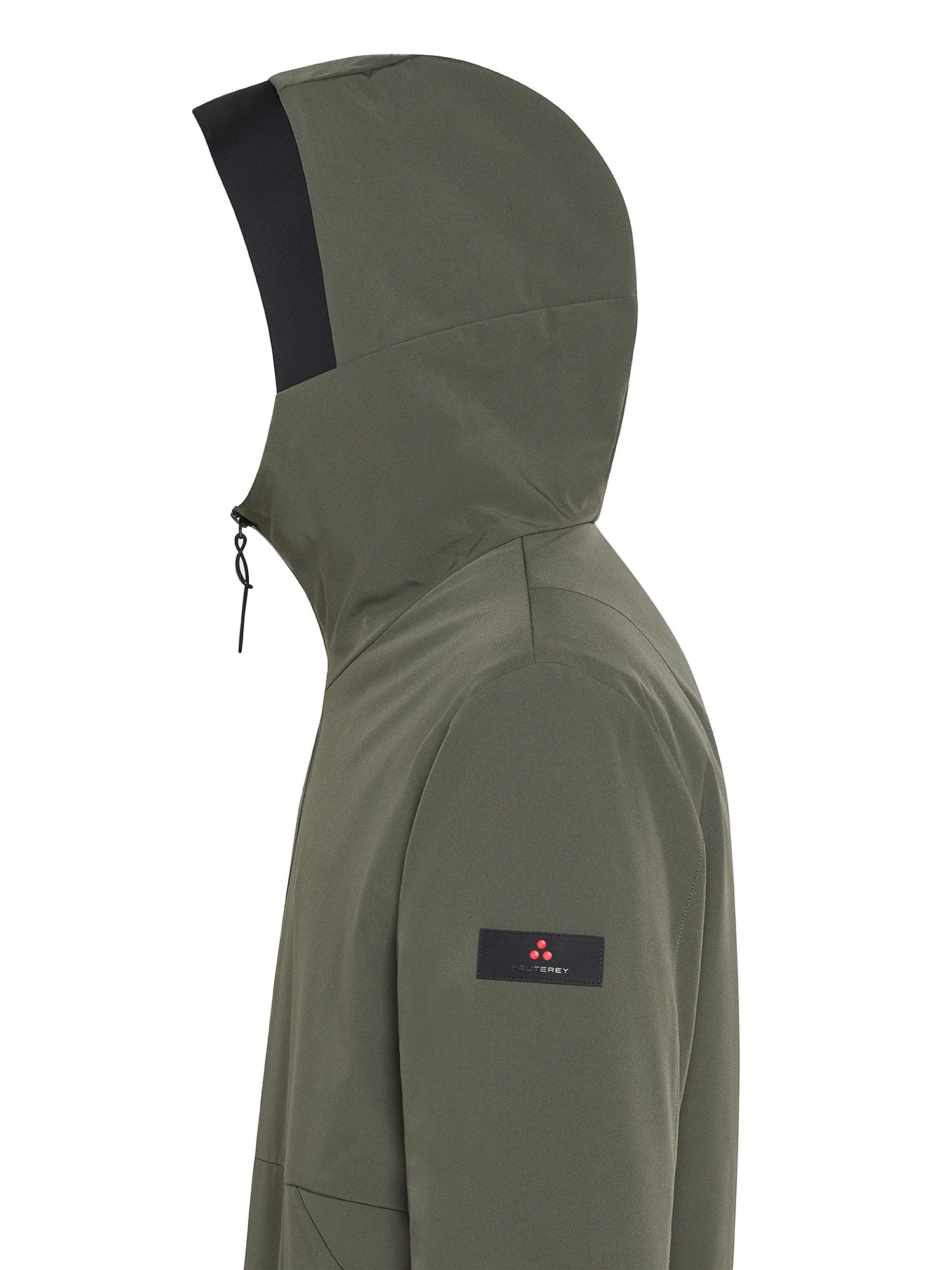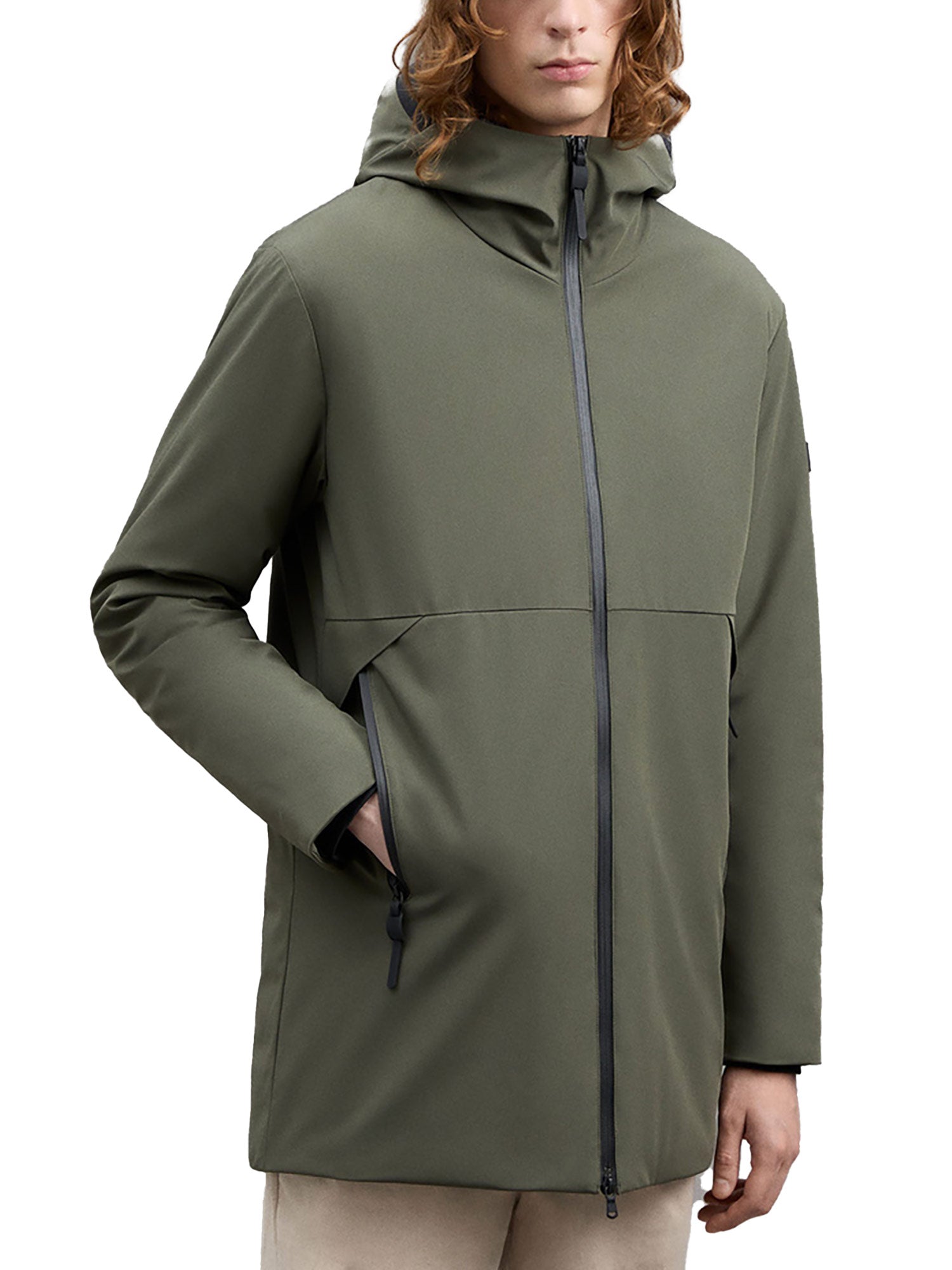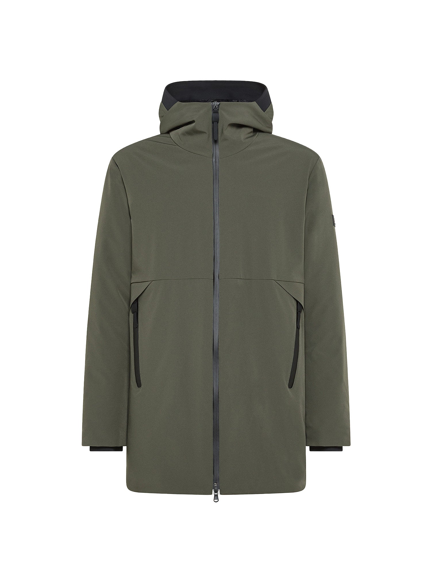 Parka Peuterey, modello Metide in liscio con imbottitura in Primaloft. Il carattere essenziale e l’assenza di impunture rendono questo capo funzionale e rigoroso, adatto alle occasioni più formali.
