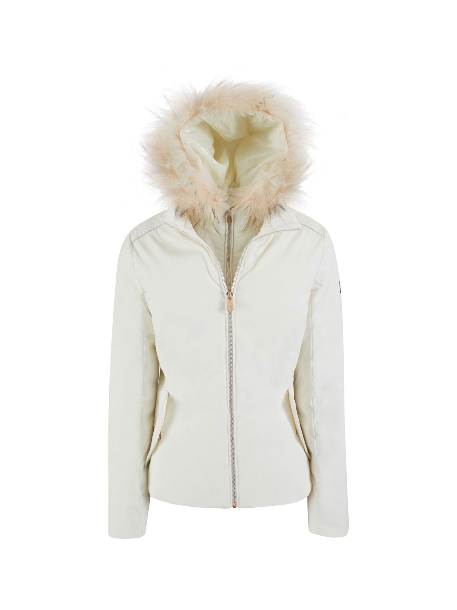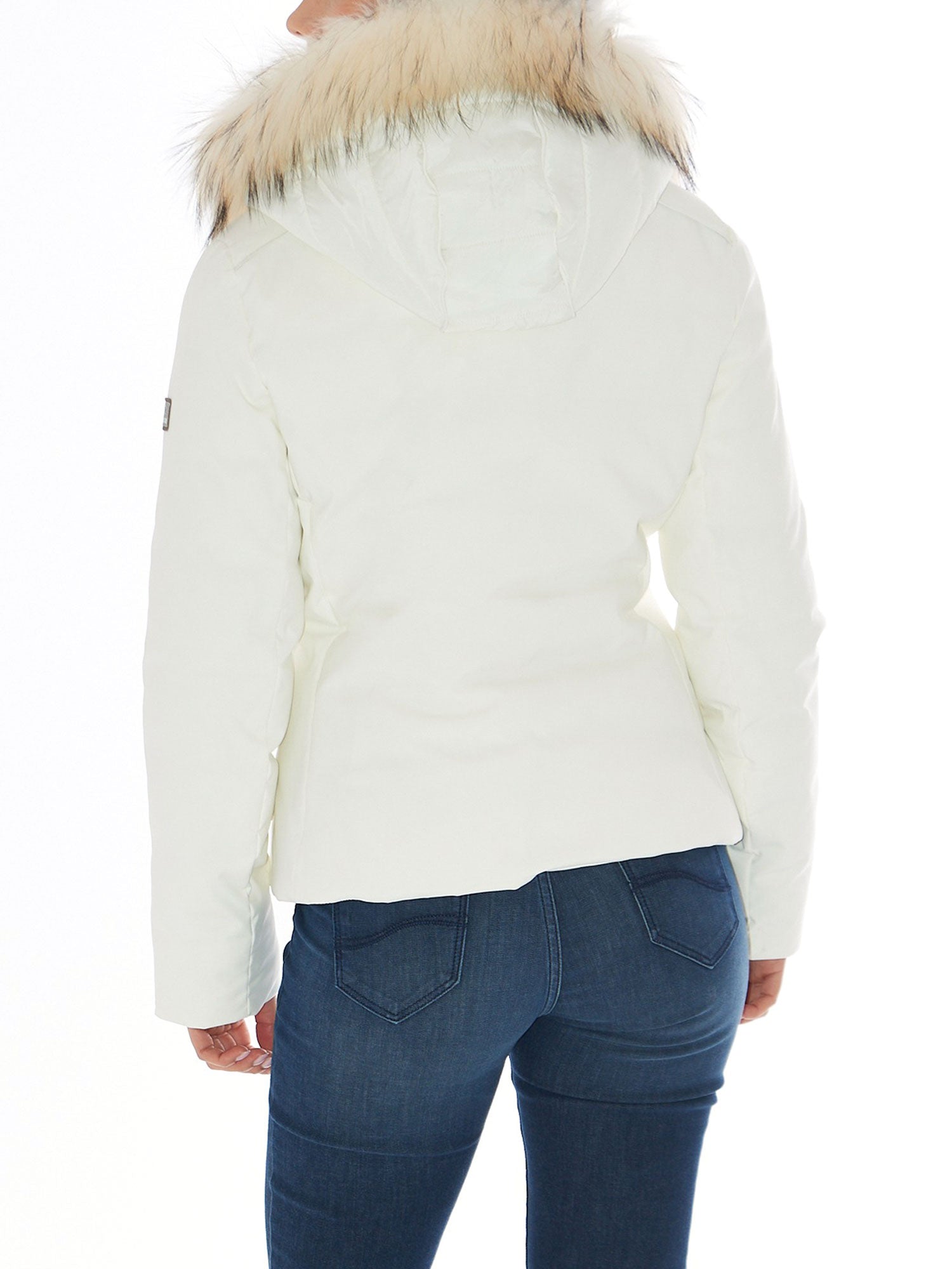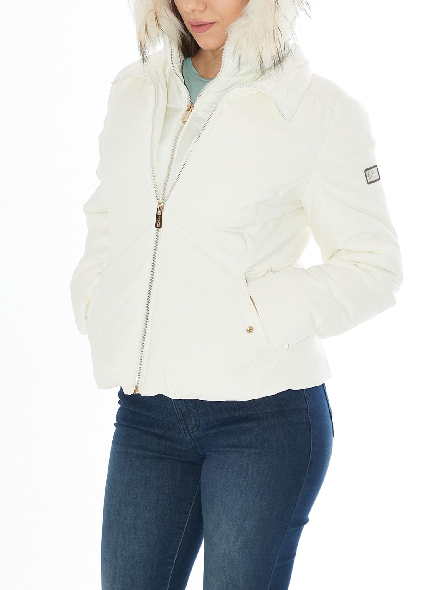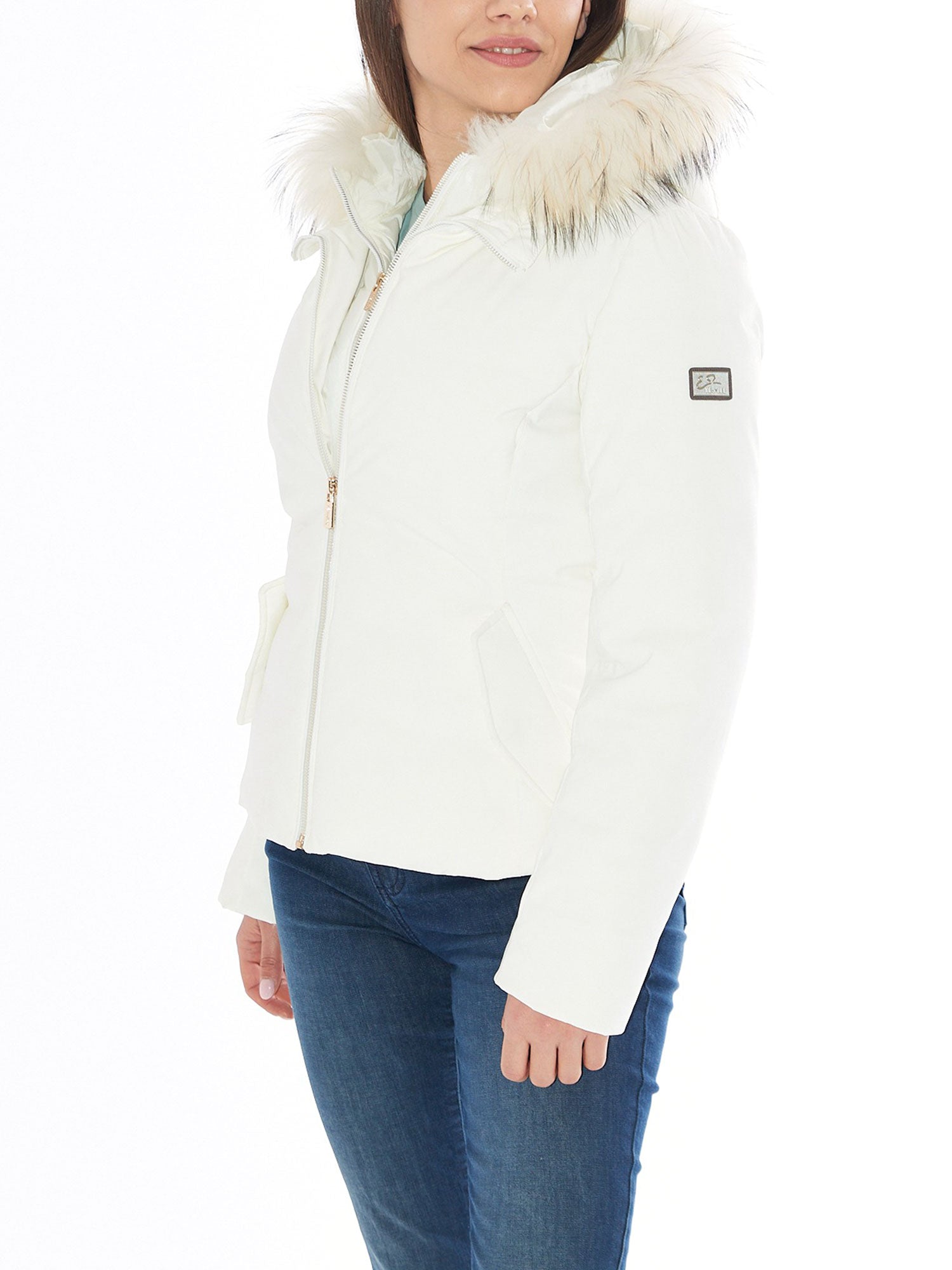 Piumino corto Yes Zee donna softshell con cappuccio pelliccia avorio