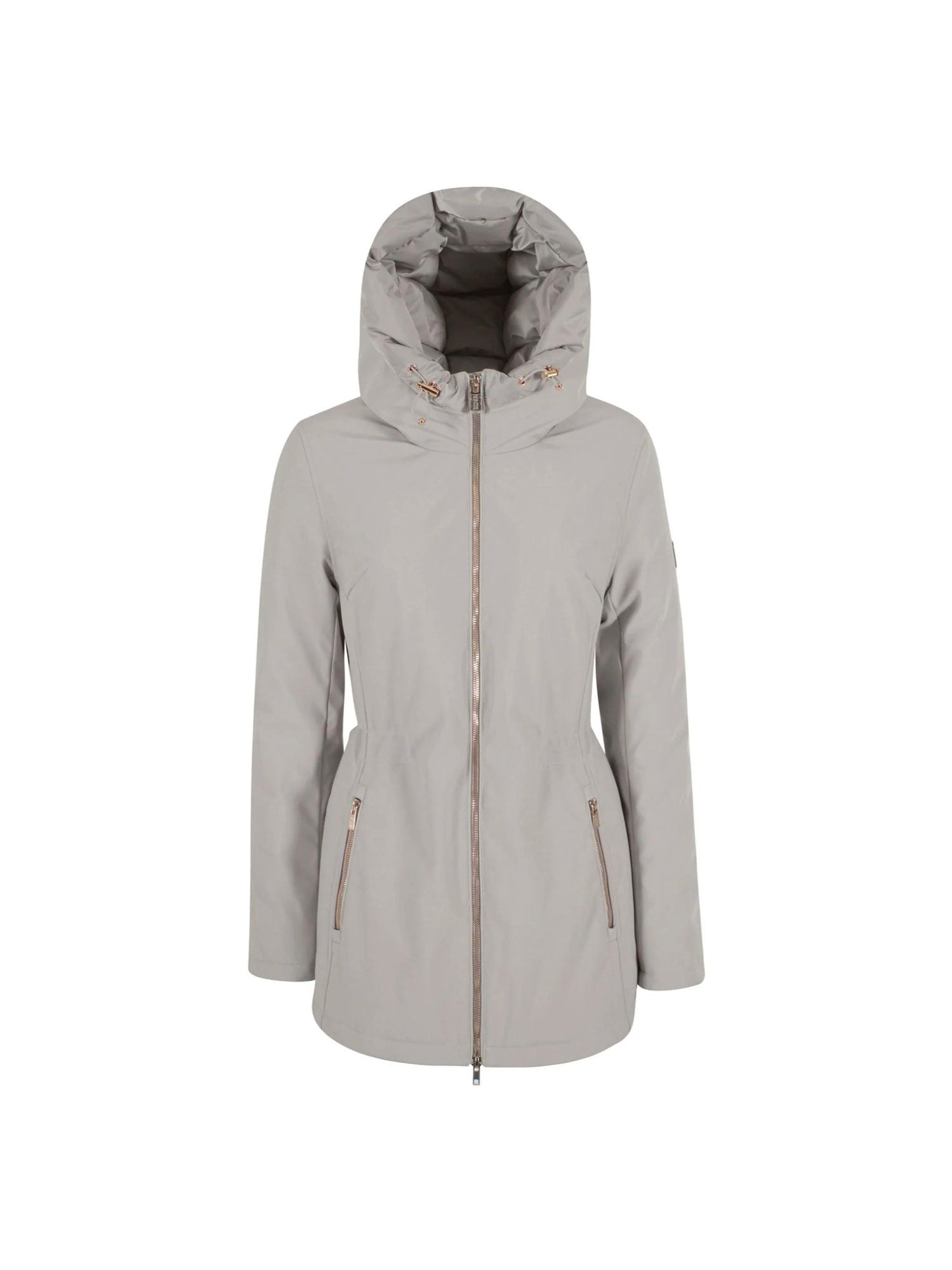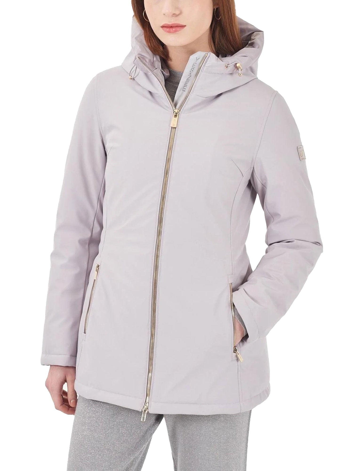 Parka medio Yes Zee donna softshell con cappuccio e coulisse perla