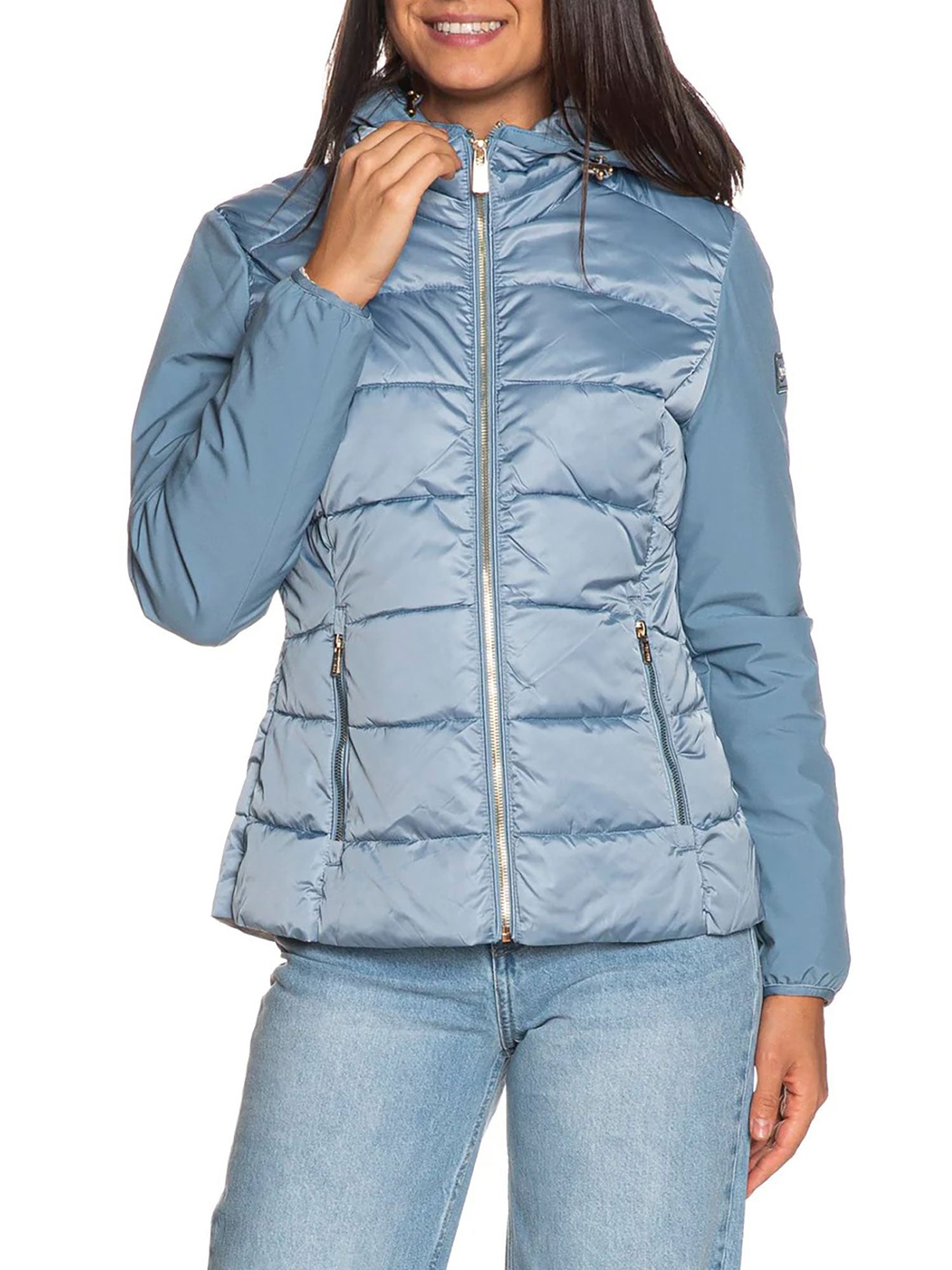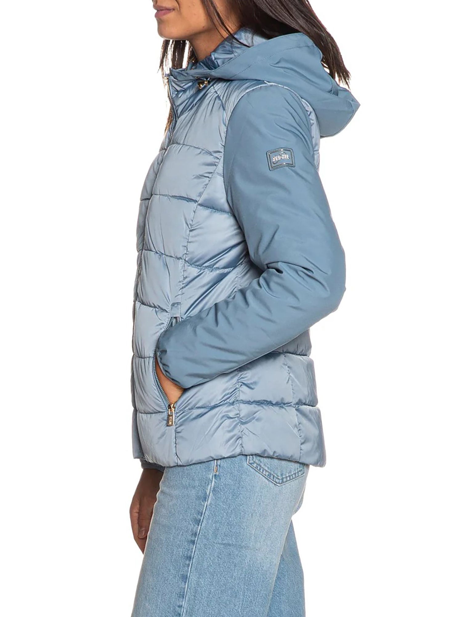 Piumino corto Yes Zee donna con cappuccio e finto gilet removibile polvere