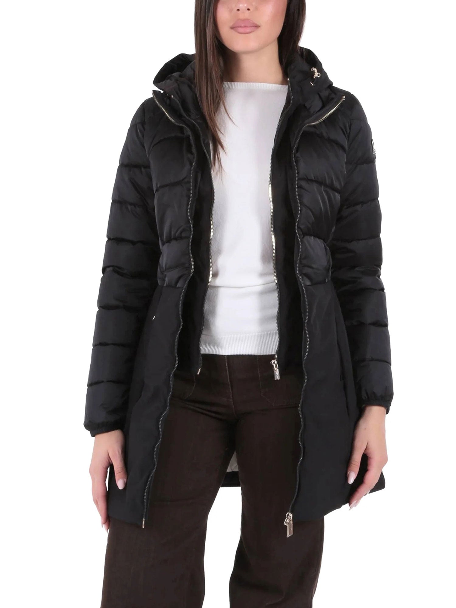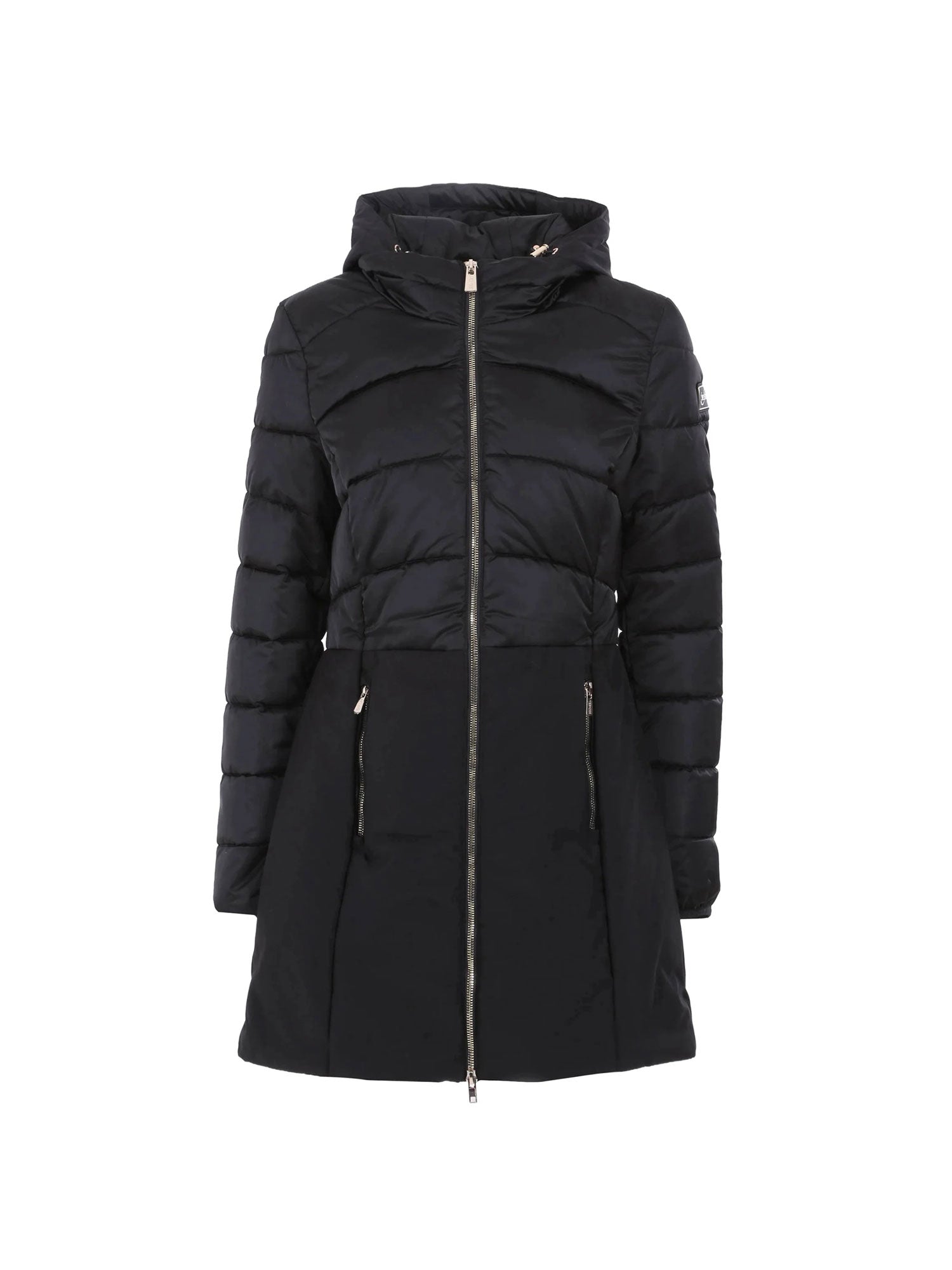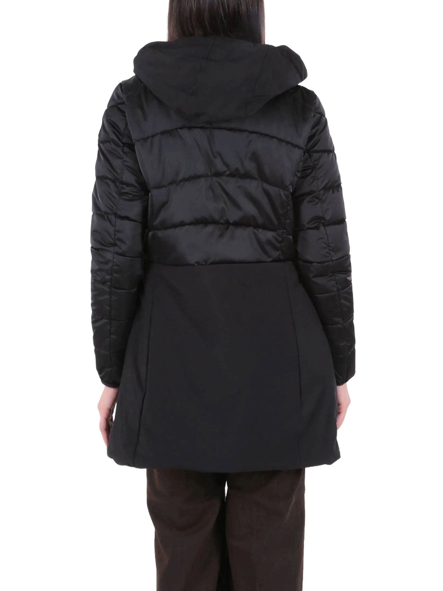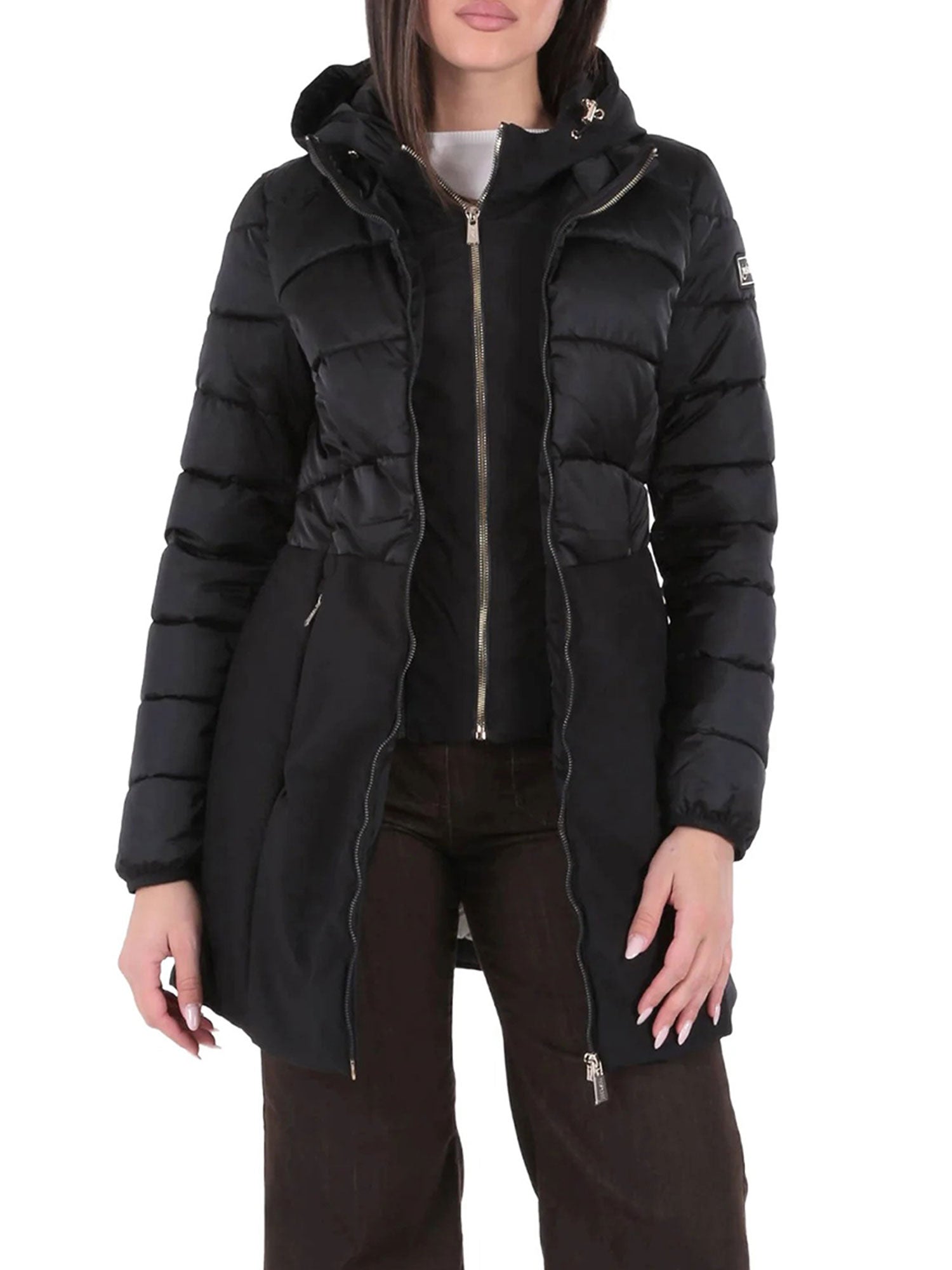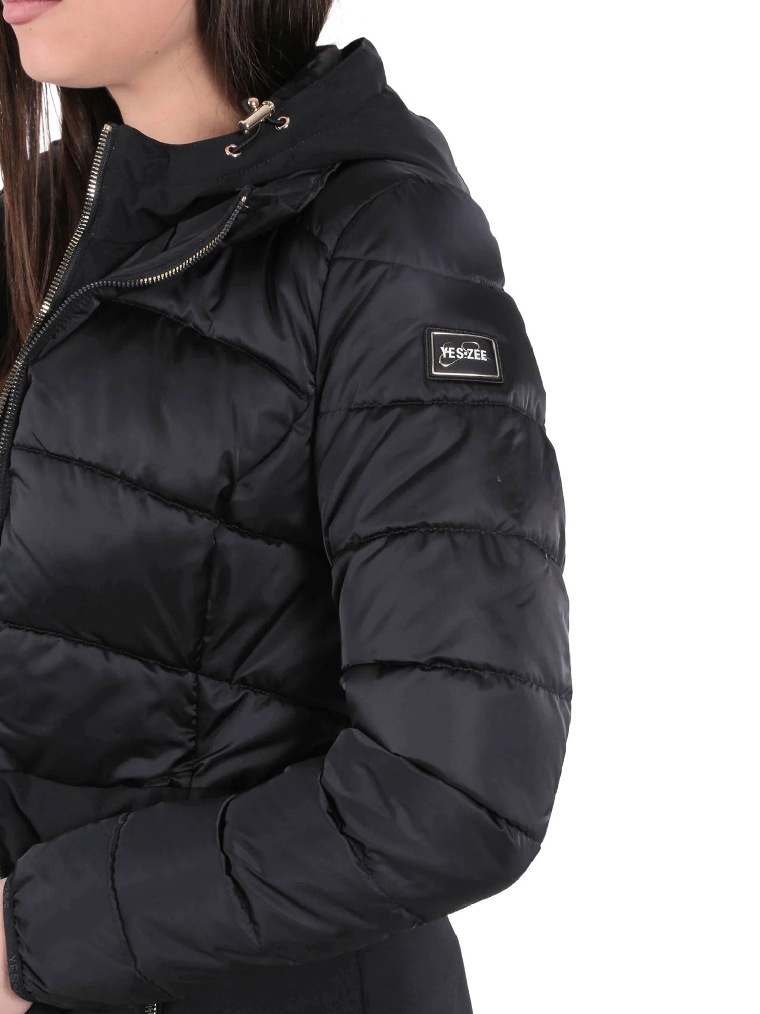Piumino lungo Yes Zee donna con cappuccio e finto gilet nero