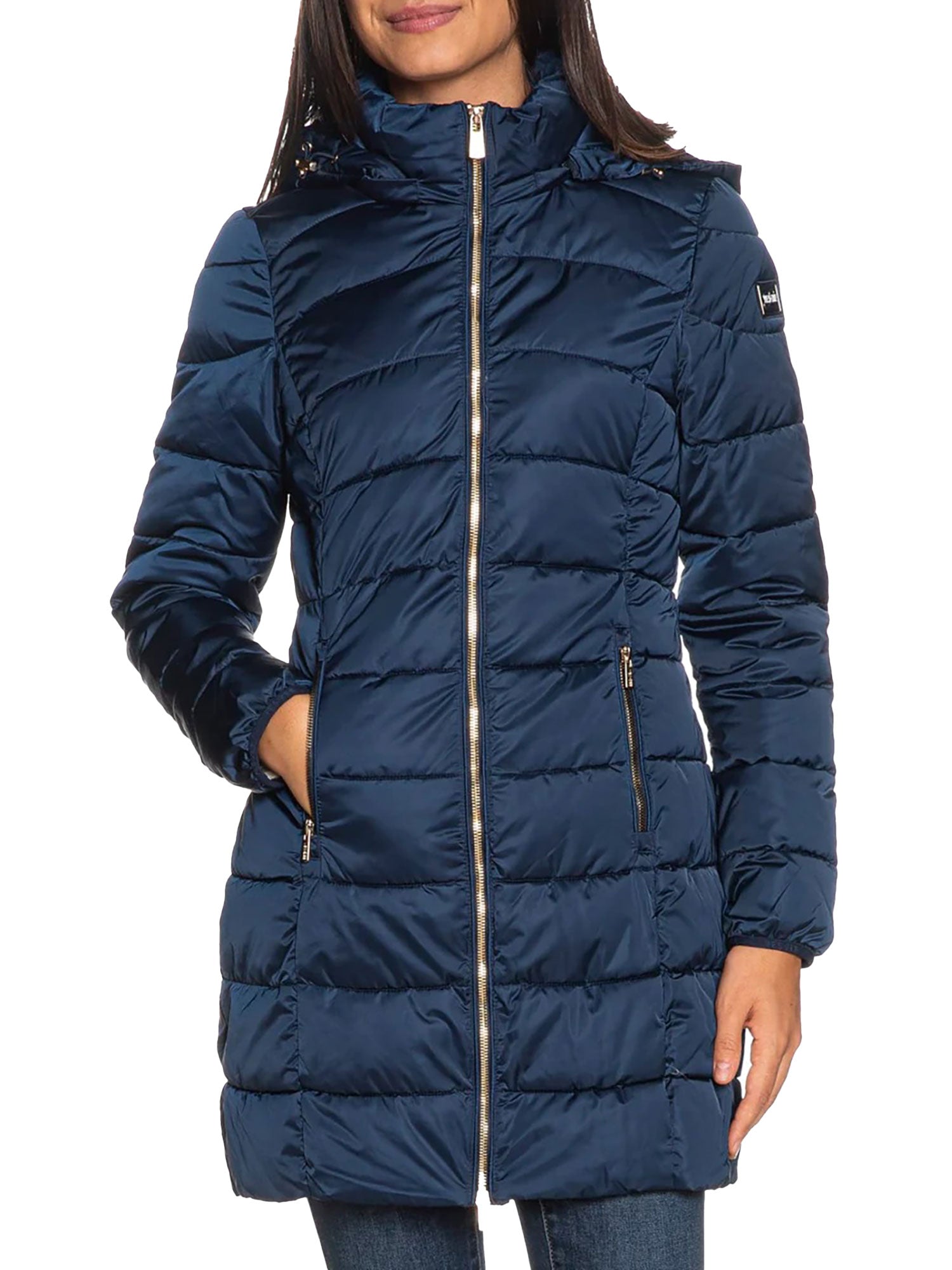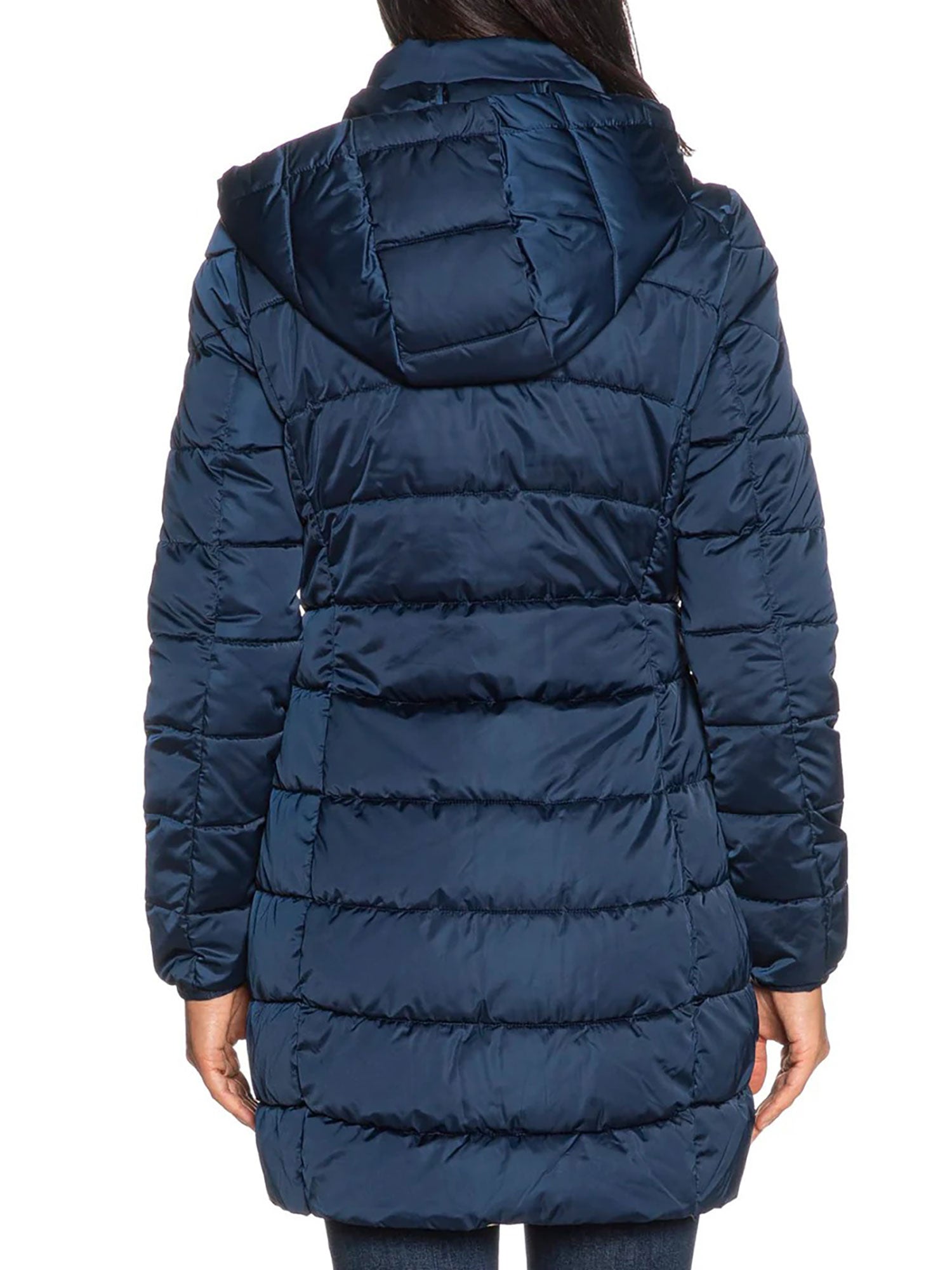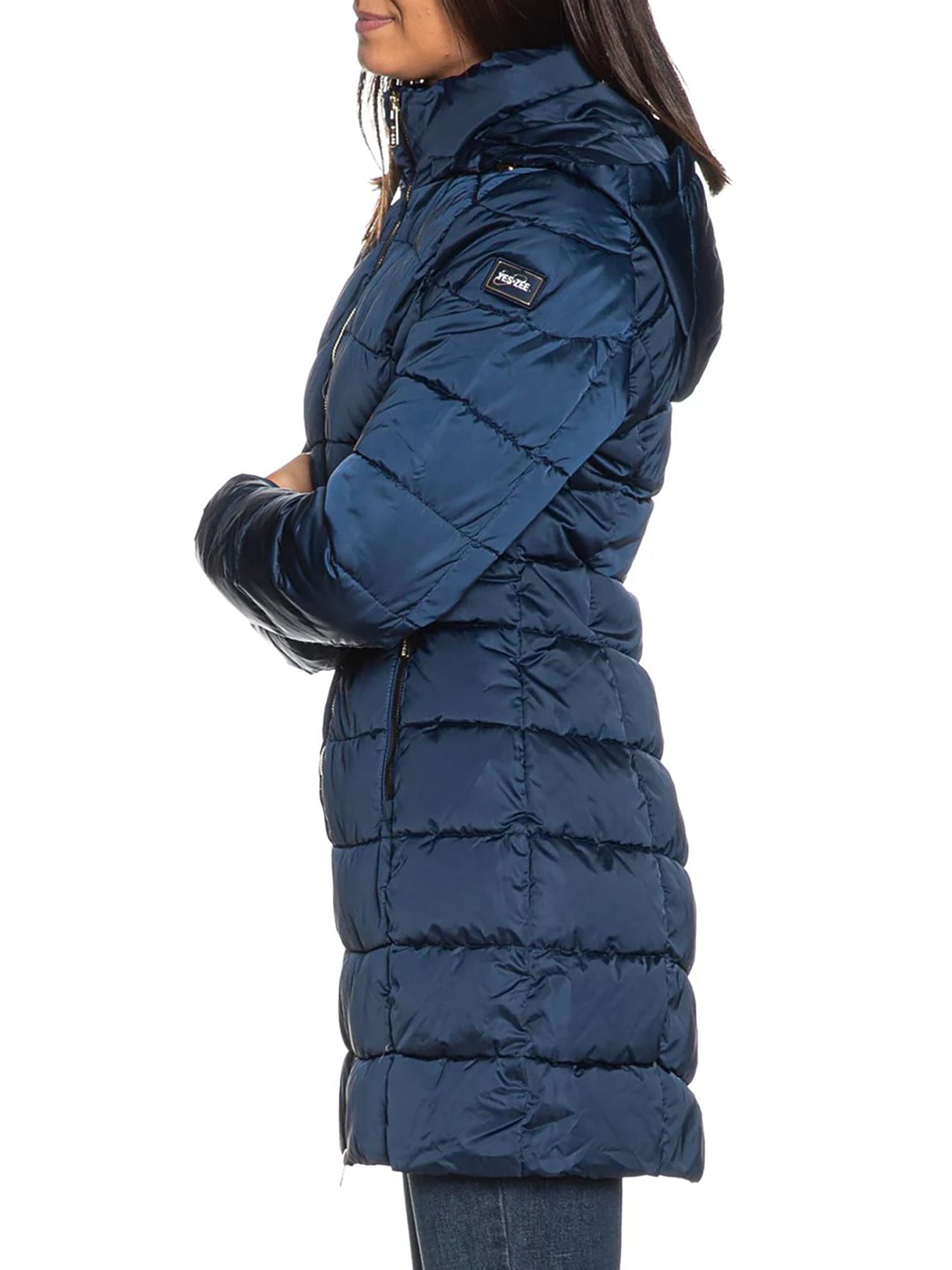 Piumino lungo nylon Yes Zee donna con cappuccio blu