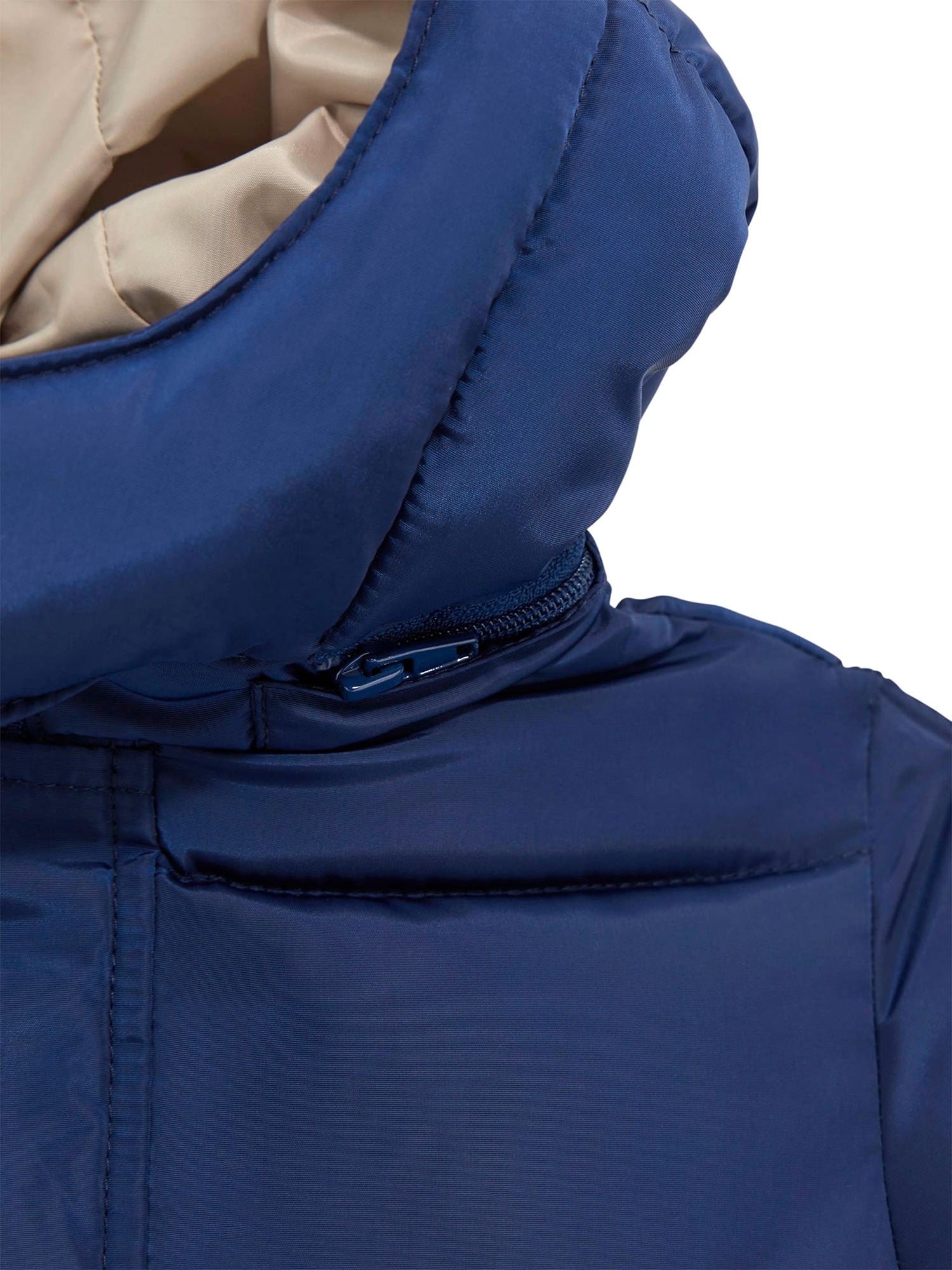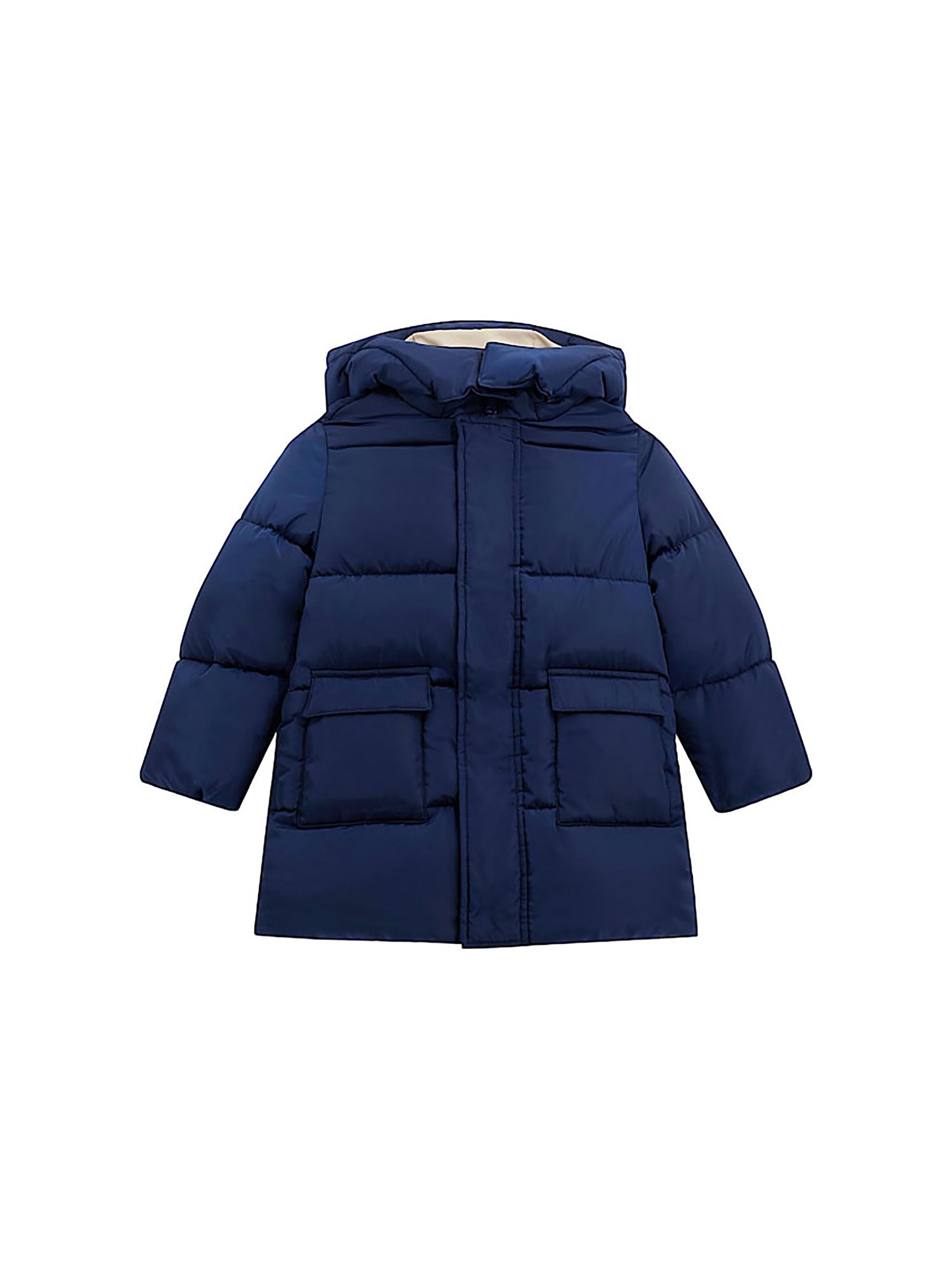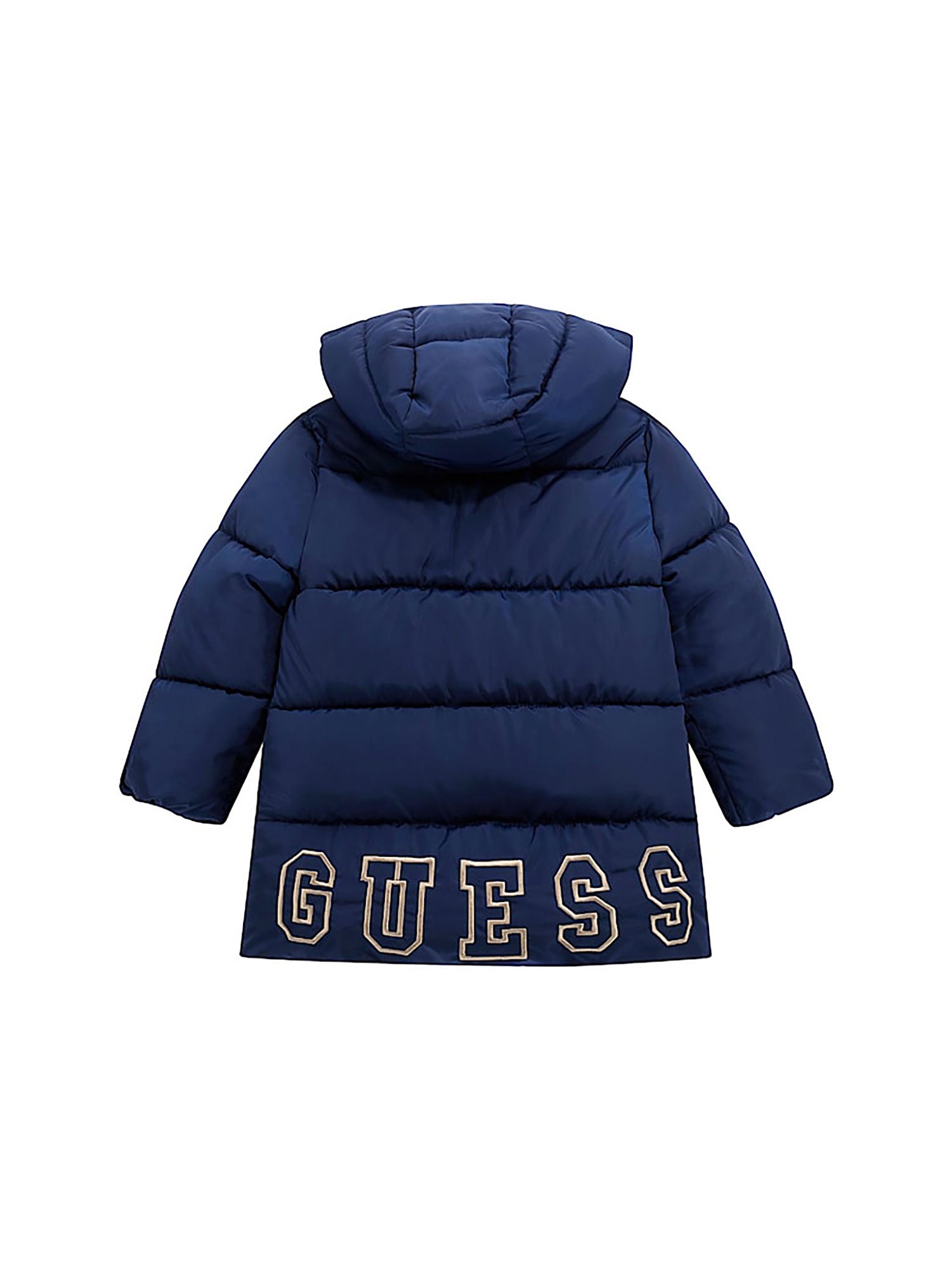 Piumino lungo imbottito con cappuccio Guess bambino con tasche frontali blu