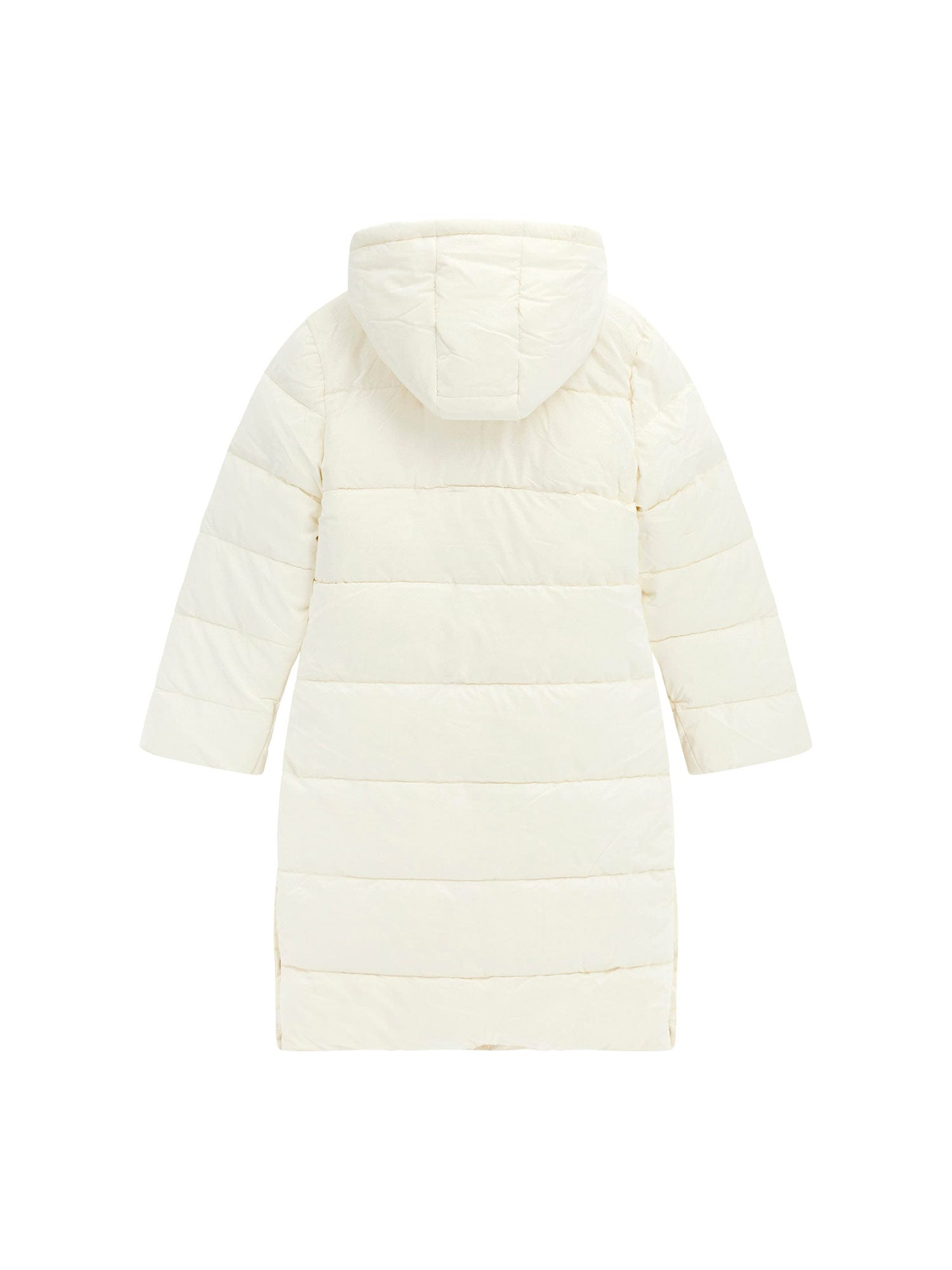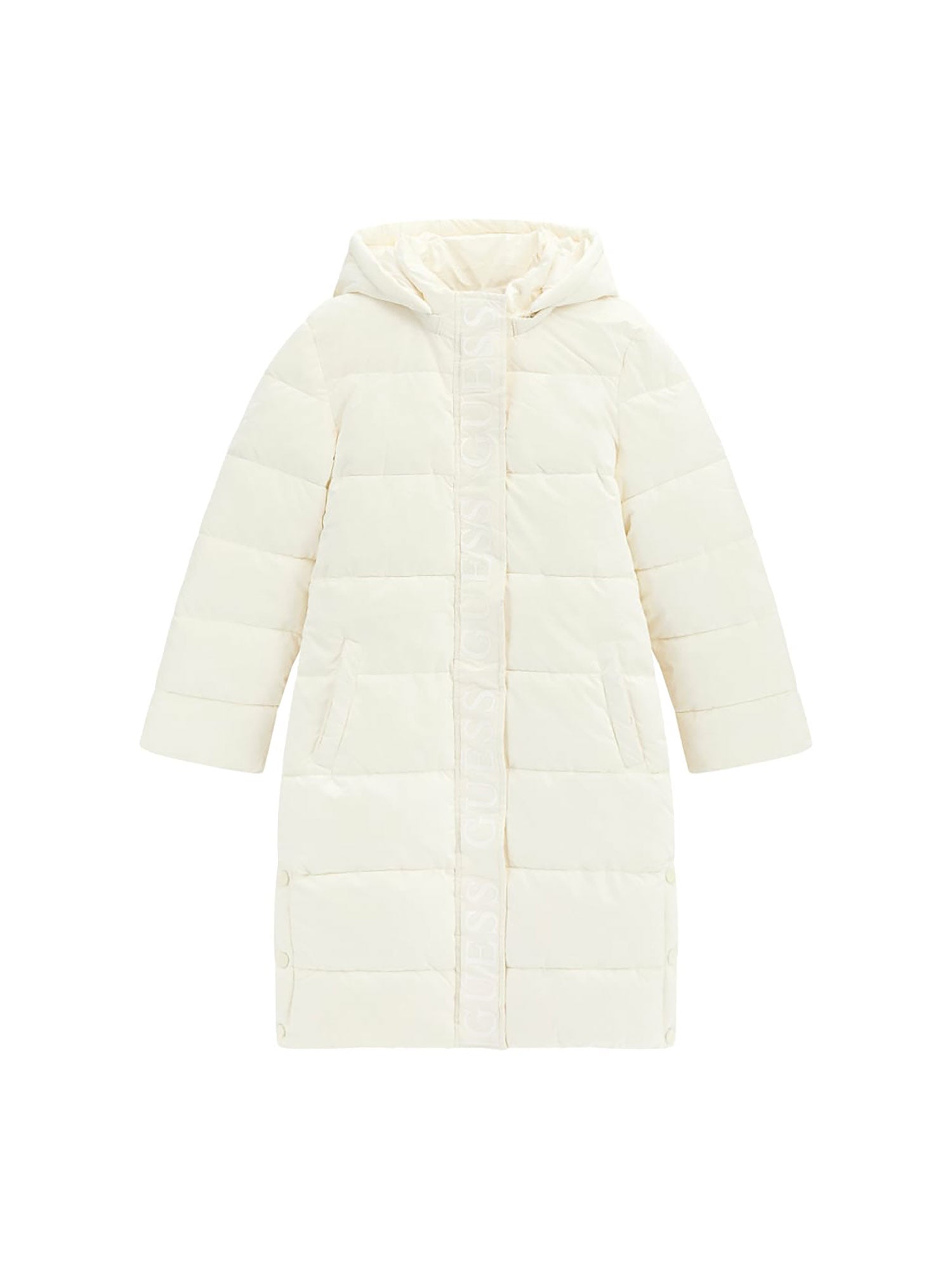 Piumino Guess bambina, lungo effetto lucido e color crema. Ideale per tener al caldo nelle giornate più rigide ma non trascurando la ricercatezza e una spiccata personalità elegante.