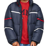Piumino teen global stripe con zip blu
