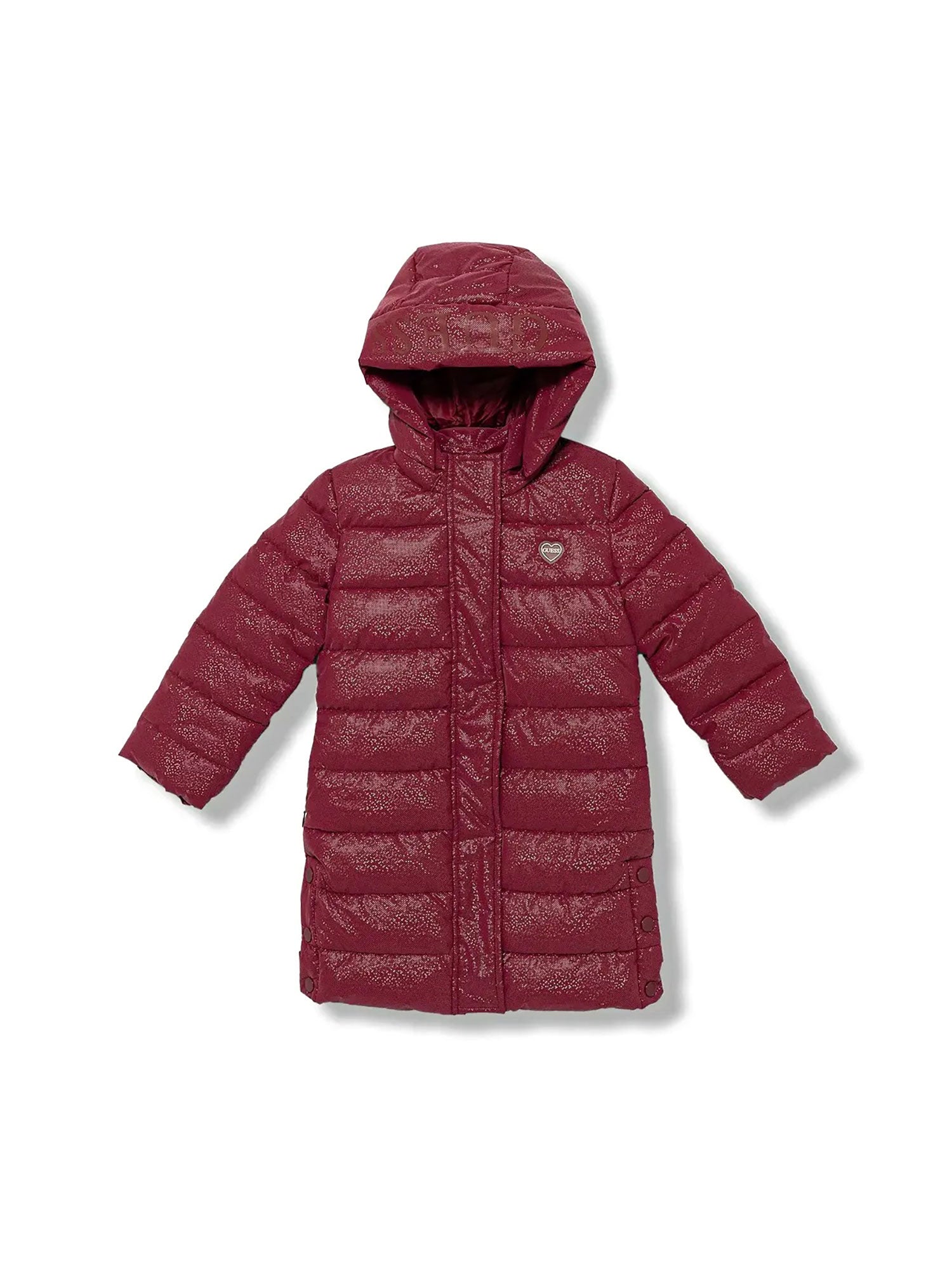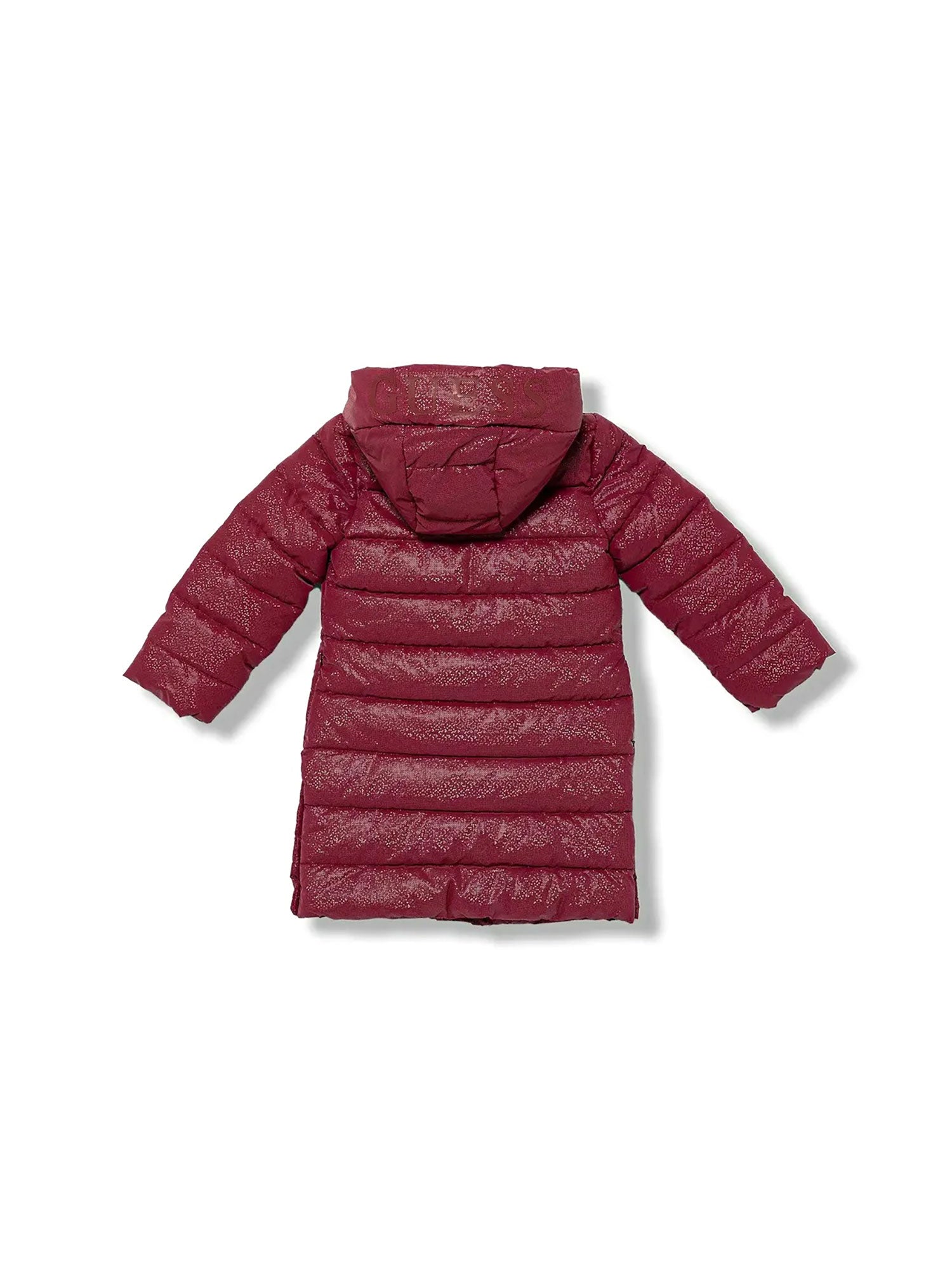 Piumino lungo con zip e cappuccio Guess bambina tessuto laminato rosso