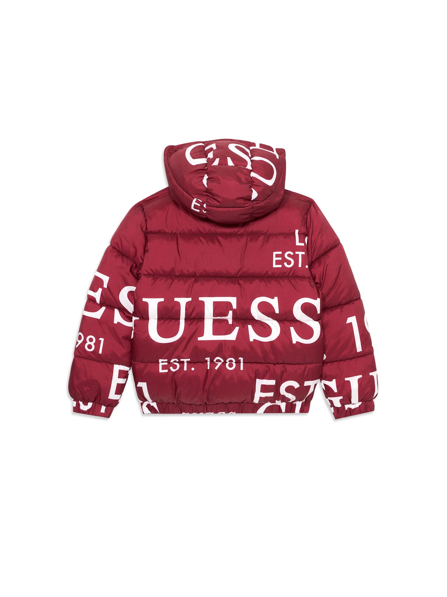 - Stampa logo Guess e “EST. 1981” a contrasto su tutta la superficie