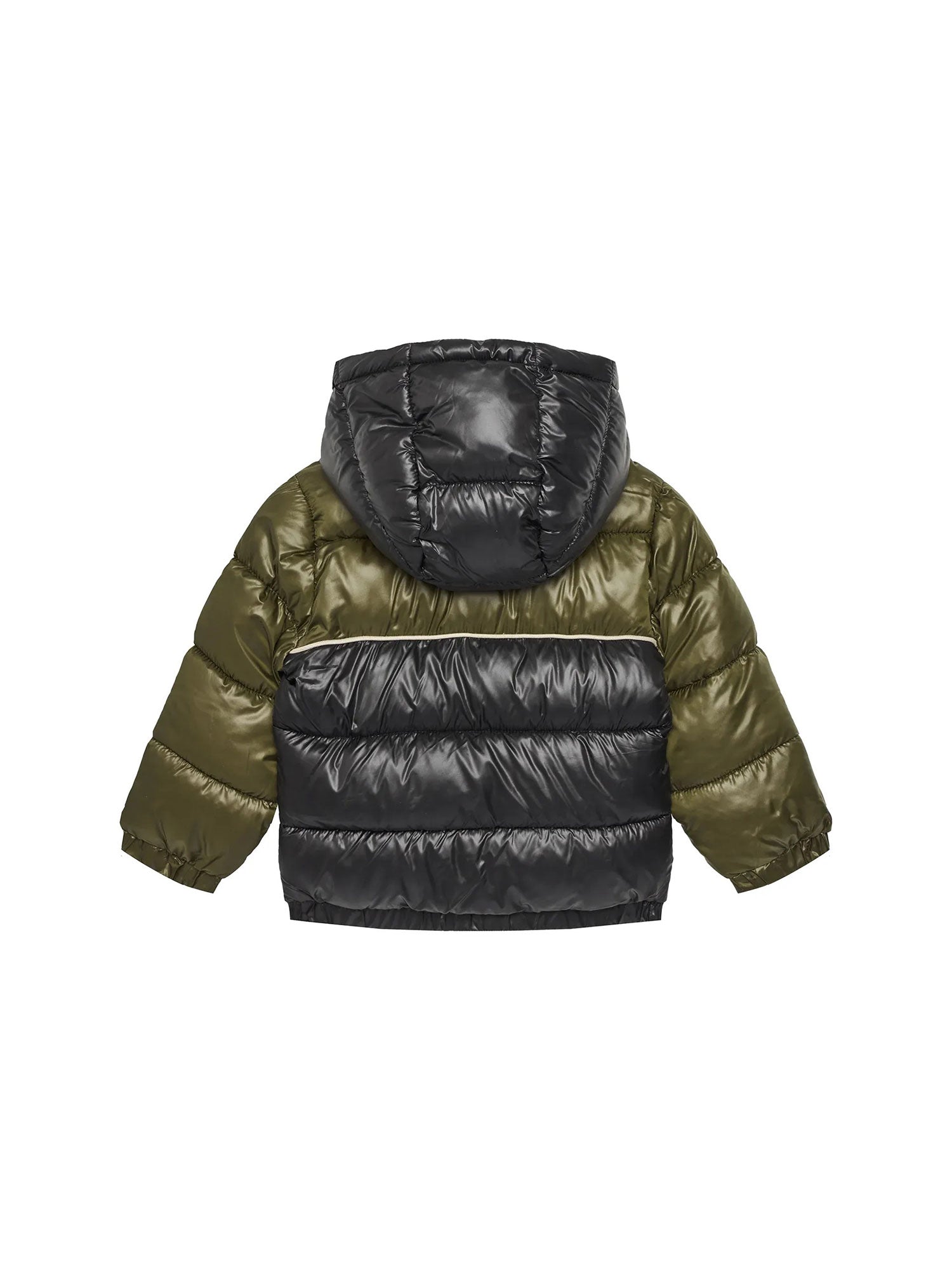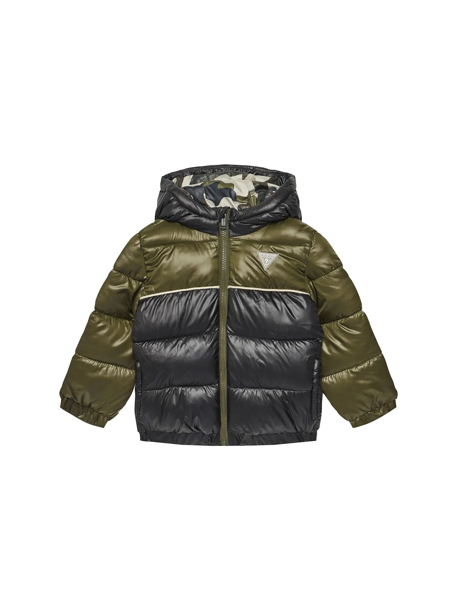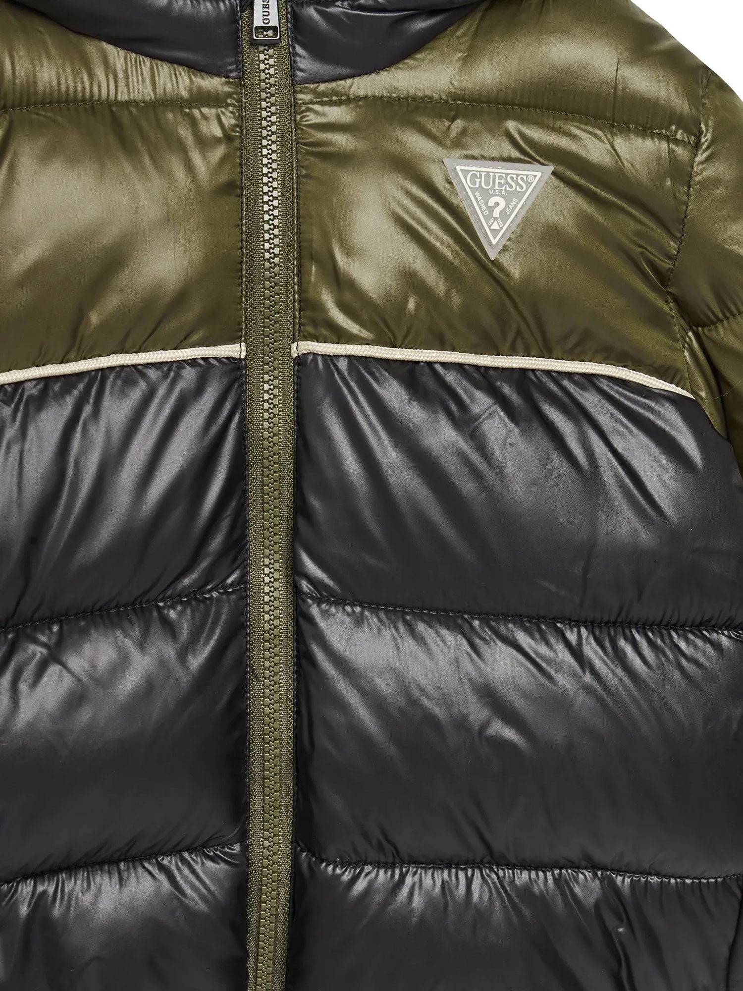 Piumino con zip e cappuccio Guess bimbo colorblock verde/nero