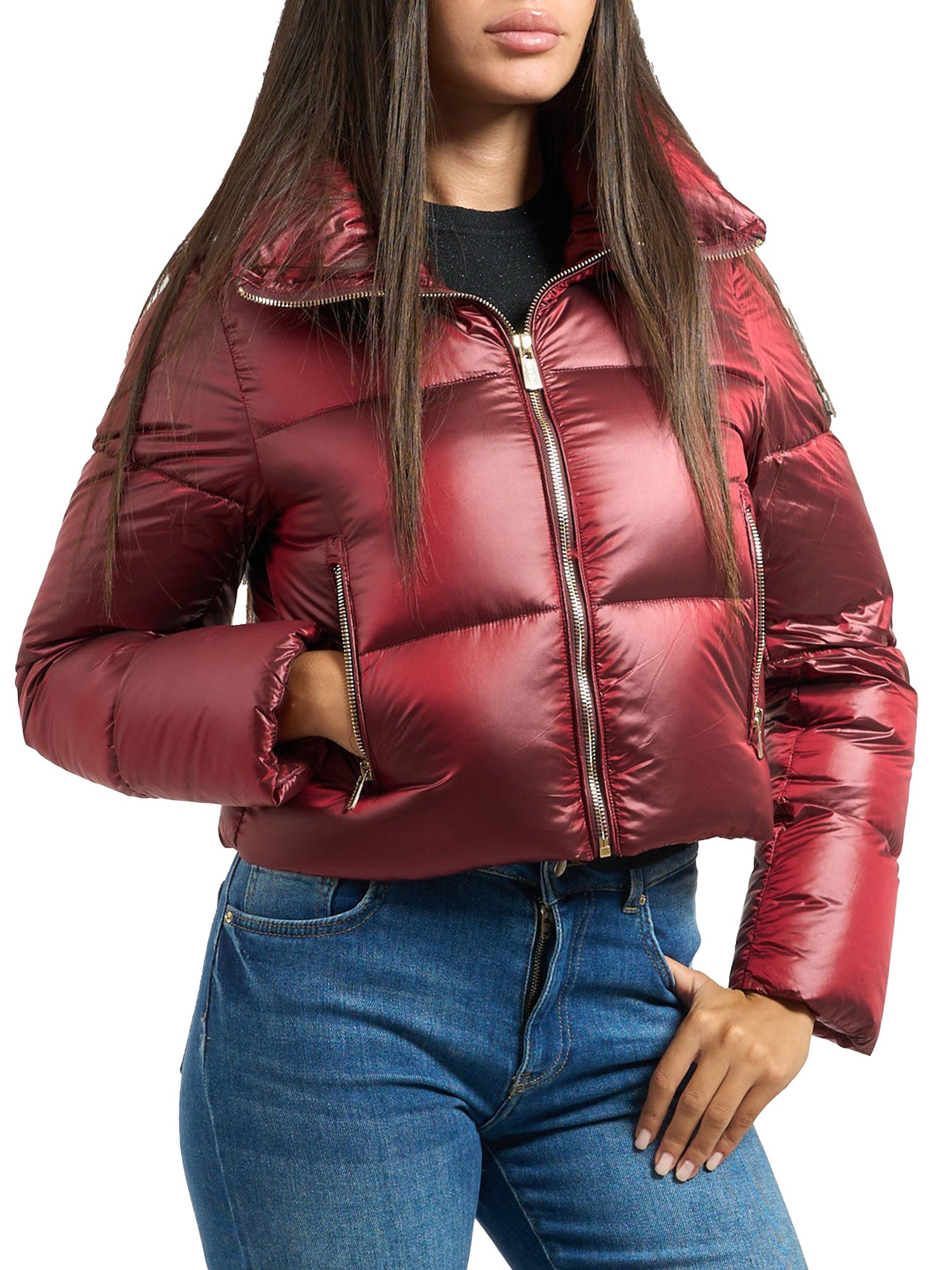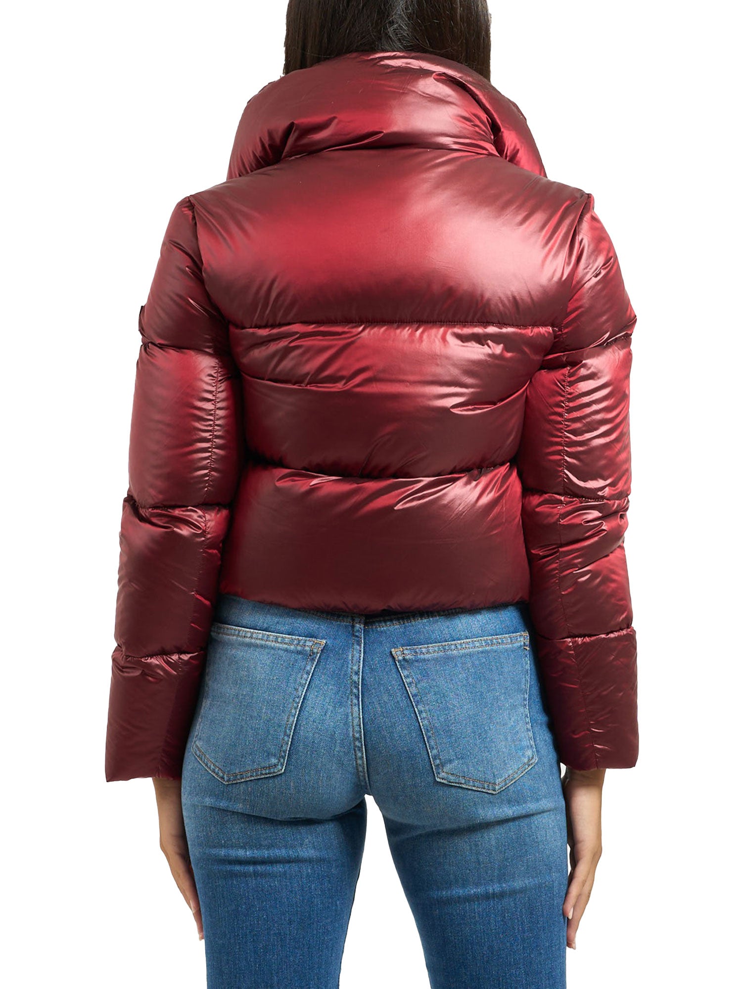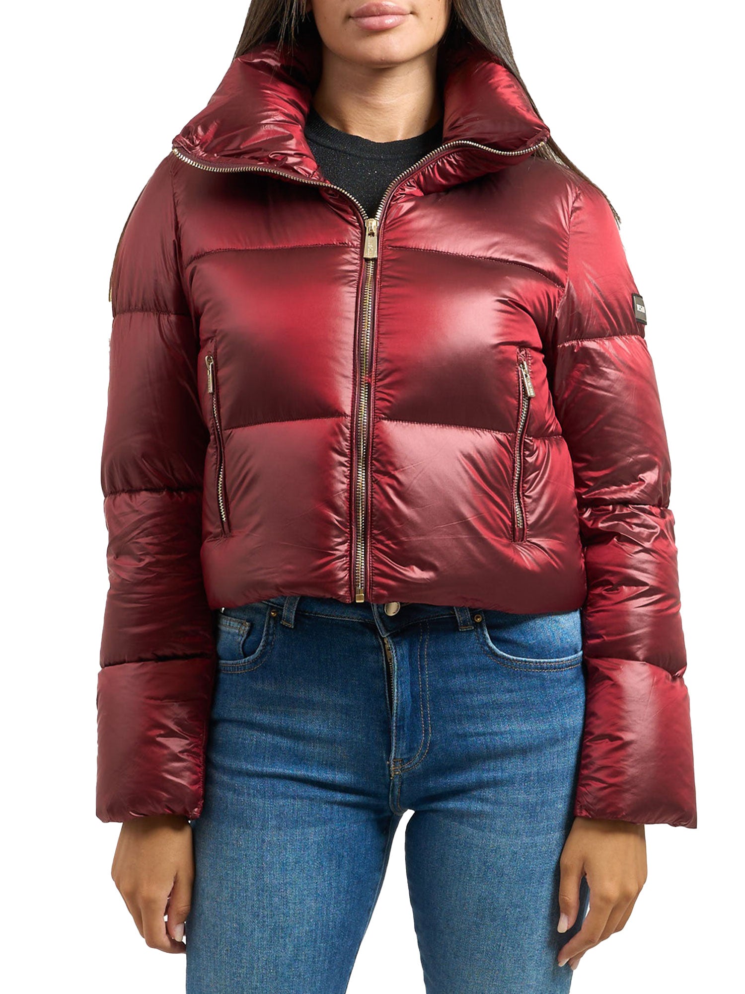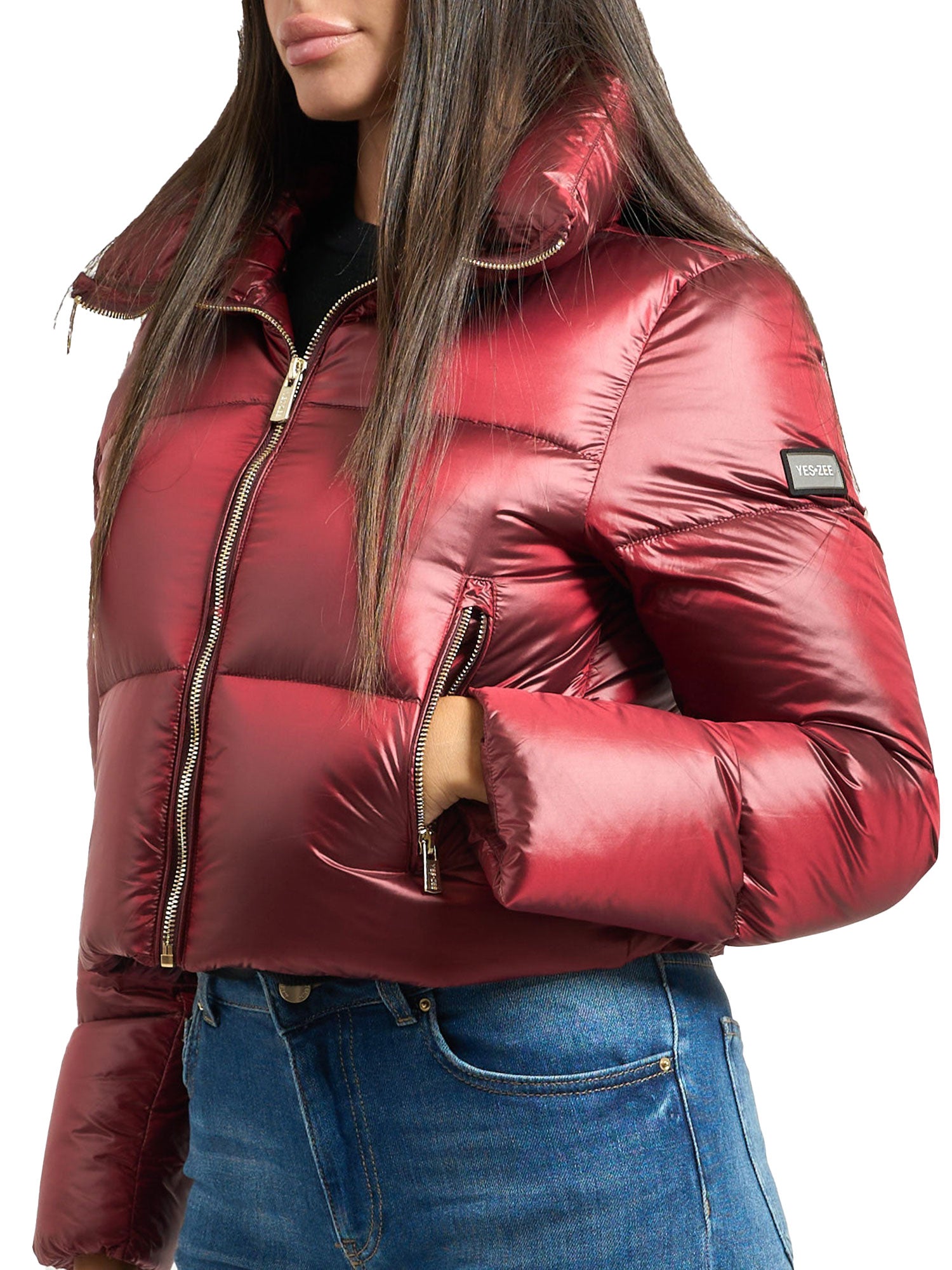 Piumino corto crop Yes Zee donna collo alto rosso