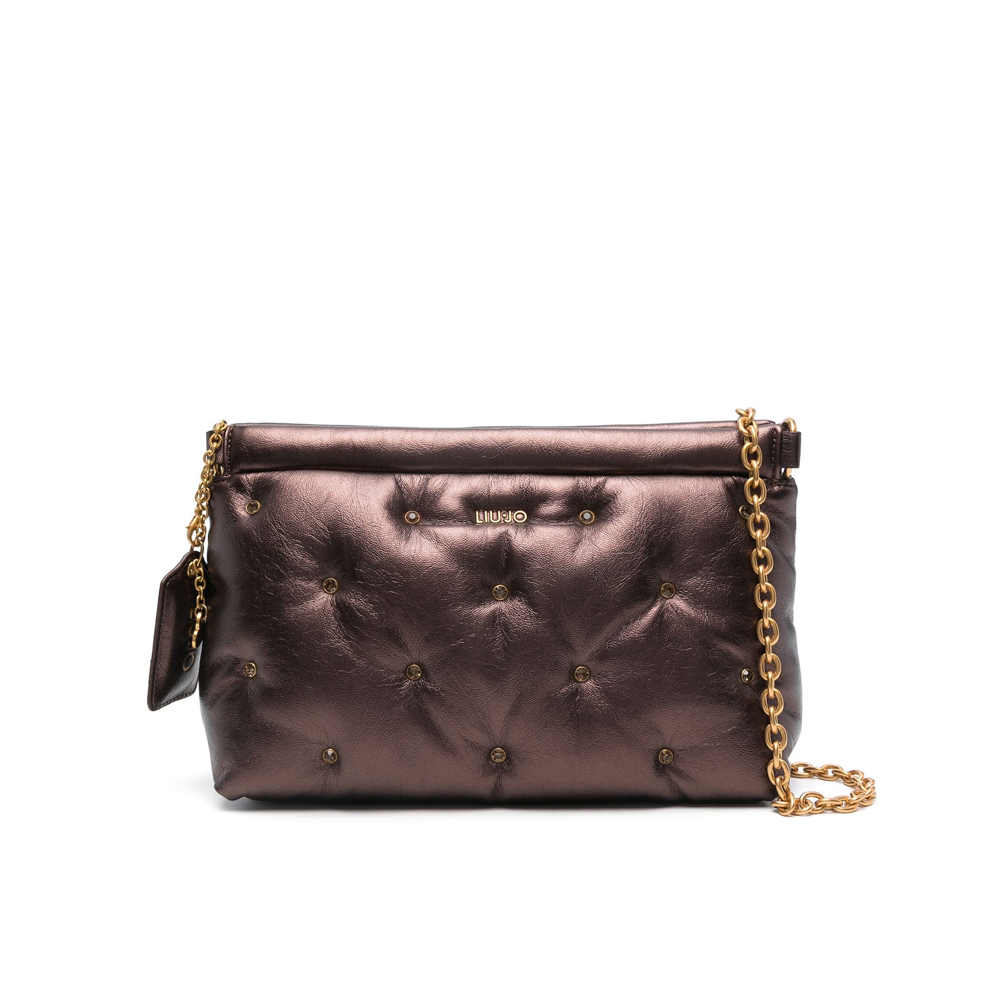 Pochette Liu Jo, modello pasticcino, con design imbottito e decorazione con strass all over.