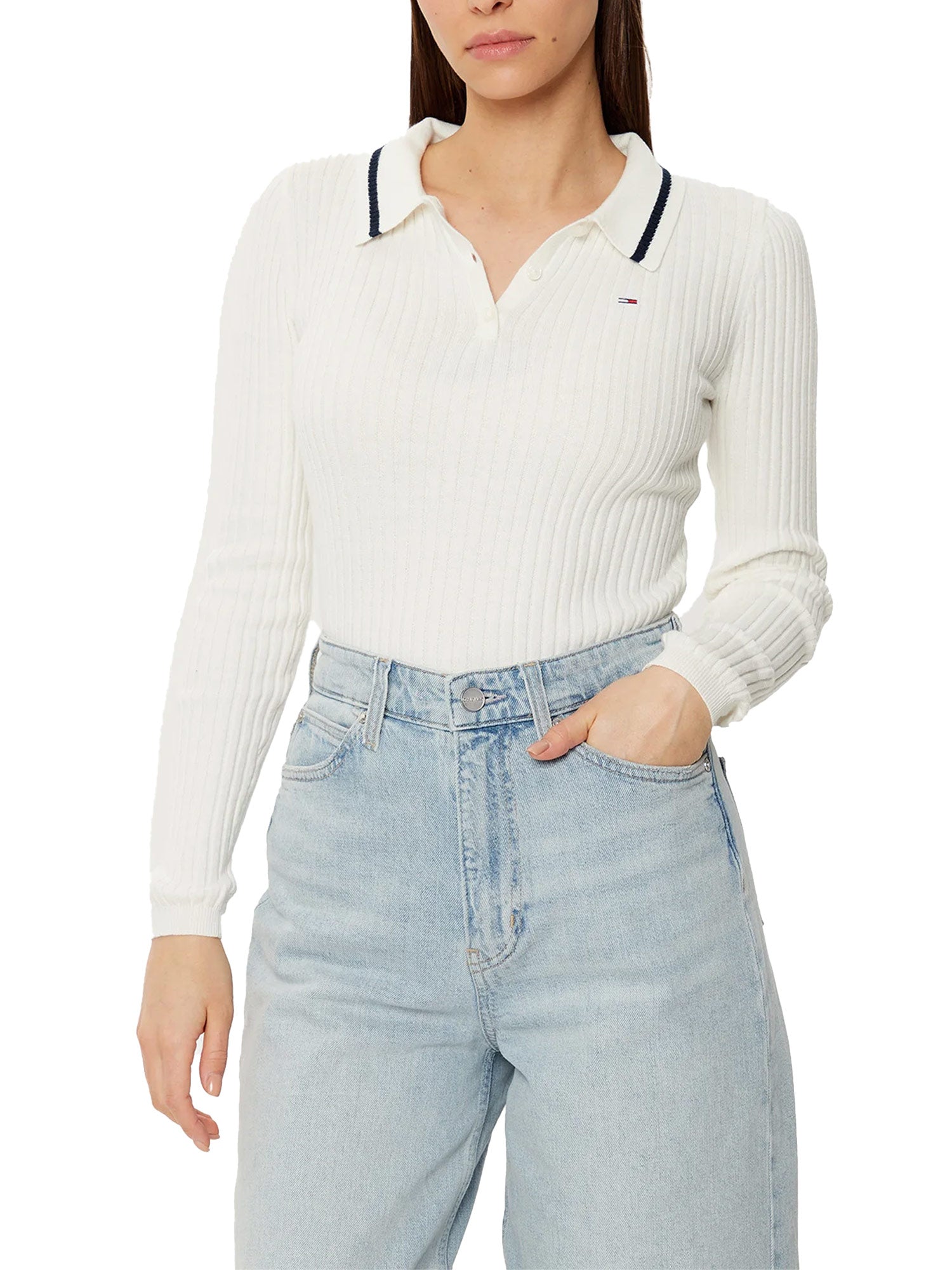 Questa maglia polo firmata Tommy Jeans unisce eleganza e versatilità, perfetta per creare look casual con un tocco di classe. Perfetta per un outfit casual da ufficio, un brunch con le amiche o una giornata all'aperto. Da abbinare a pantaloni bianchi per un look sofisticato o a jeans per un tocco più rilassato.