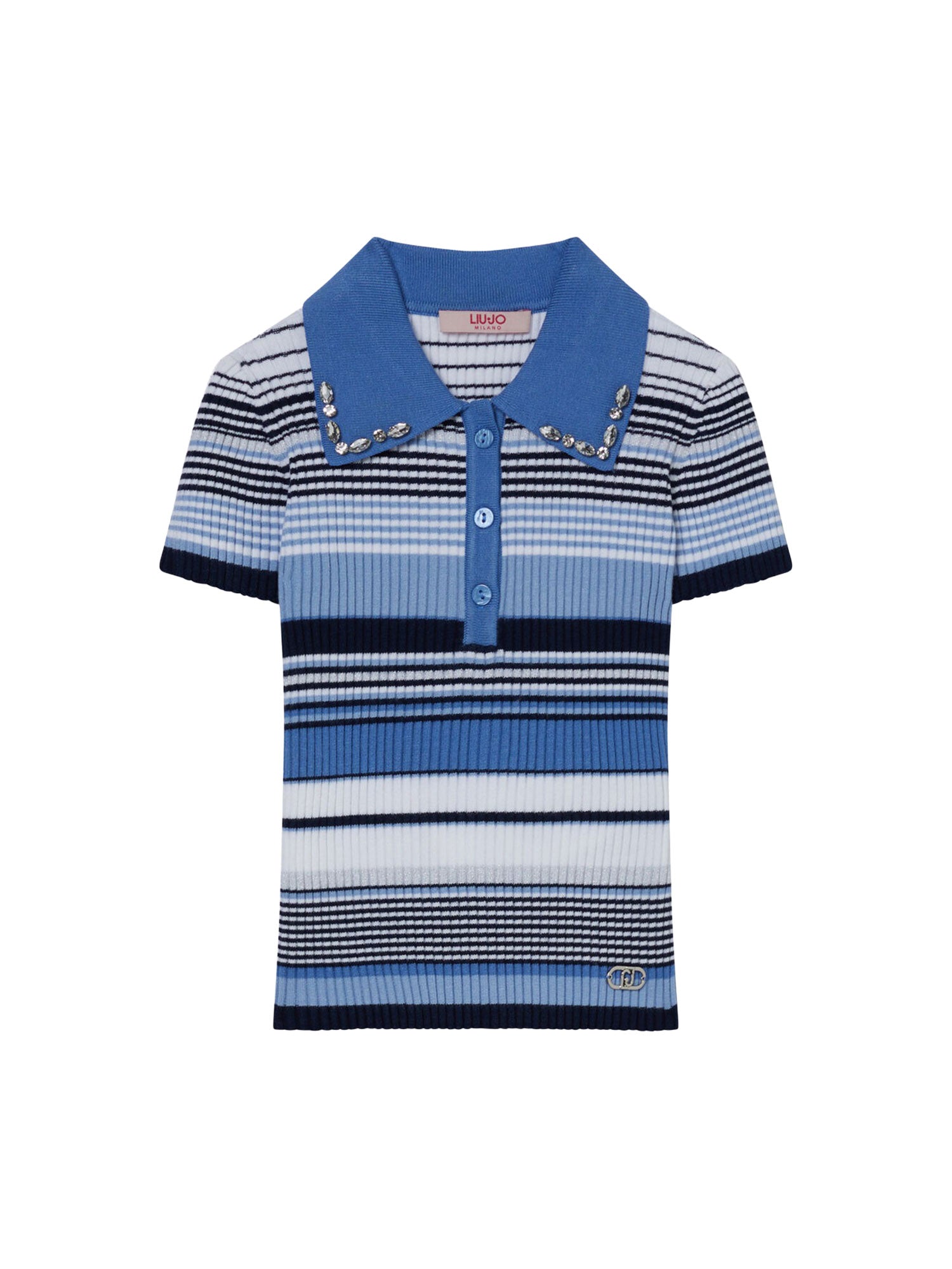 Polo Liu Jo Ragazza manica corta stripe Celeste multi