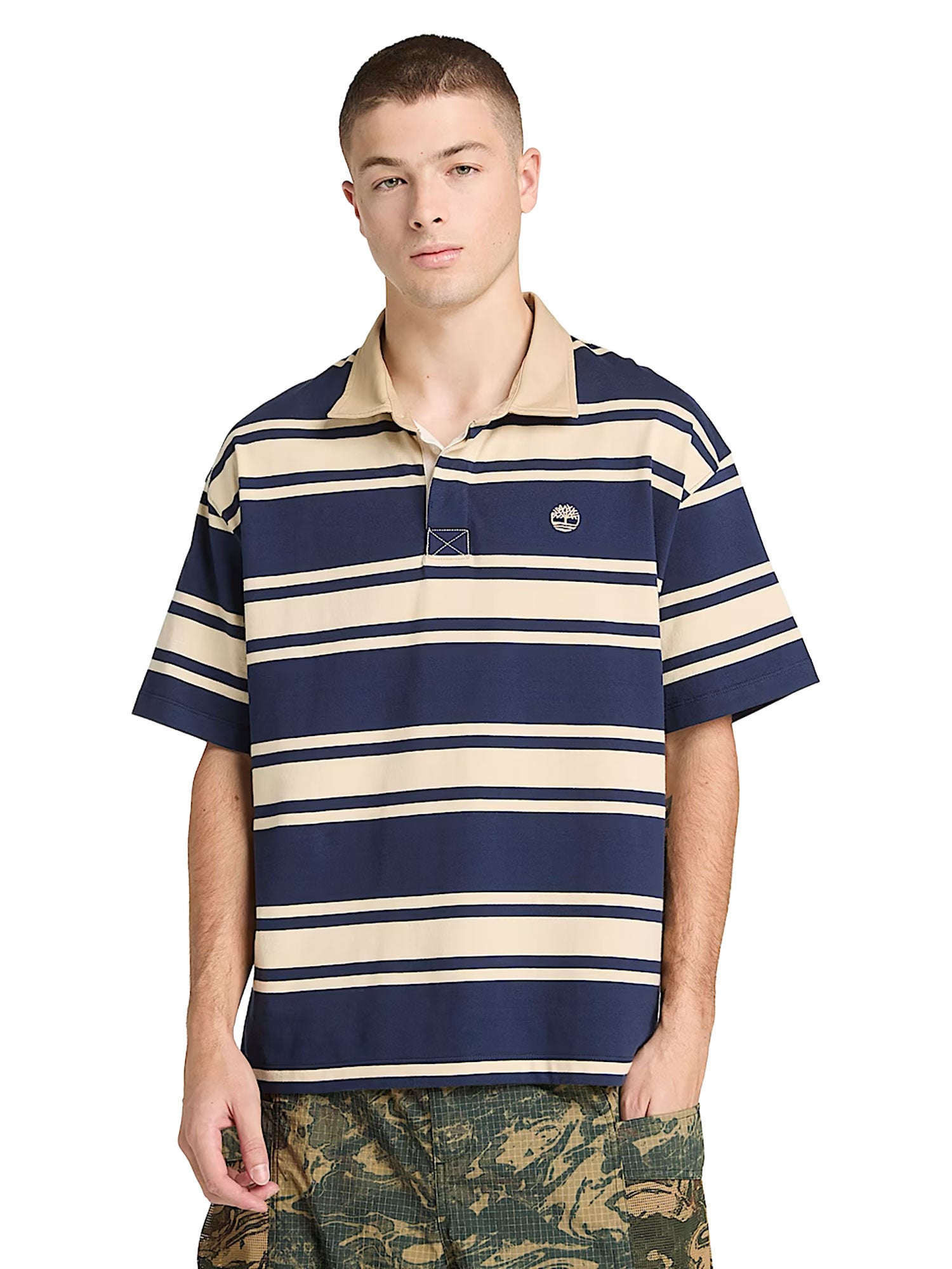 Polo Timberland uomo manica corta Striped Rugby blu/beige