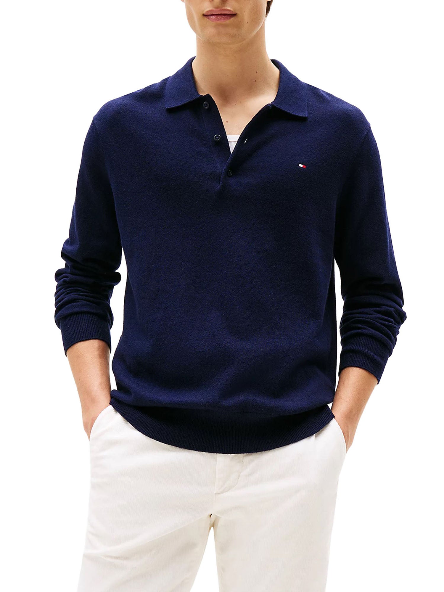 Polo Tommy Hilfiger uomo classica a maniche lunghe, realizzata in misto cotone e cashmere, si distingue per il raffinato dettaglio con bandierina sul petto. Ideale per chi ama uno stile sofisticato e cool. Perfetta sotto un jeans.