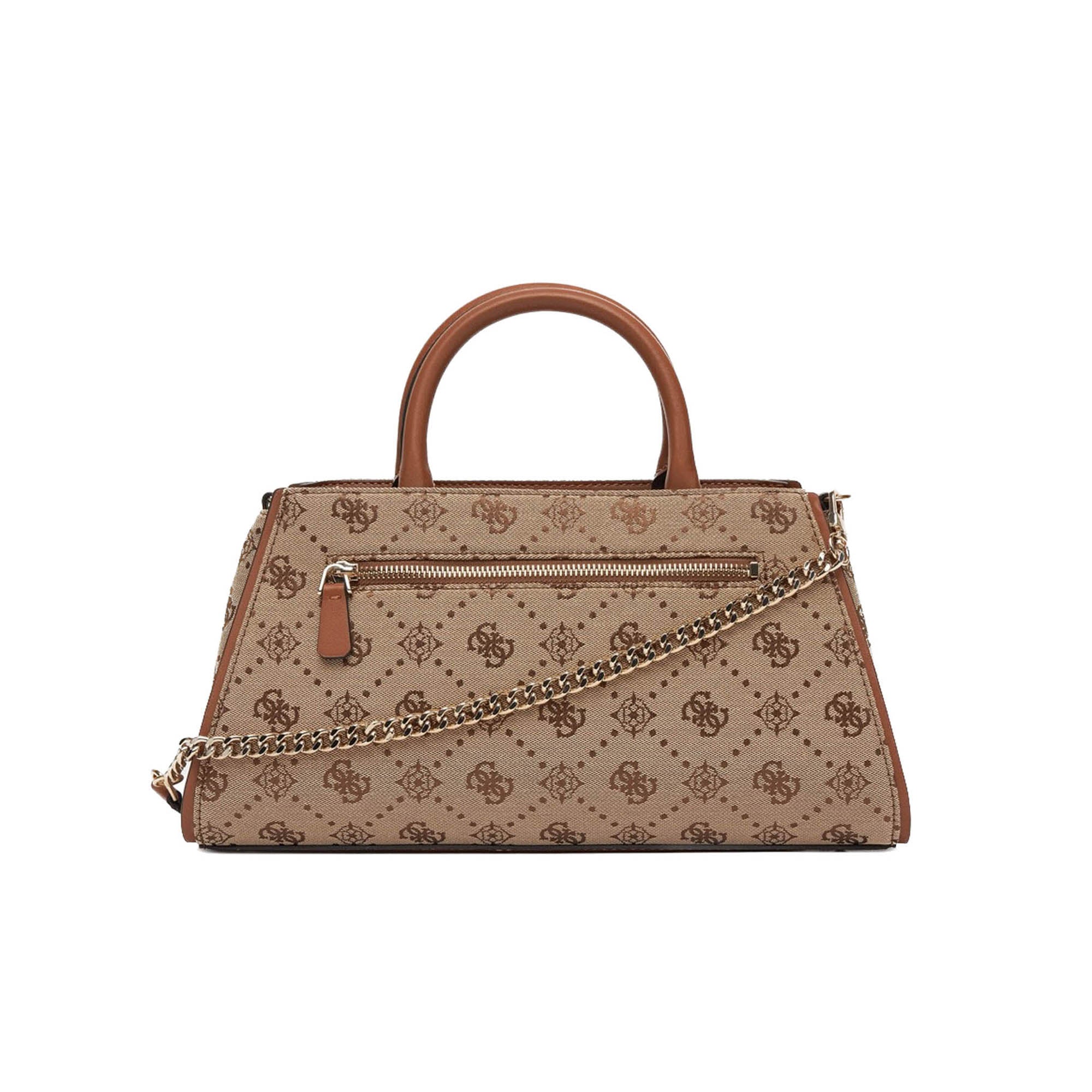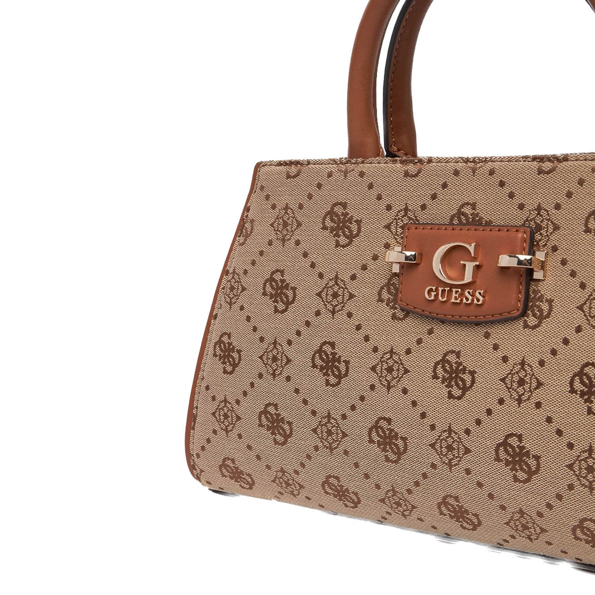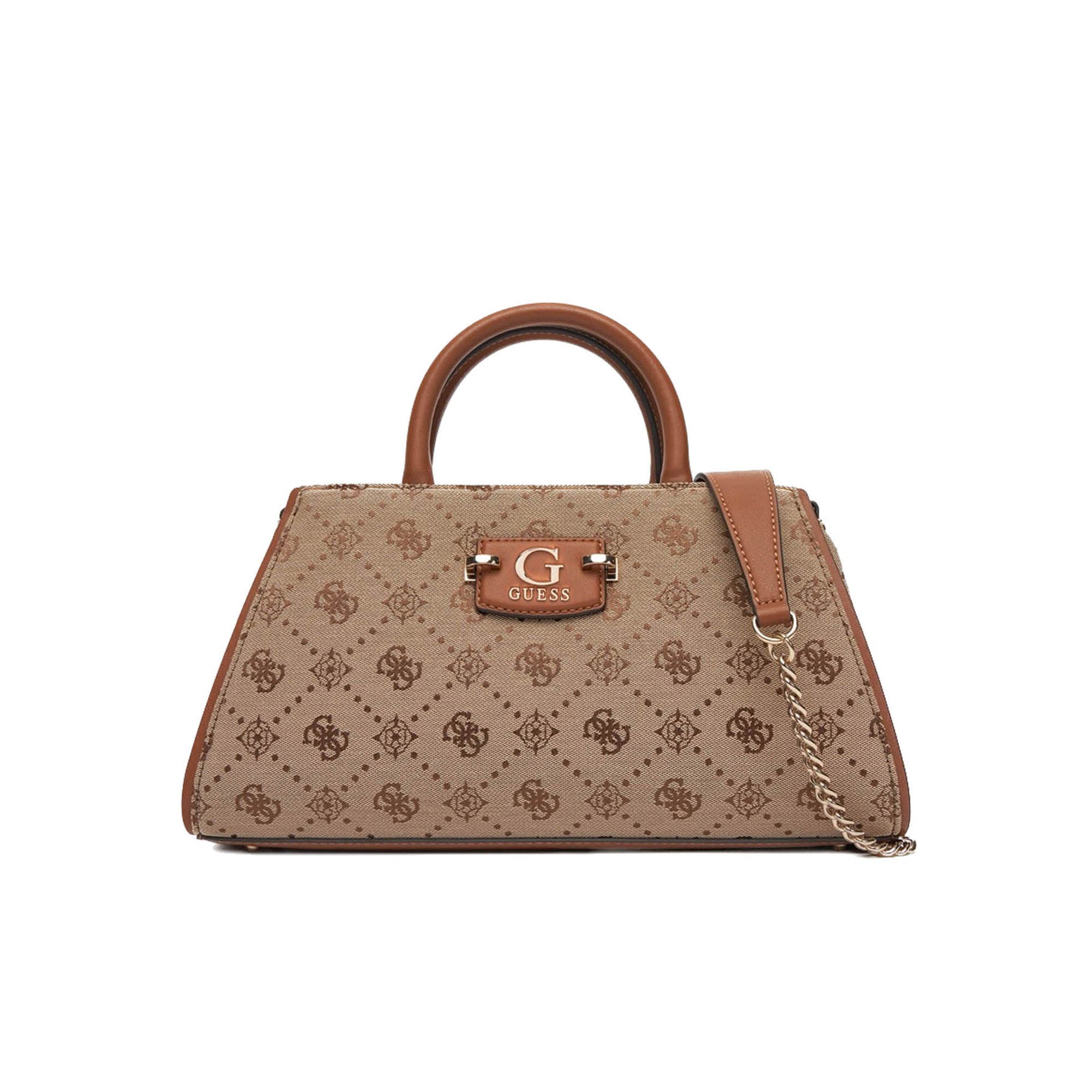 Borsa Guess donna in canvas logato con dettagli in ecopelle cuoio, dal fascino elegante e senza tempo, perfetta per aggiungere un tocco chic a qualsiasi look quotidiano.