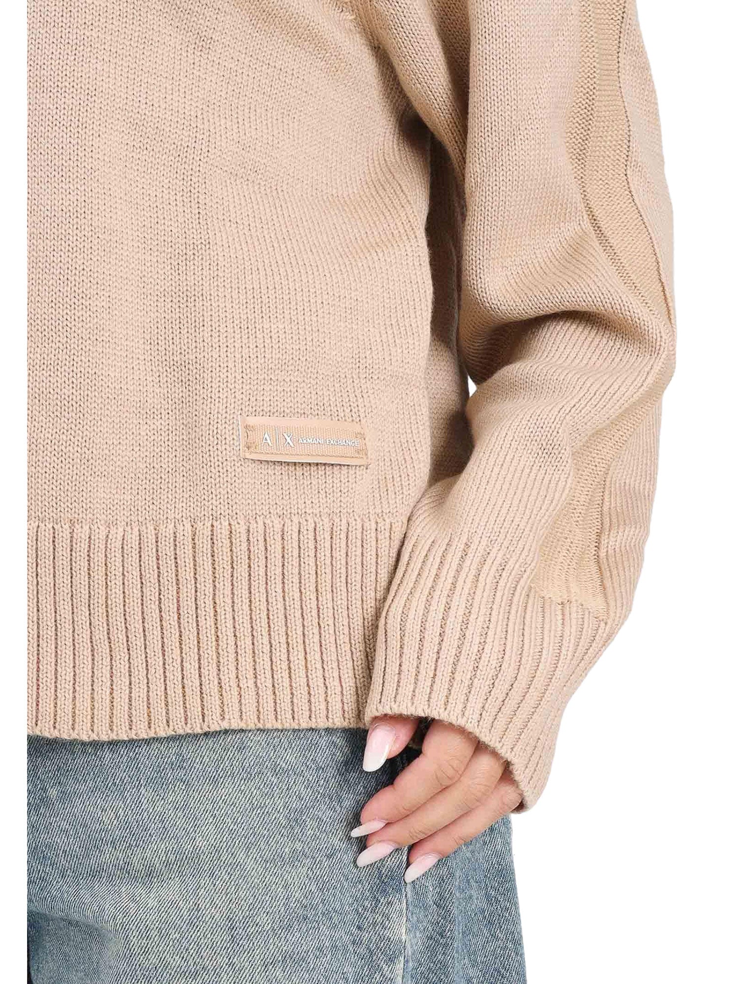 Maglioncino Armani Exchange donna con scollo a V sabbia