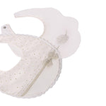 - Secondo bavaglino: Dal design leggermente sagomato, presenta un’applicazione centrale di un fiore in tessuto con dettagli scintillanti. I piccoli punti dorati e le decorazioni laterali aggiungono un tocco di eleganza.