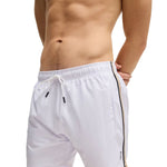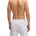 Costume da bagno Boss è un modello sportivo e dinamico, perfetto per chi cerca comfort e stile in spiaggia. Il design a vita media presenta una coulisse regolabile in vita per una vestibilità ottimale, mentre il logo Boss ricamato sulla parte anteriore aggiunge un tocco distintivo di classe.