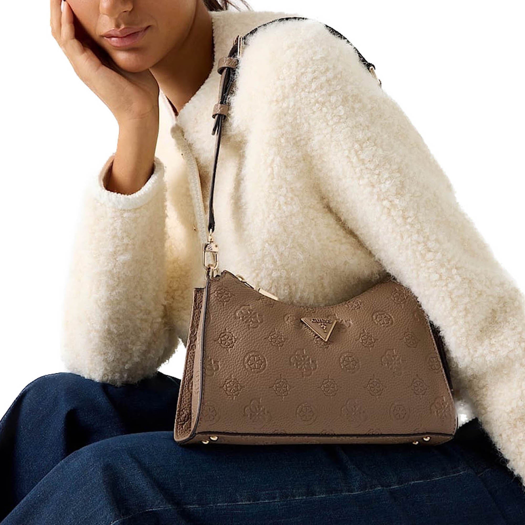 Borsa a spalla Guess donna Cresidia II taupe logo