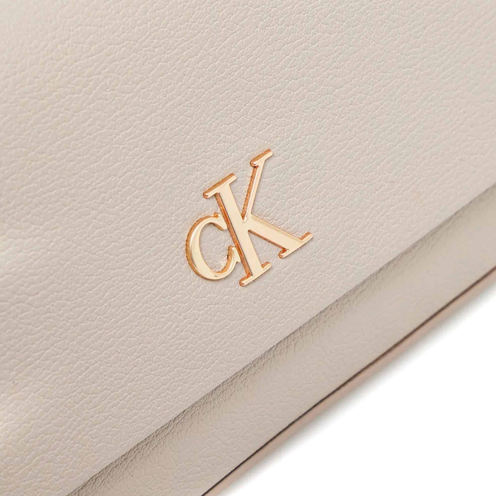 Borsa a spalla minimal con logo Calvin Klein monogram beige