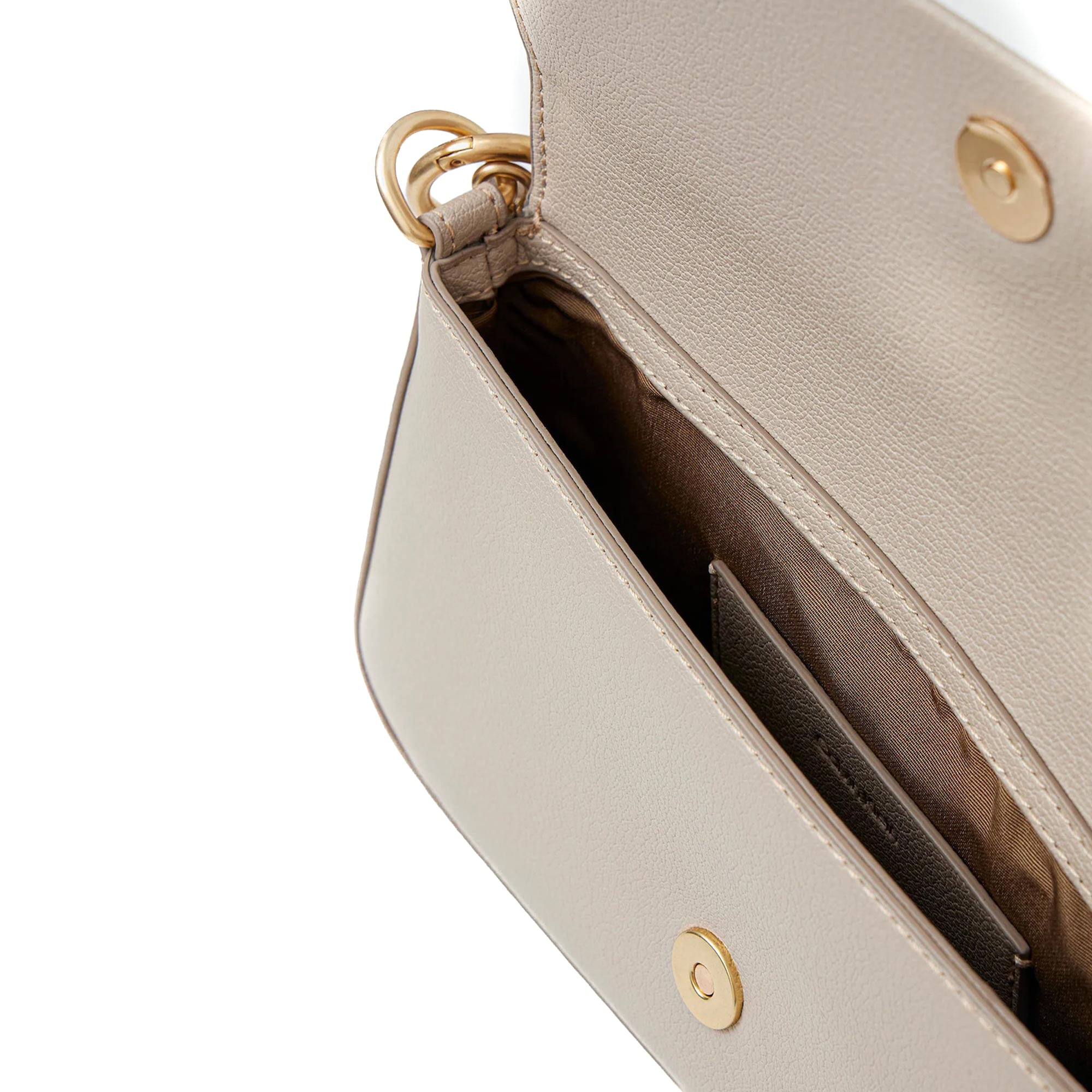 - Manico superiore in pelle con anelli metallici dorati