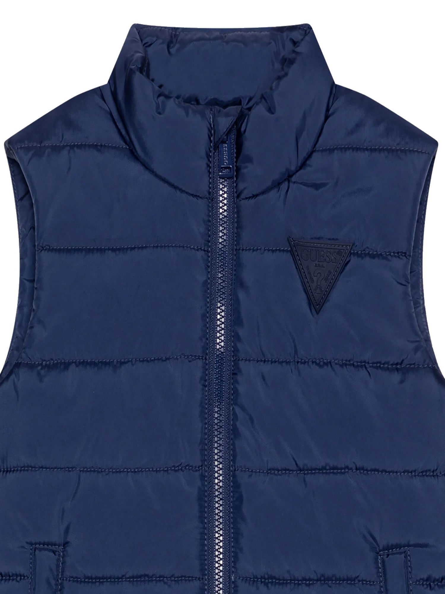 Gilet Guess per bambini, modello smanicato trapuntato, realizzato in materiale a tinta unita.