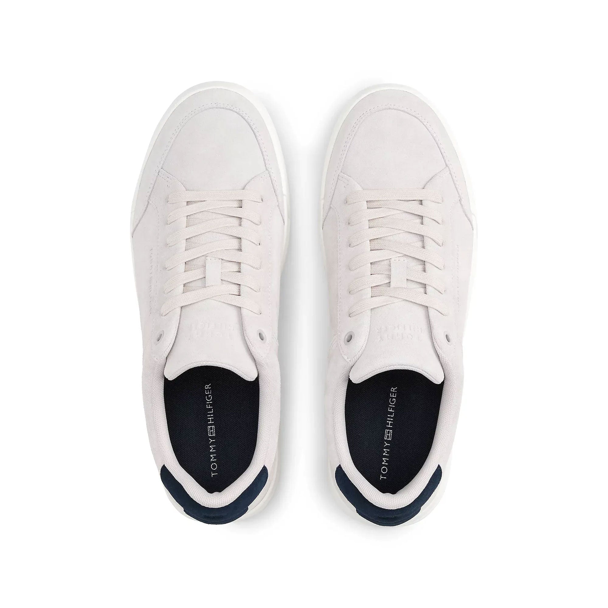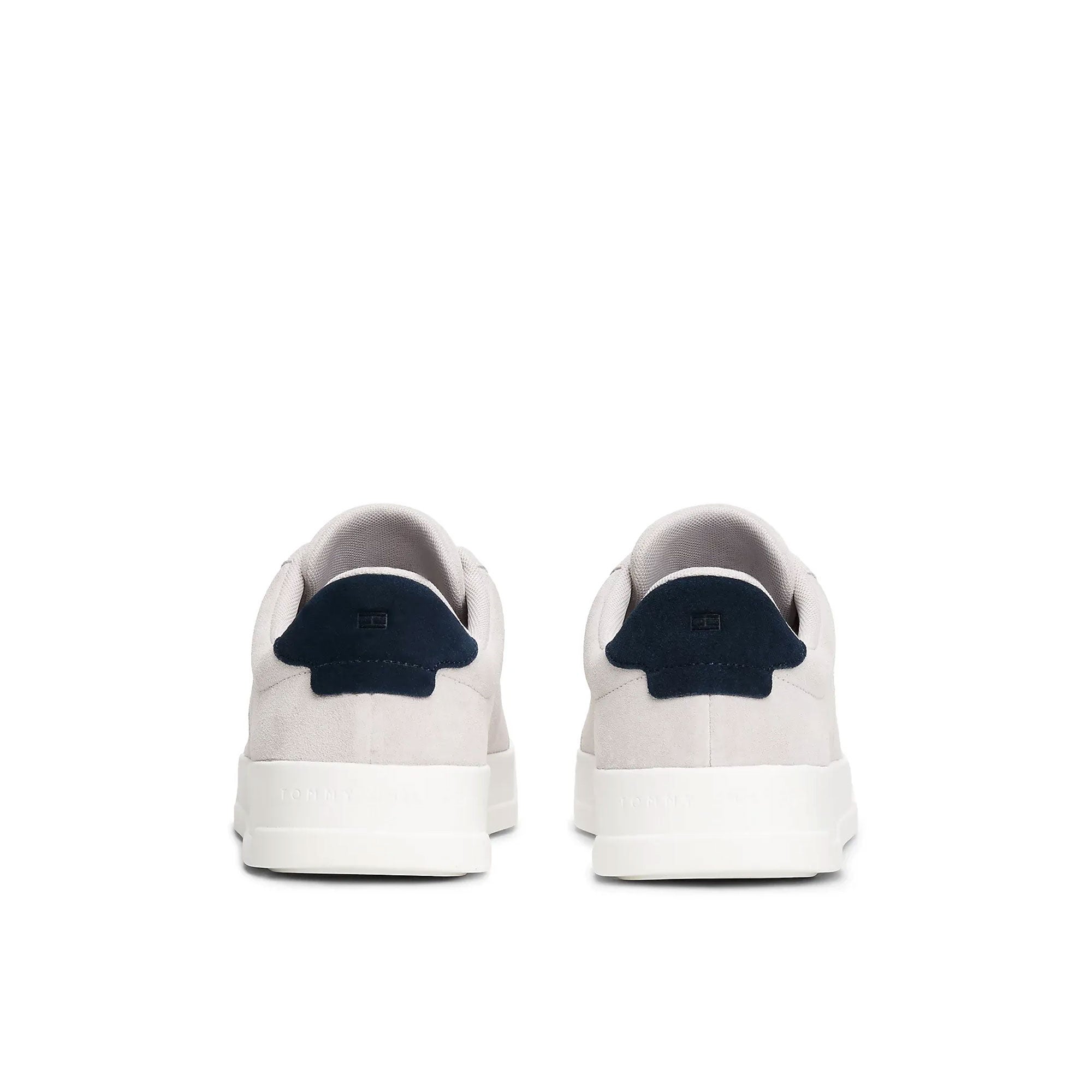 - Modello in suede grigio chiaro con dettagli in suede blu navy