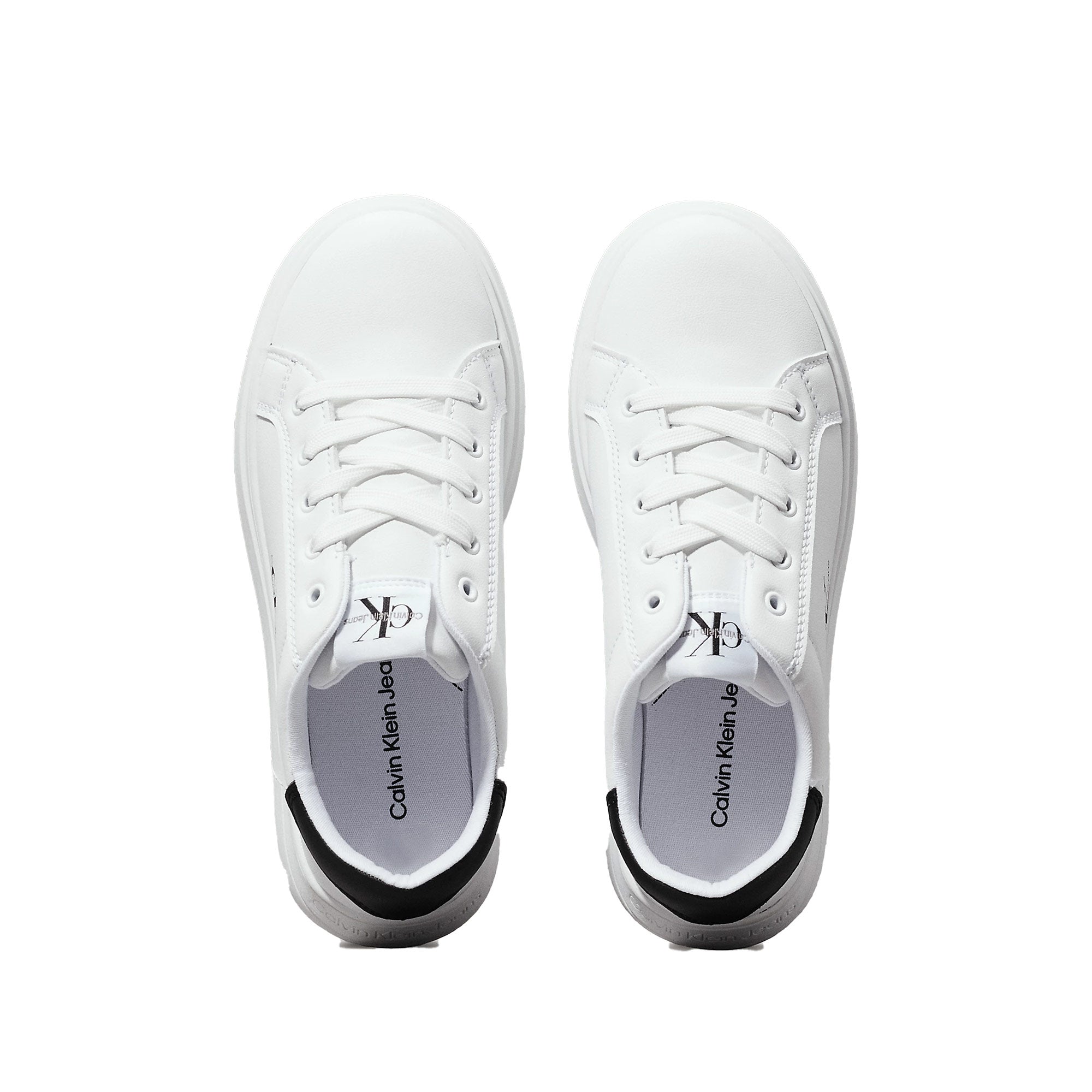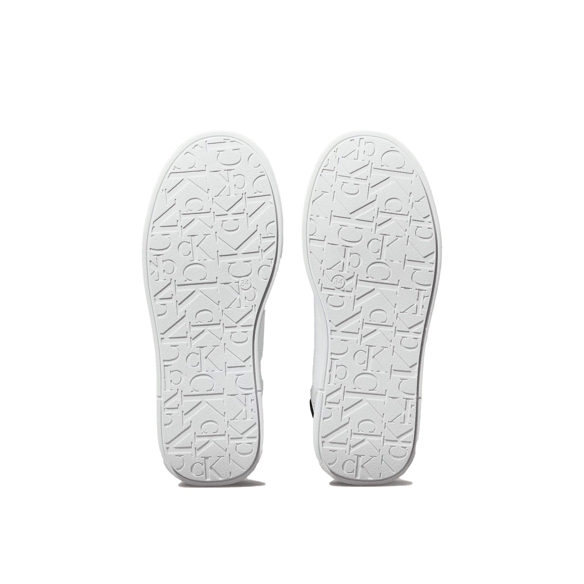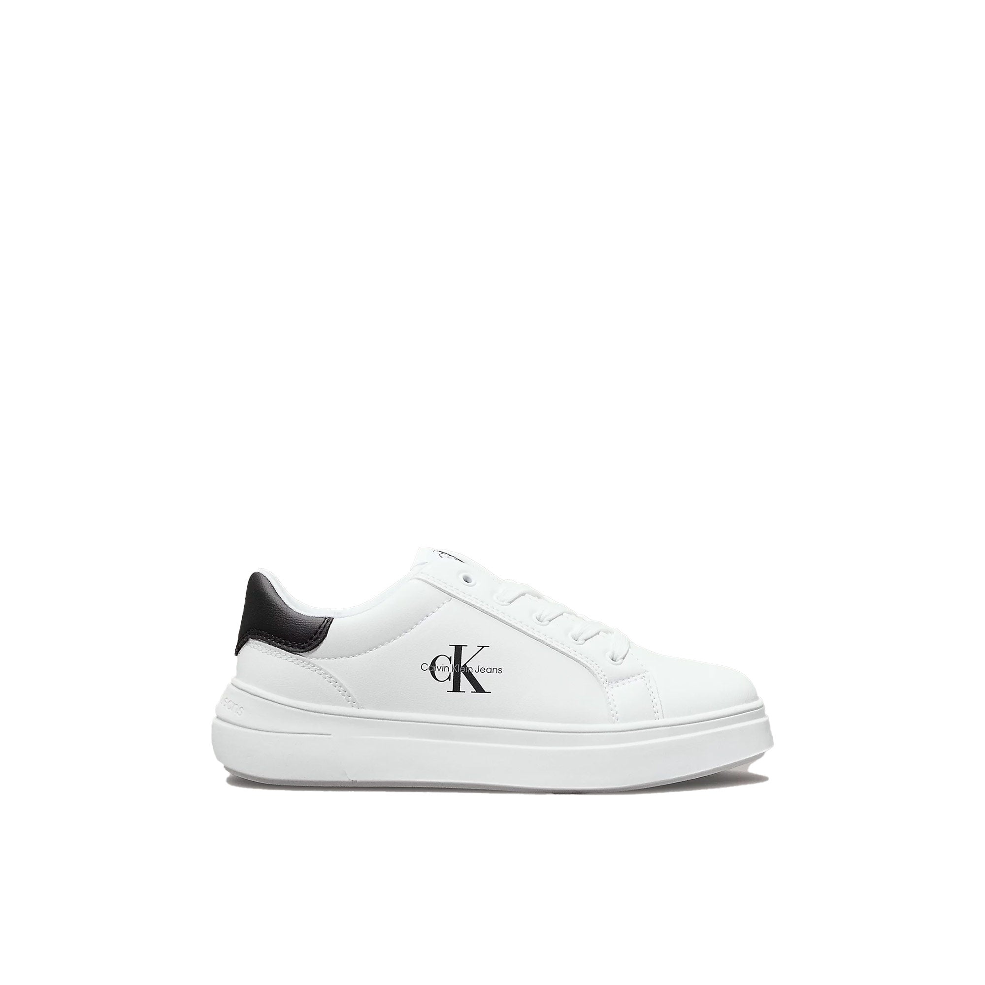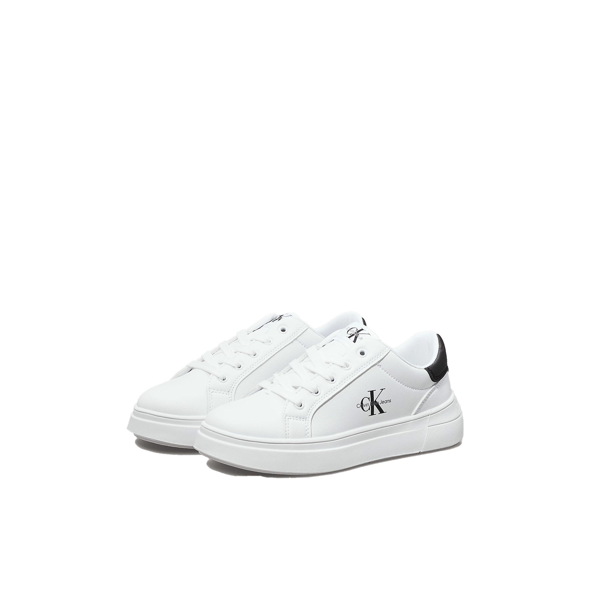 Sneaker Calvin Klein Jeans, modello basso da bambini e bambine realizzata in ecopelle bianca con dettagli in nero per un look moderno e raffinato. Questo modello combina perfettamente stile e comfort, ideale per un utilizzo quotidiano e versatile. Il design minimalista è valorizzato dal logo CK sulla parte laterale, conferendo un tocco distintivo e iconico. La suola in gomma assicura un'ottima trazione, mentre la chiusura a lacci permette una calzata sicura e regolabile. Una scarpa che si adatta perfettamente a qualsiasi outfit casual, per un look impeccabile e sempre alla moda.