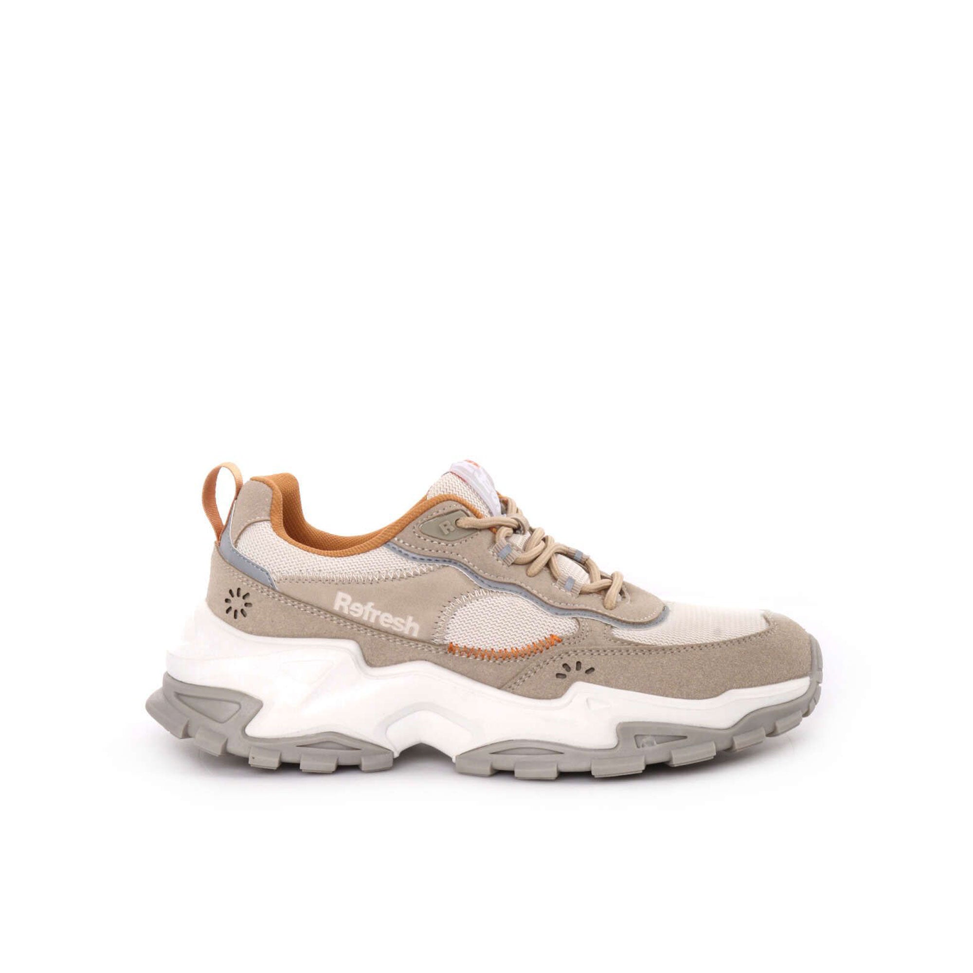 Sneakers donna Refresh, d'ispirazione running, realizzata in materiale sintetico con inserti in tessuto a constrasto. Presenta una leggera imbottitura al tallone per una sensazione di benessere durante la calzata, suola in gomma scanalata.