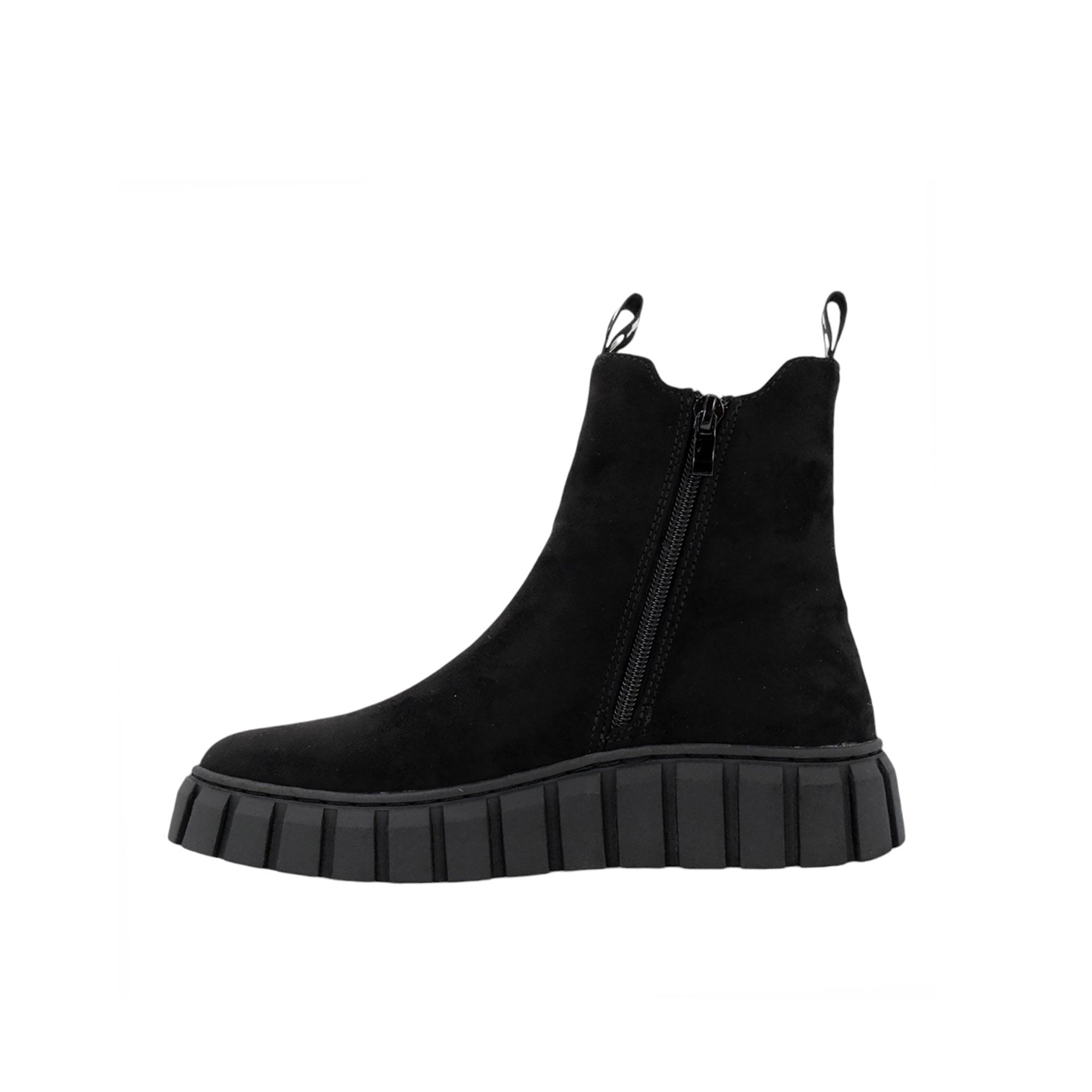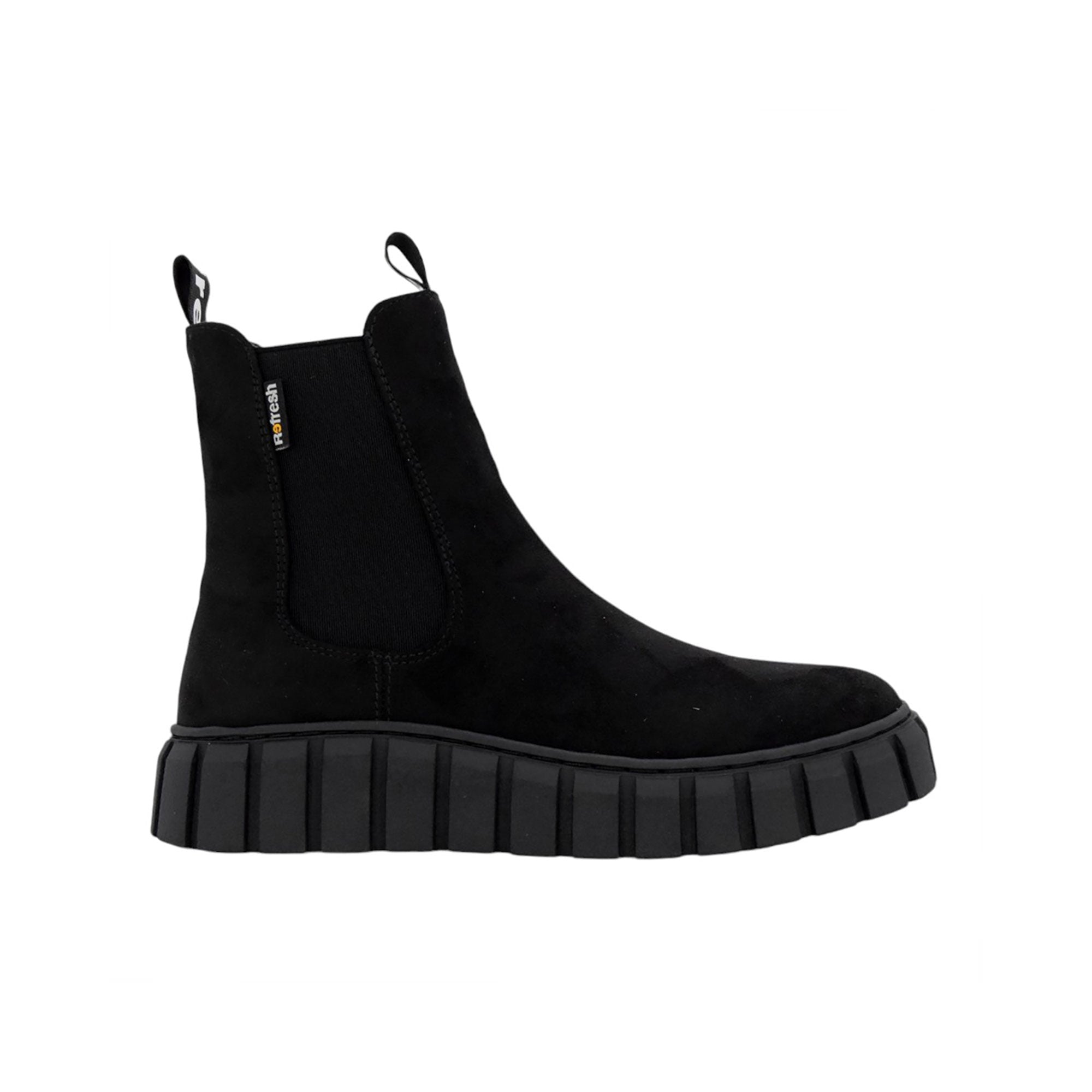 Stivaletto Refresh, realizzato in pelle scamosciata abbinata ad elastici laterali. Cerniera laterale e tiretti sul retro e sul davanti per indossarli facilmente. Suola spessa con design sportivo in gomma antiscivolo. Un modello comodo e ideale per l'uso quotidiano. Questo modello è stato certificato vegano dall'organizzazione globale PETA (Animal Rights Organization).