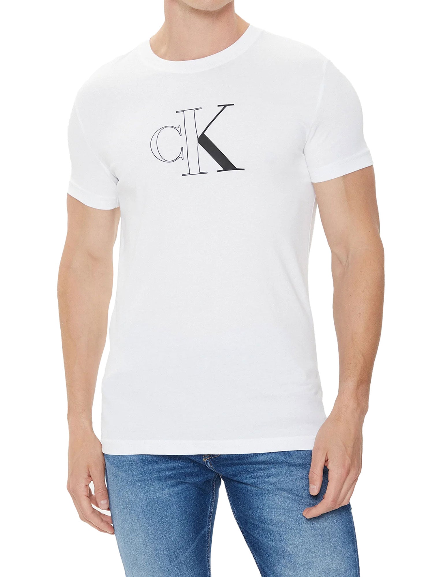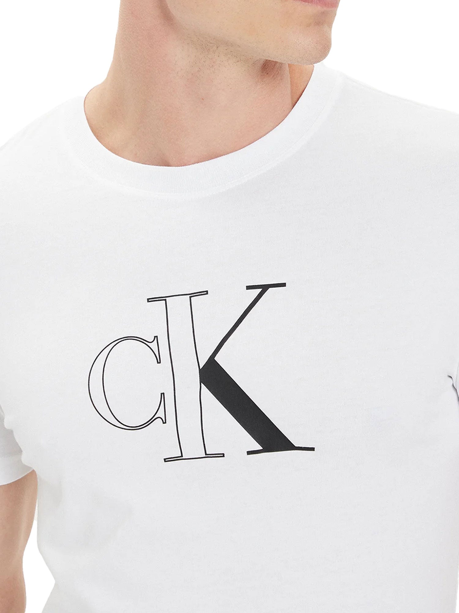 T-shirt a maniche corte con stampa logo frontale bianco