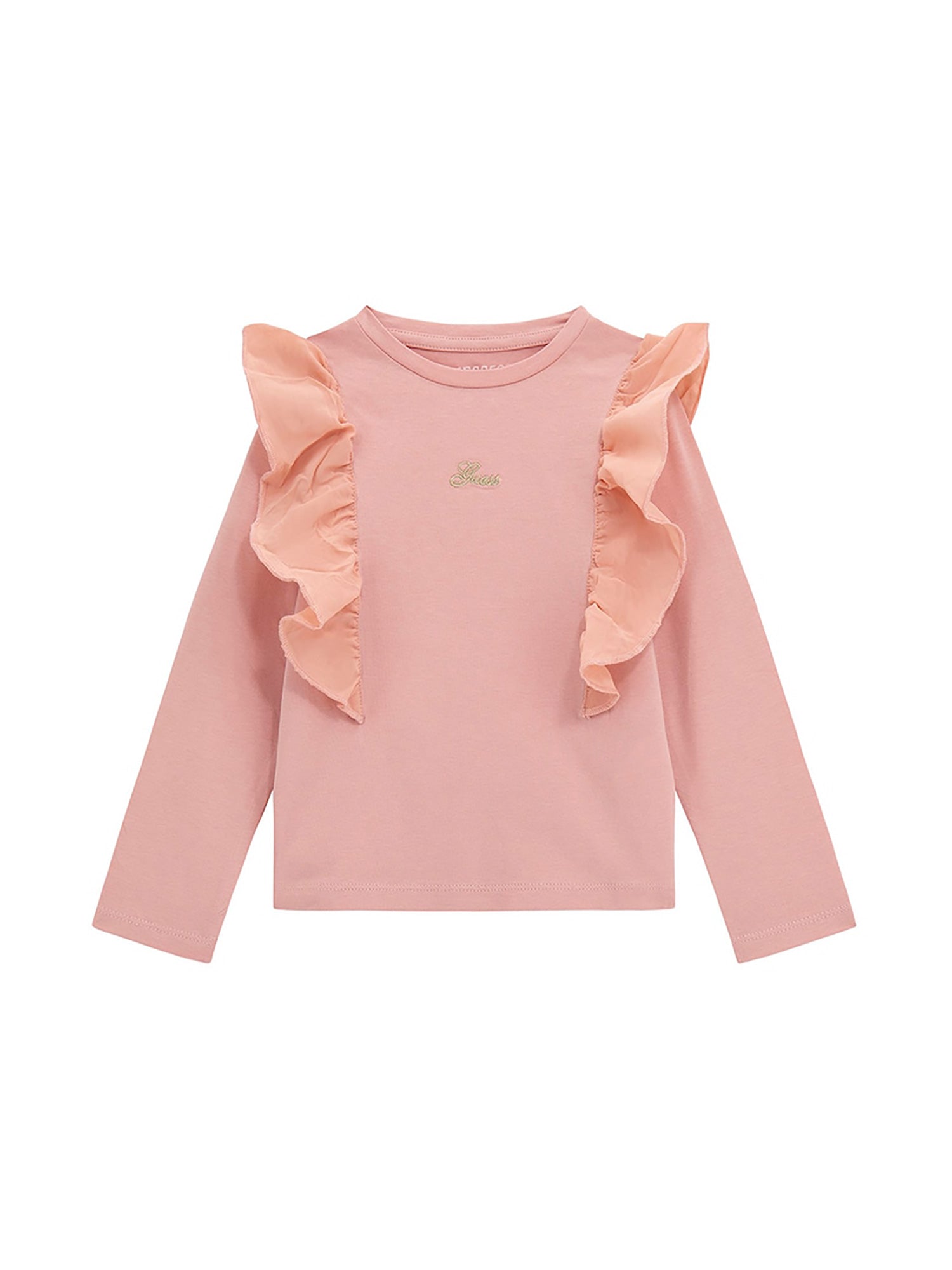 Questa maglia firmata Guess è perfetta per aggiungere un tocco romantico e raffinato al guardaroba della tua bambina. Ideale per outfit casual-chic, si distingue per i dettagli curati e uno stile elegante.