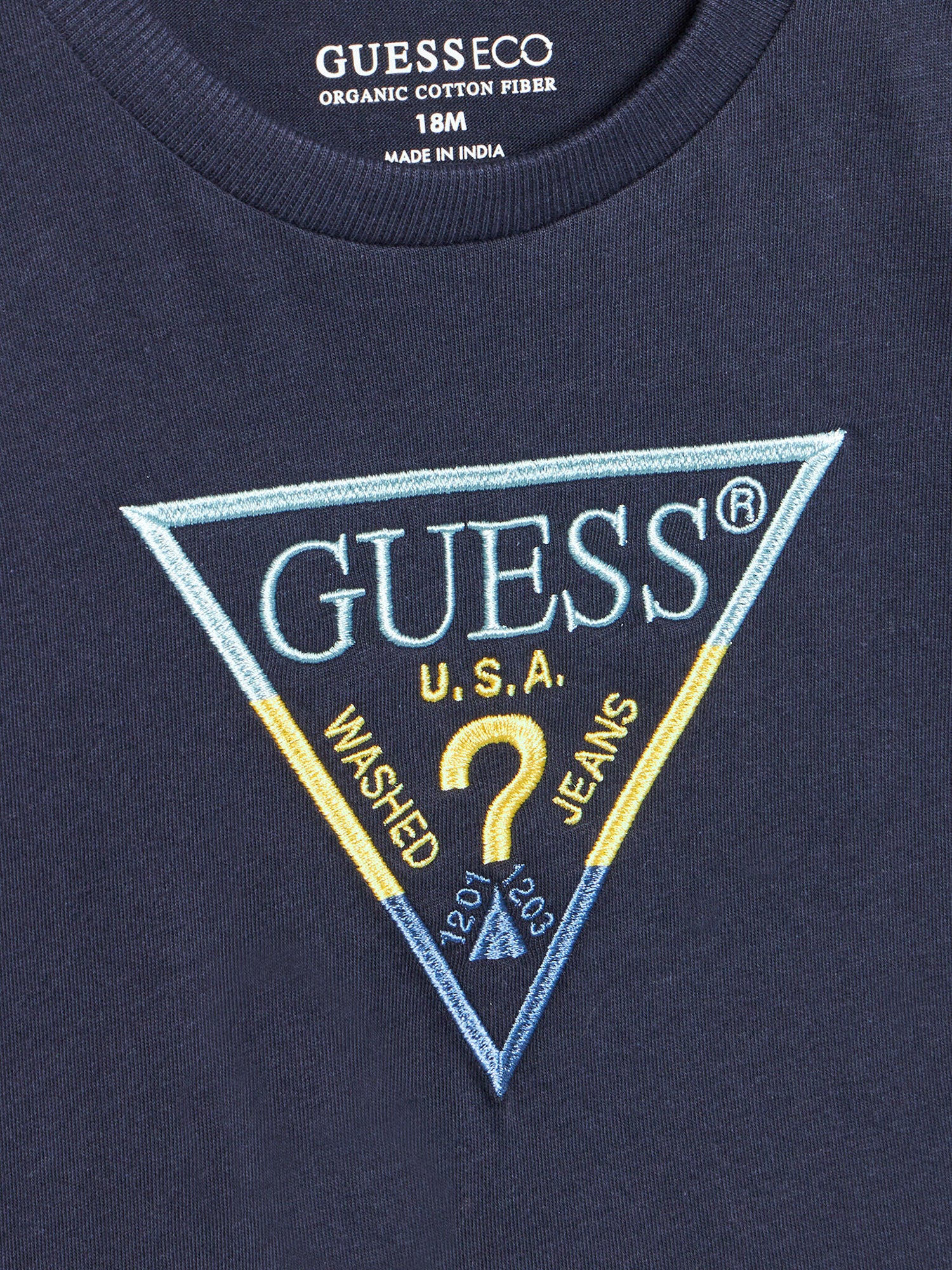 - Logo triangolare Guess ricamato sul petto con dettagli colorati