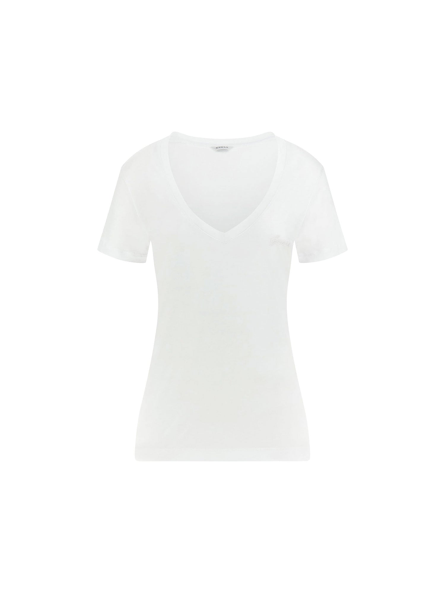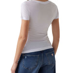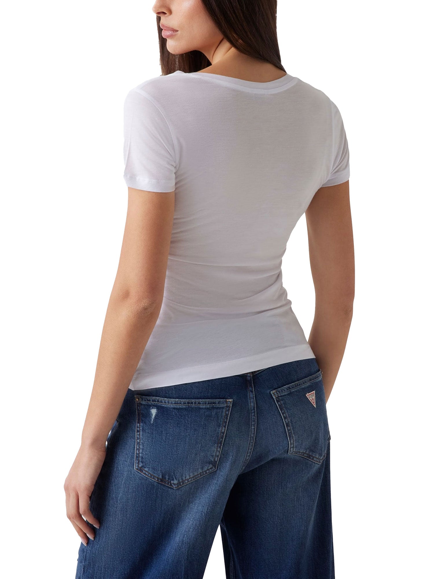 Essenziale ma con stile: questa t-shirt GUESS in jersey di cotone leggero è il capo must-have del tuo guardaroba. Perfetta da sola o sotto una giacca, valorizza la silhouette con il suo taglio aderente e lo scollo a V. Il logo tono su tono ricamato aggiunge un tocco discreto ma riconoscibile.