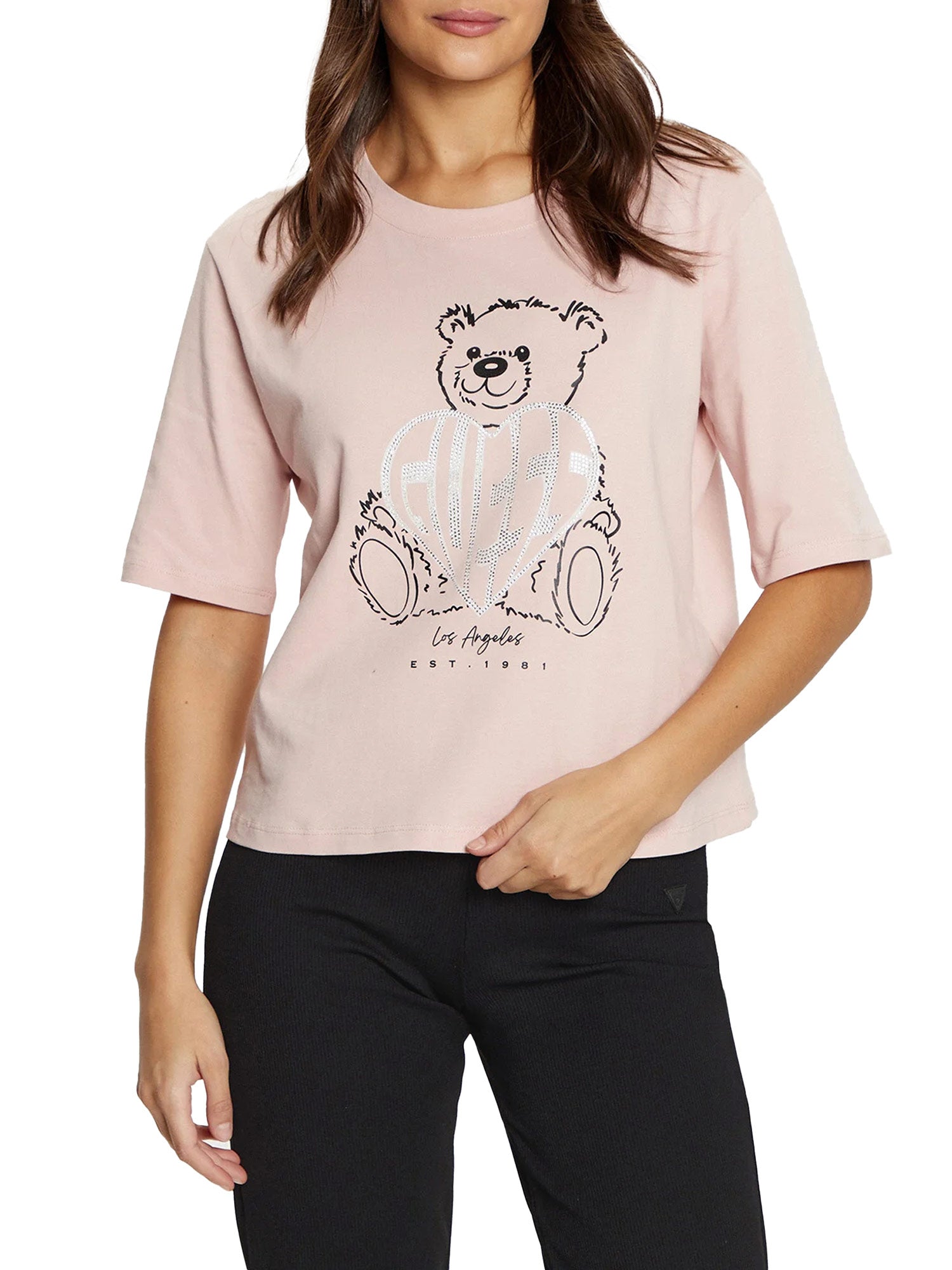 T-shirt Boxy Rhinestone rosa